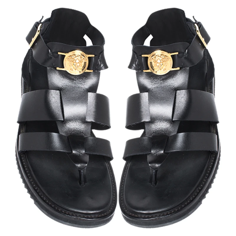 Versace Black Leather Medusa Gladiator Flat Sandals Size 43 For Men -Versace Official Website luxury men versace used shoes p260962 007