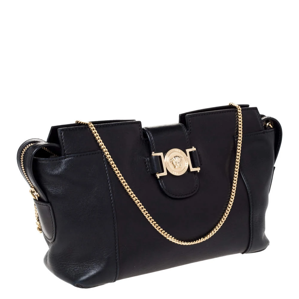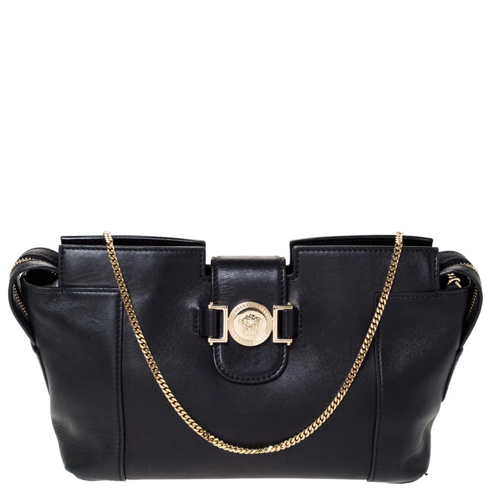 Sophisticated and luxe, this bag from Versace definitely needs to be on your wishlist. The bag is crafted from leather in a timeless black shade and it features a lovely silhouette. It flaunts a shoulder chain and the famous Medusa logo on the front. The spacious interior is leather-lined.