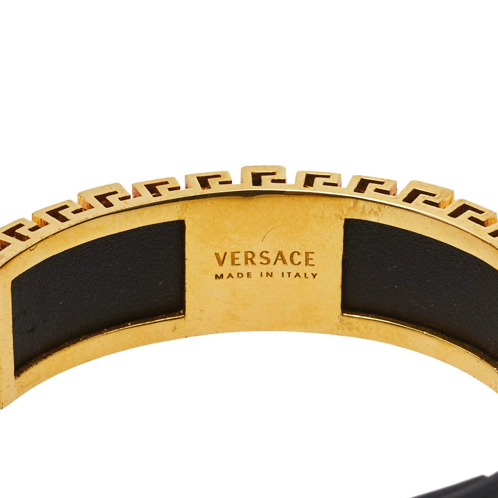 Featuring the iconic Medusa logo nestled in a Greca-detailed gold-tone frame, this Versace bracelet for men is bold and impressive. This black wrap bracelet is made with leather and secured with a buckle fastening.