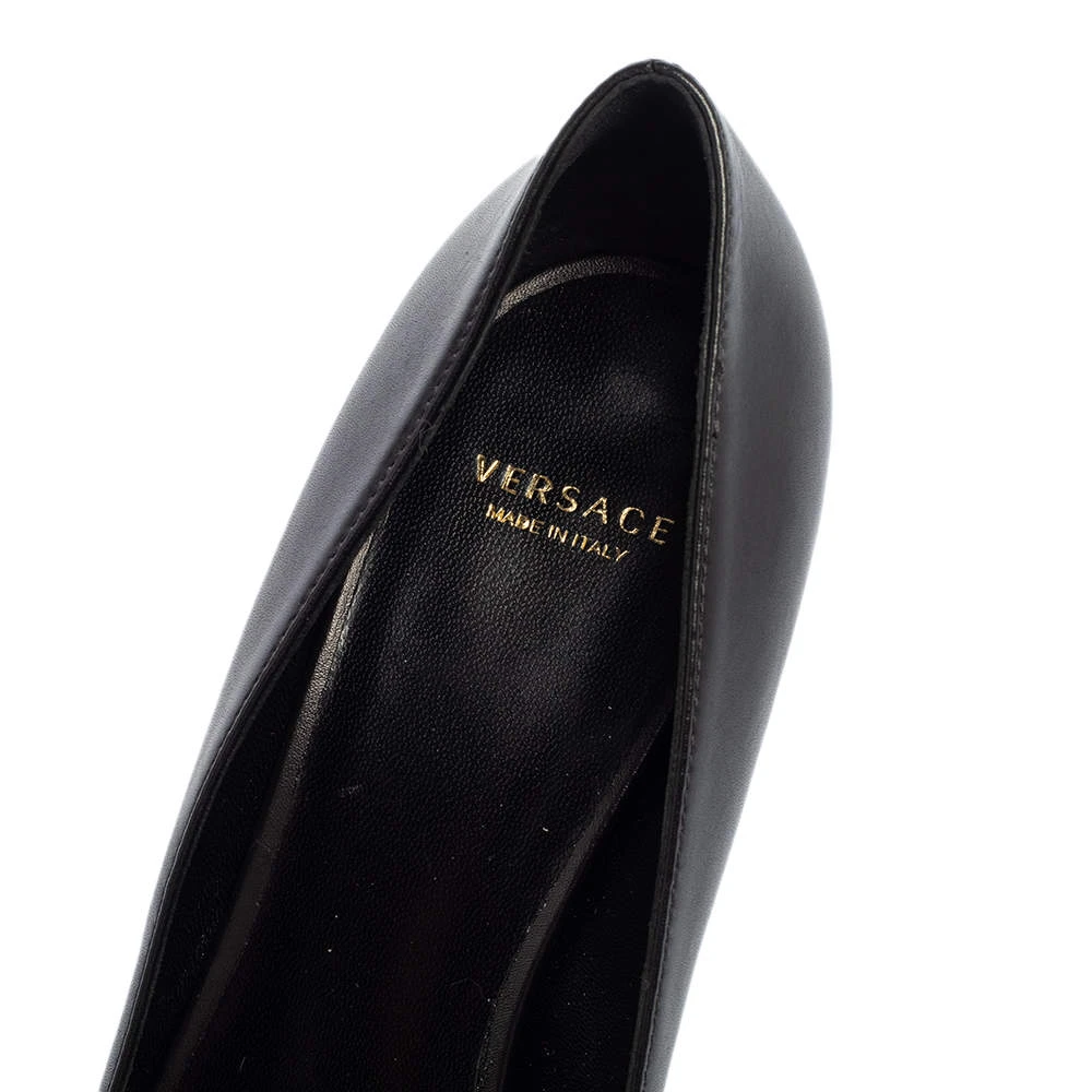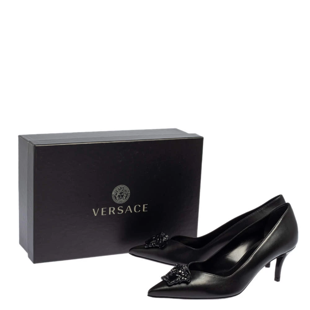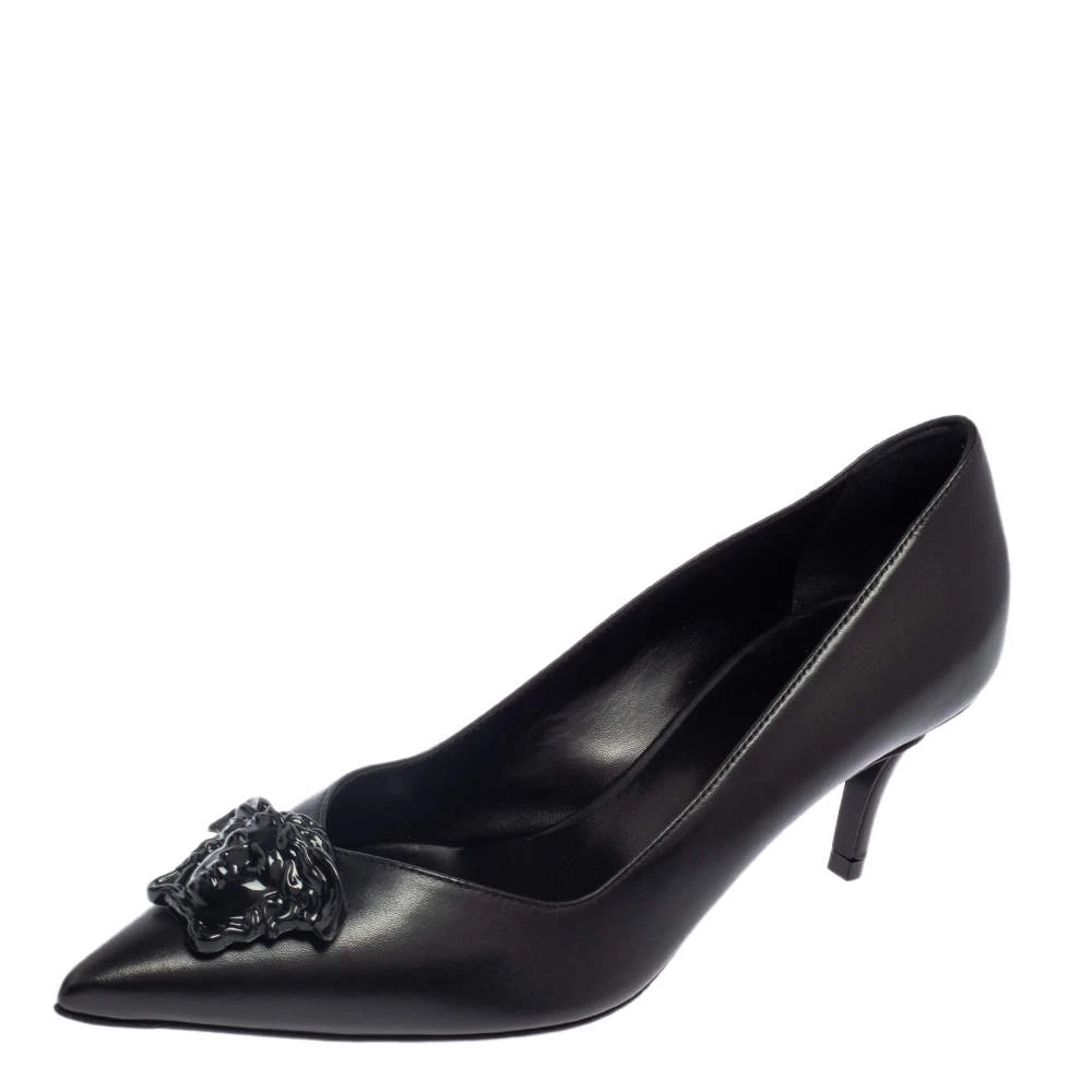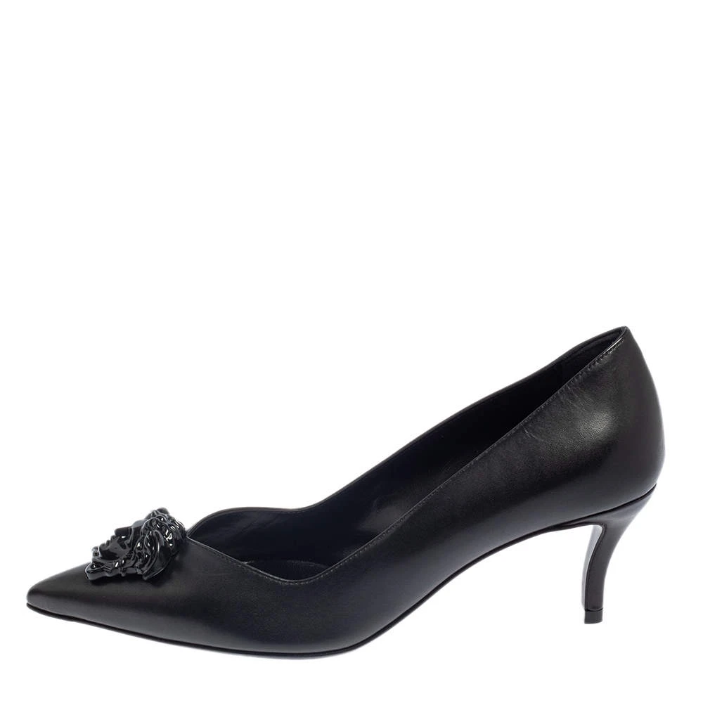 Treat your feet to the best footwear by choosing these fine pumps from Versace! The black pumps have been crafted in Italy using leather. They are designed with the Medusa motif on the pointed toes and 6.5 cm heels.