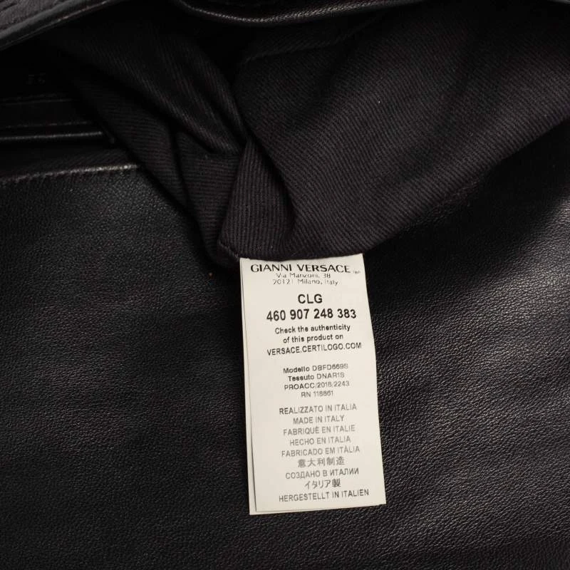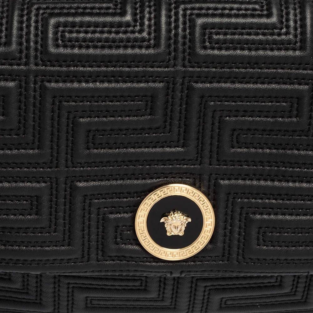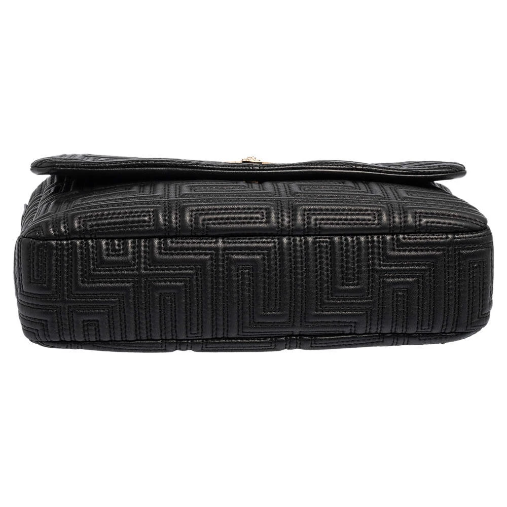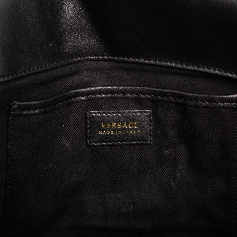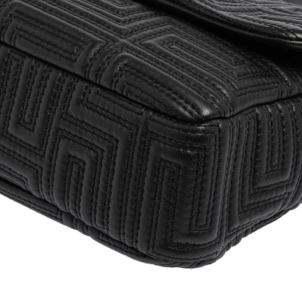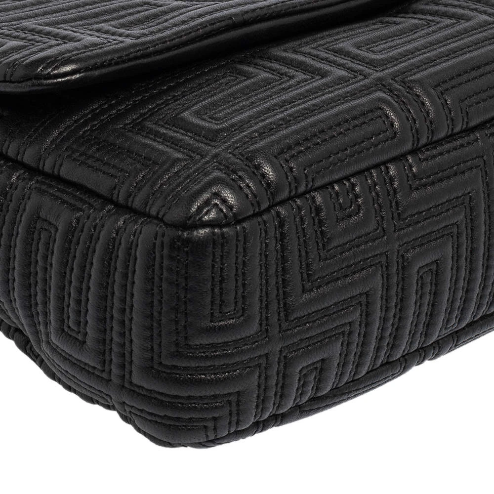 Make a striking appearance with this fashionable shoulder bag by Versace. This elegant creation is at once a fashion statement as well as a necessity. It is crafted from leather exhibiting the Greca motif embossed on the exterior and is adorned with a signature Medusa emblem. Lined with fabric, it has a spacious interior where you can stow your basics. This pretty piece is complete with a chainlink handle.