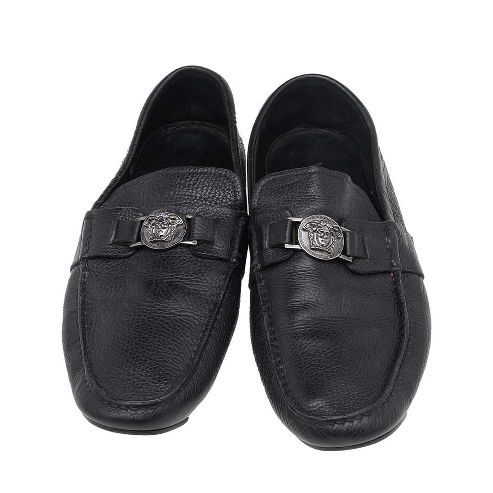 Precise stitching, use of quality leather, and a calculated shape led to the final result of this pair of loafers. The shoes are by Versace, and this is evidently displayed with the Medusa detail on the uppers. The loafers are wrapped in comfort and style.