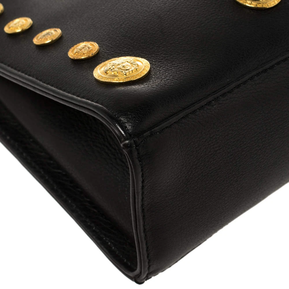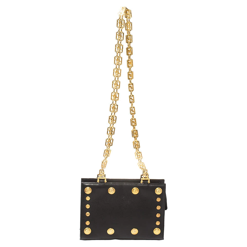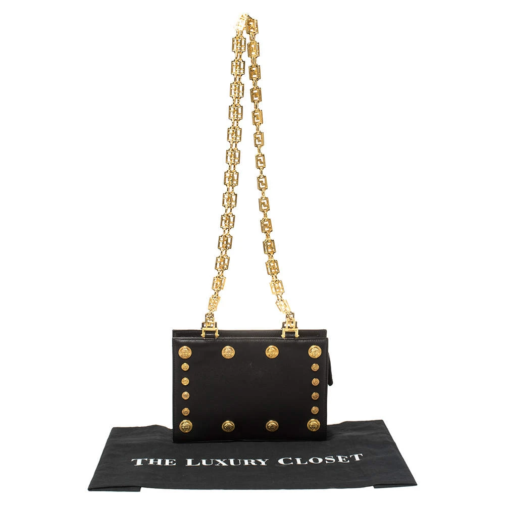 The Medusa shoulder bag by the iconic house of Versace is a statement-making piece. Made from quality leather, it features the iconic Medusa motif in gold-tone on the studs and stylish chain-link shoulder straps. The interior-lined interior is enclosed with a zipper.