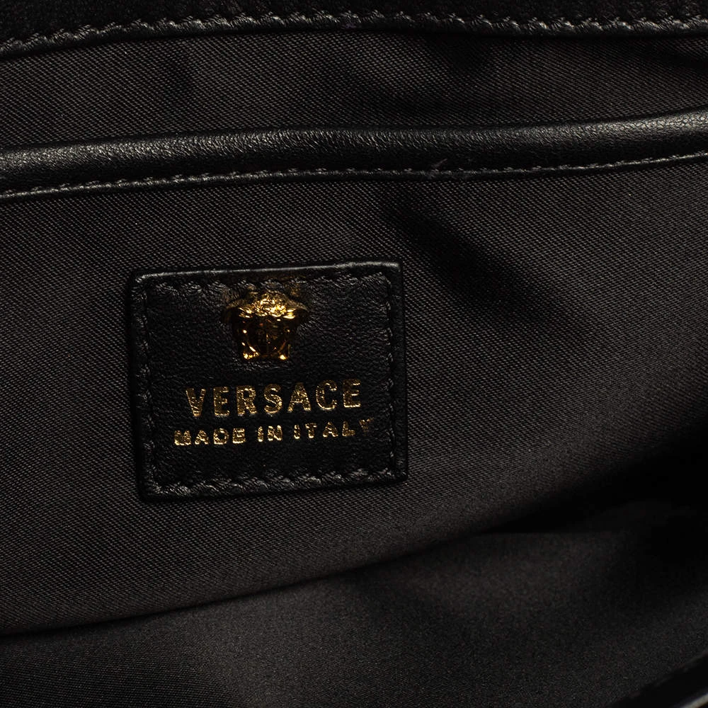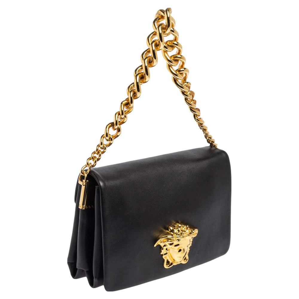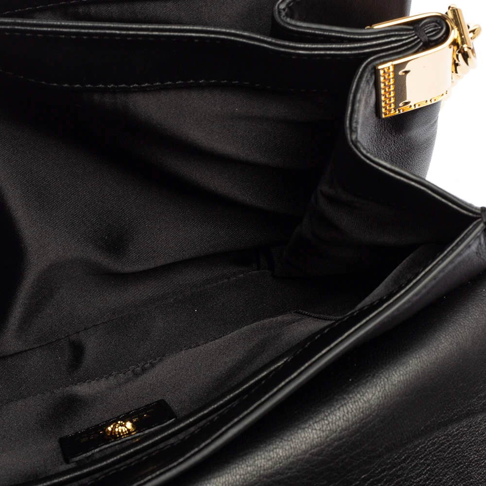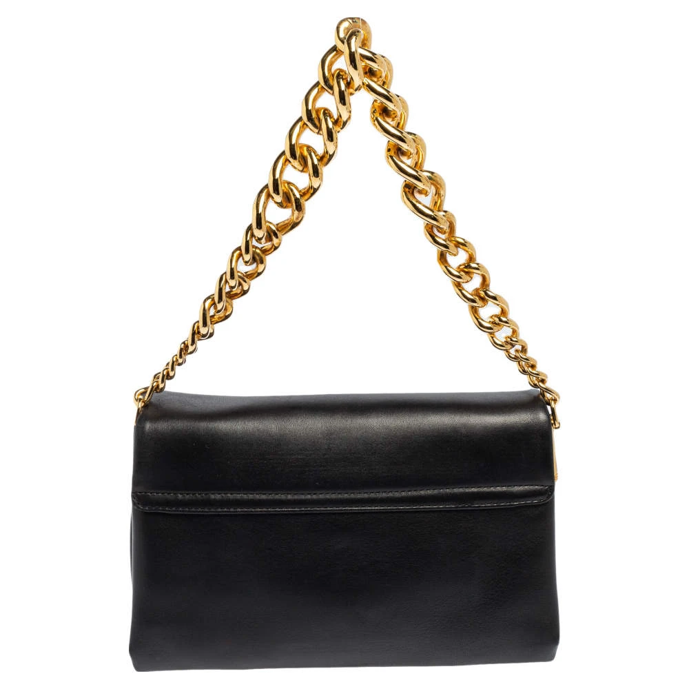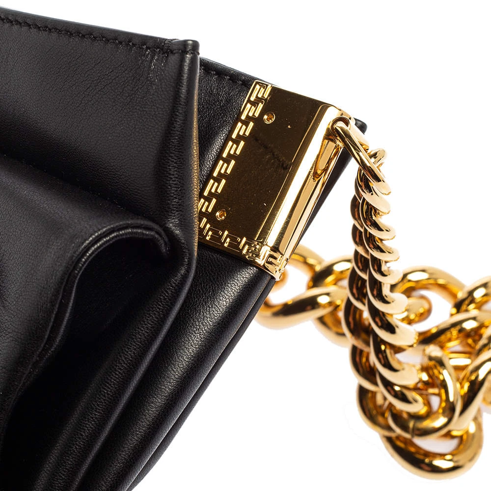 The Medusa Sultan bag designed by Versace encompasses beauty like never before. Structured in the most classy way, this bag made from black leather shows off a gold-toned Medusa motif embellished on the front flap. This skillfully created piece has the ability to transform your look in seconds. A chunky chain handle carries this bag.