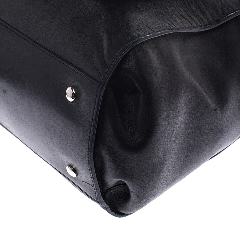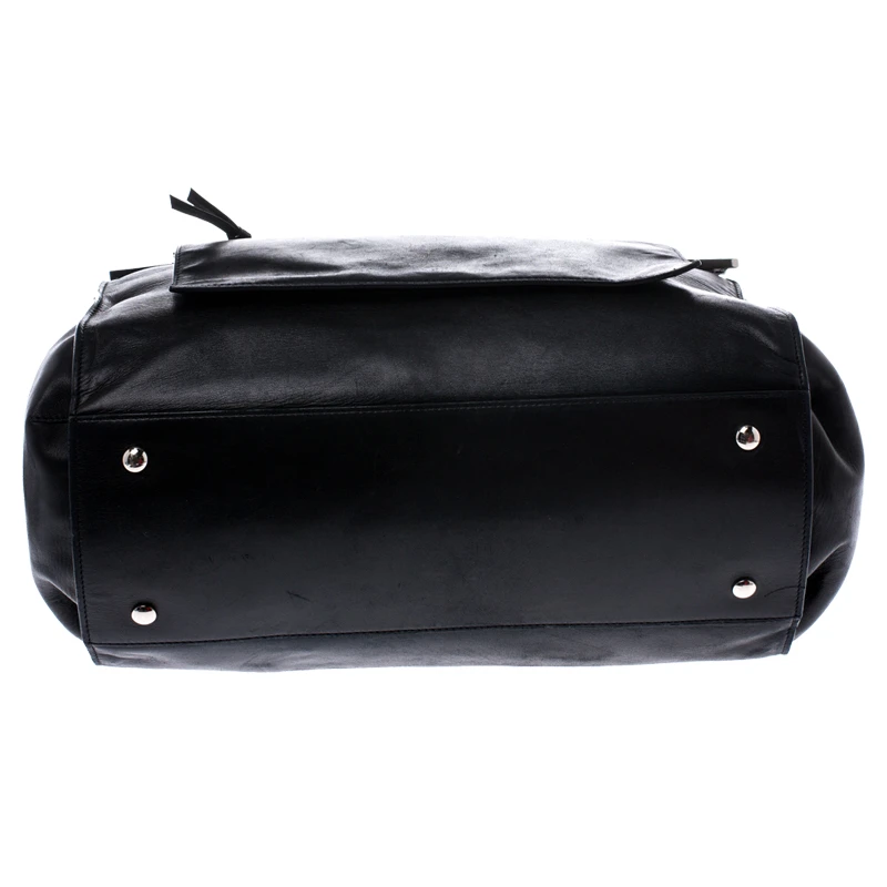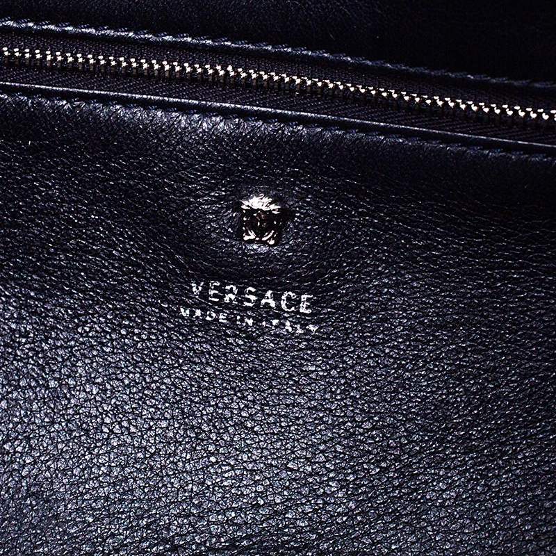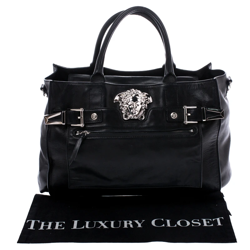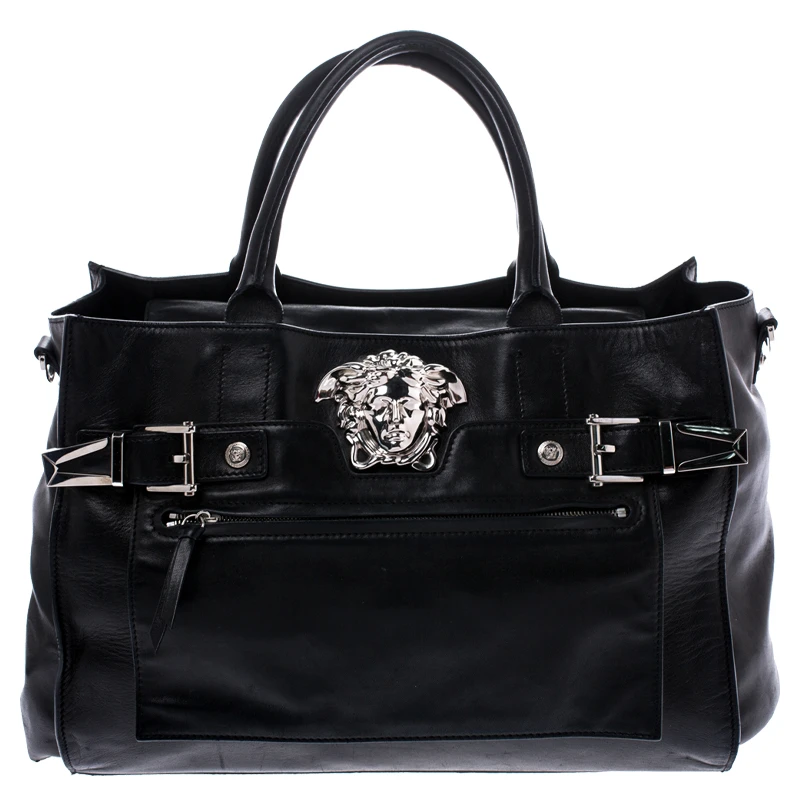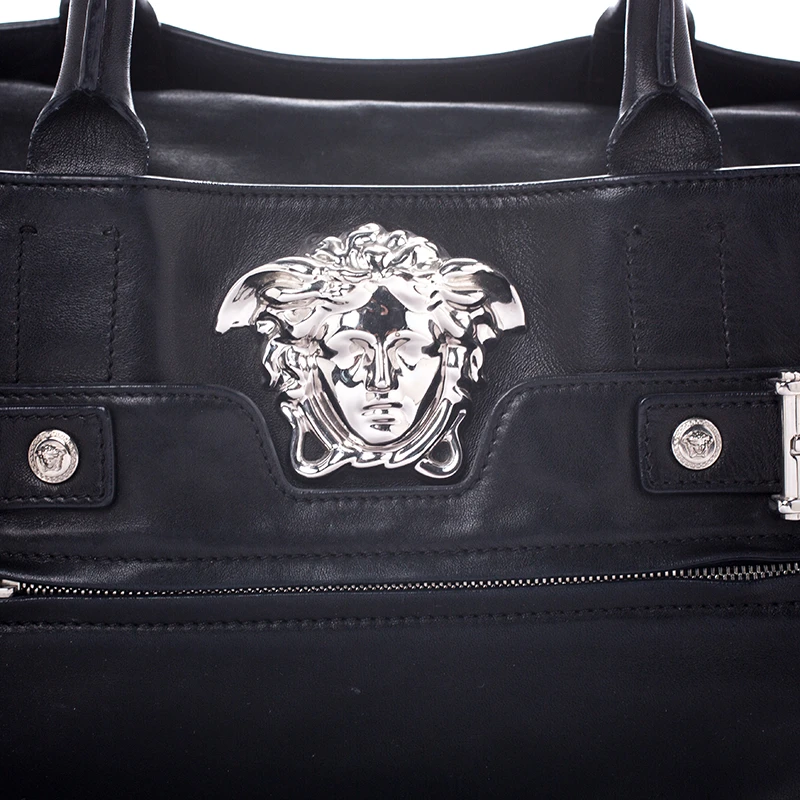 Sophisticated and luxe, this tote from Versace definitely needs to be on your wishlist. The bag is crafted from leather in a lovely black shade and it features a structured silhouette. It flaunts dual handles and the famous Medusa logo on the front along with other silver-tone metal accents. The spacious leather interior houses a zip pocket.