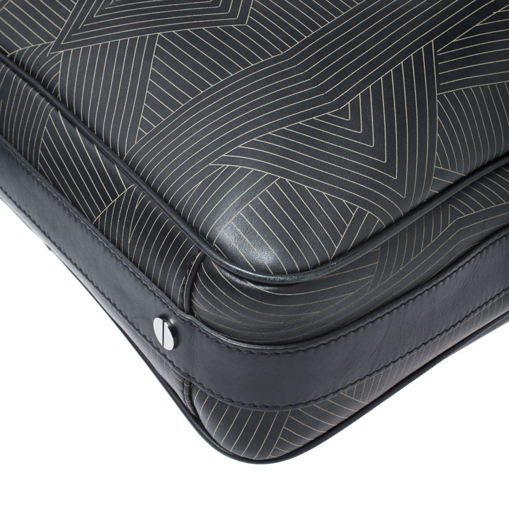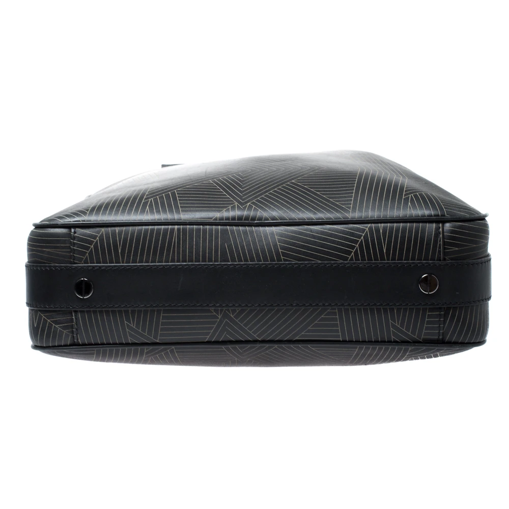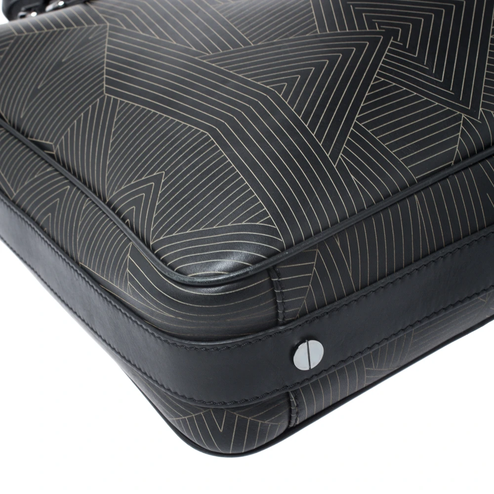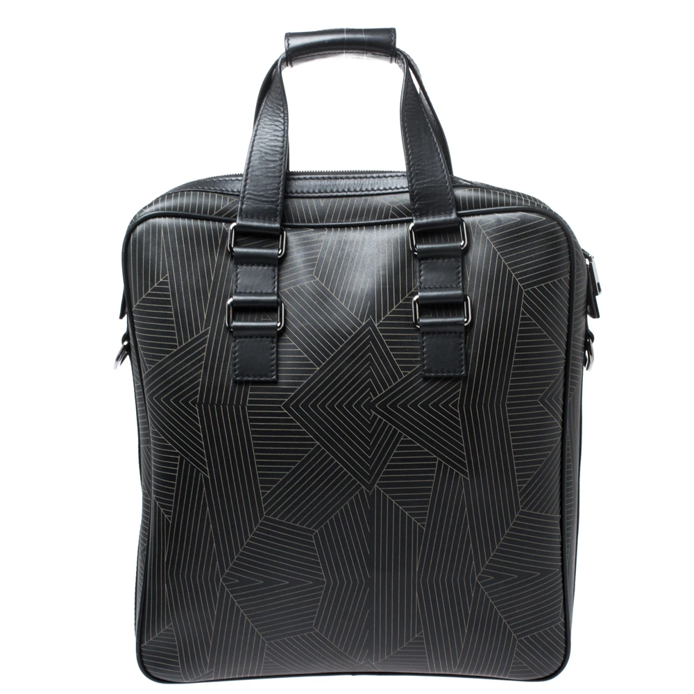 This stunning briefcase tote will elevate your everyday look instantly. Designed to deliver style and functionality, this creation from Versace is a must-have. It is has been crafted in Italy and is made of black leather. It features a lovely pattern on the exterior which is further enhanced with the signature Medusa logo. It is held by dual handles, a shoulder strap. It features a top-zip closure that opens to a fabric-lined interior with a zip pocket, patch pockets and enough space to carry all your essentials. The creation is finished with silver-tone hardware.
