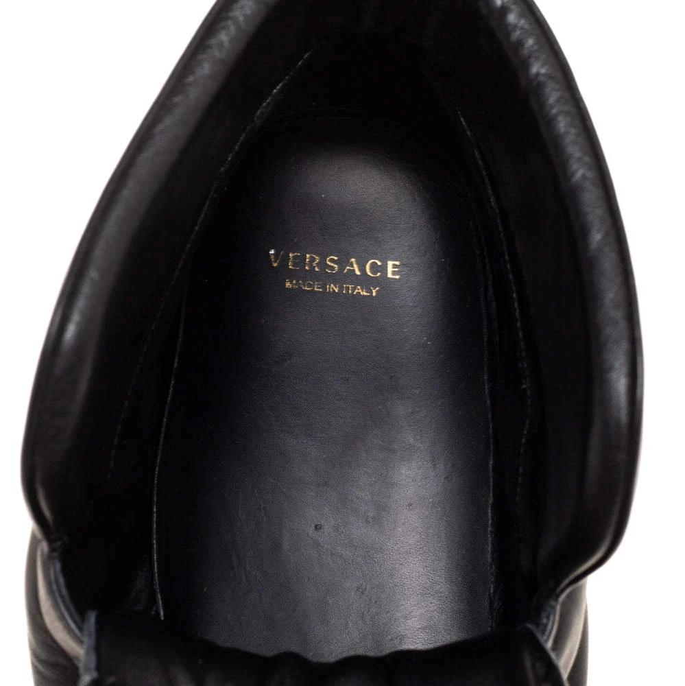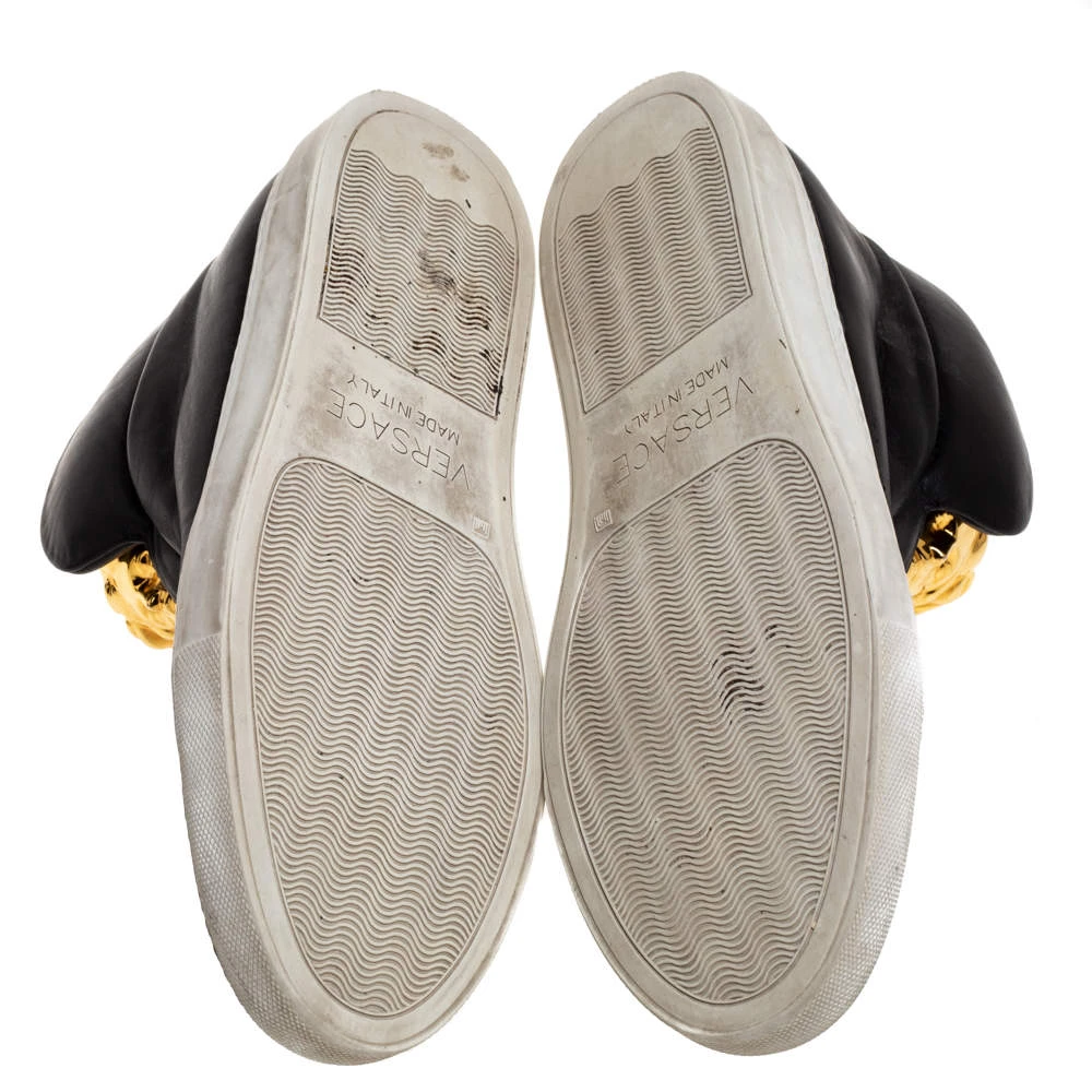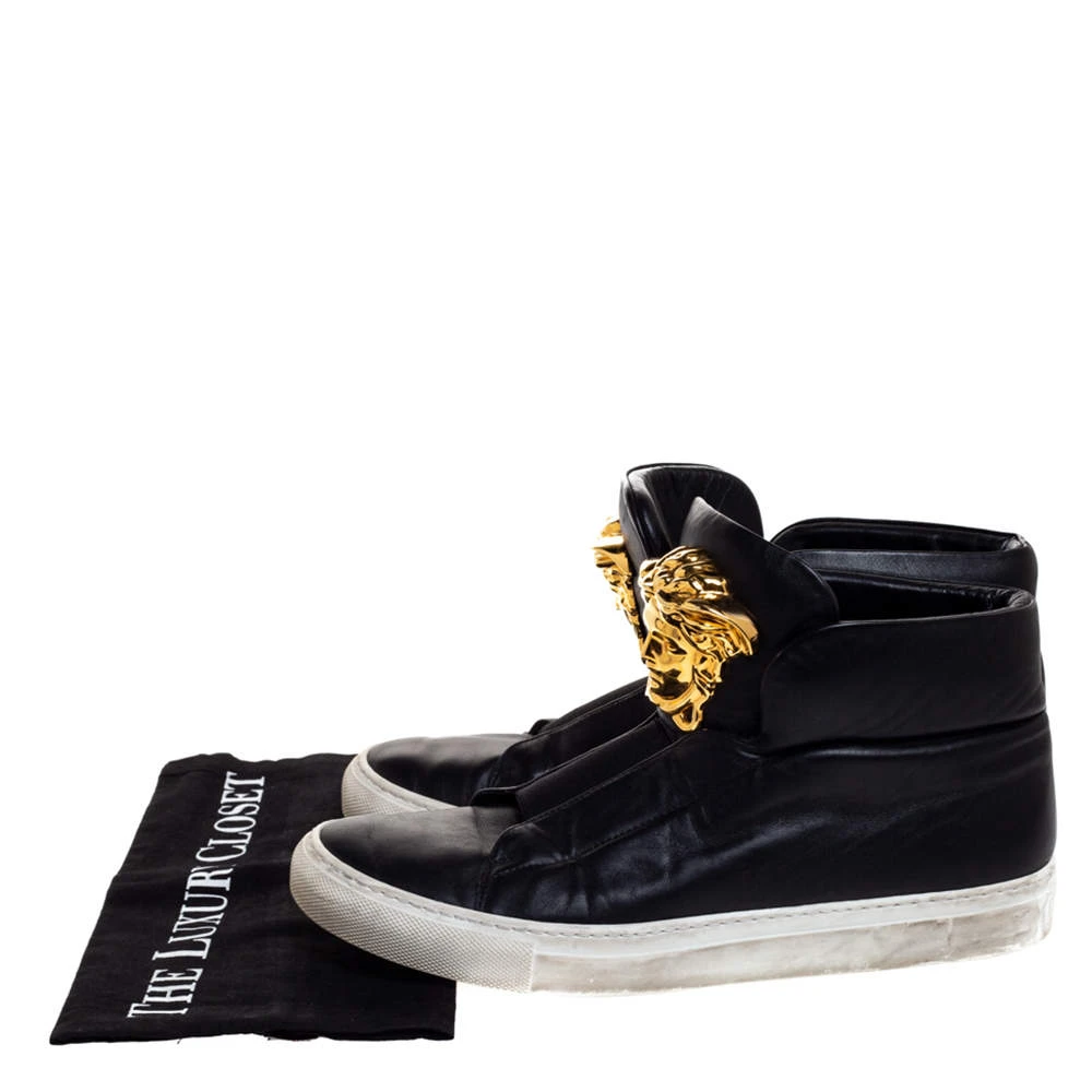 Sneakers are sought-after for reasons like comfort, ease, and casual style. These Versace ones fit right in as they are stylish and snug. They come crafted from black leather into a design of elastic panels and the Medusa logo on the front. They are finished with rubber soles.