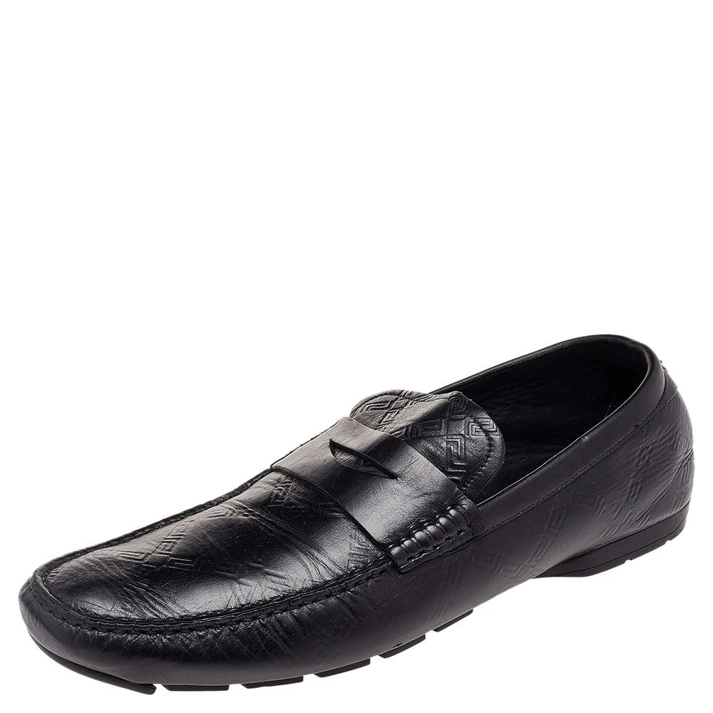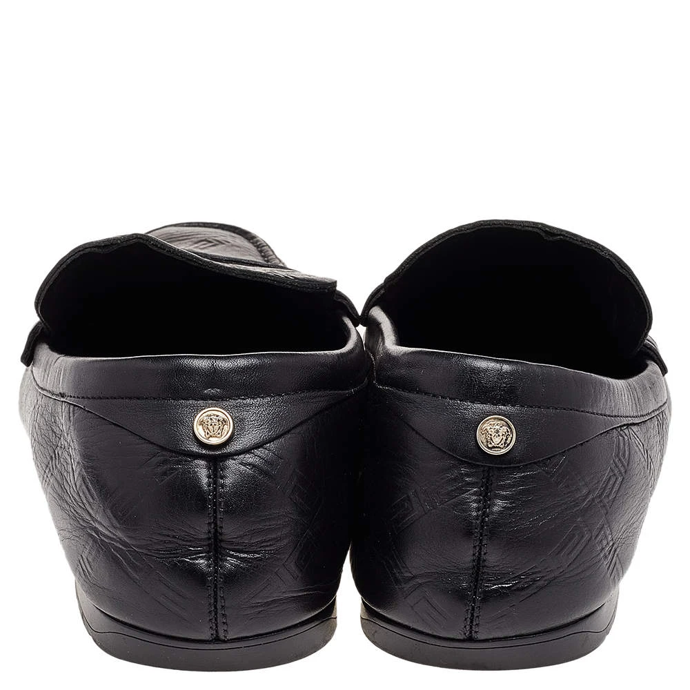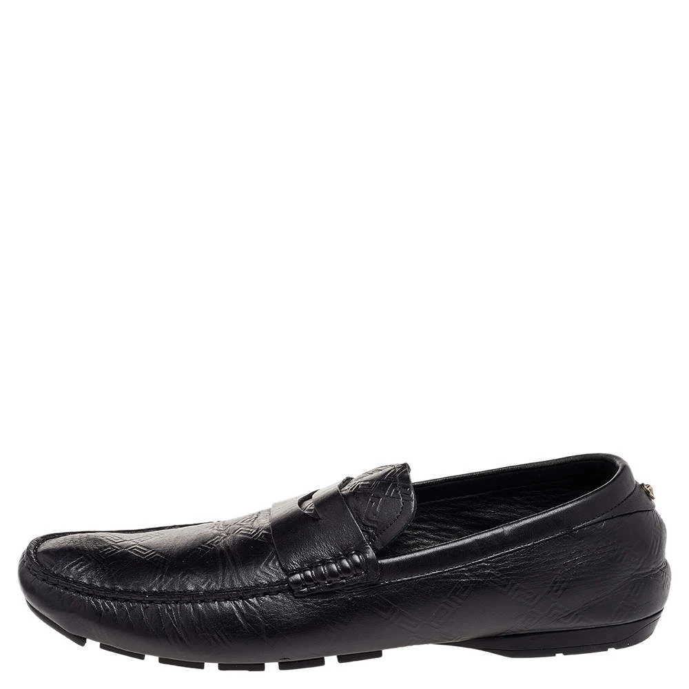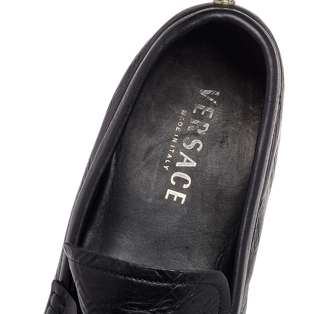 This comfortable pair of loafers by Versace will make a great addition to your shoe collection. They have been crafted from black leather and styled with penny keeper straps and low heels. Snug leather insoles seamlessly complete the classic loafers.