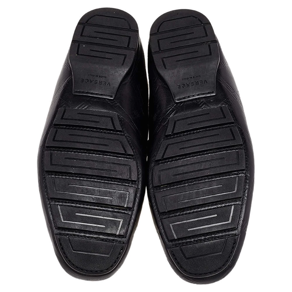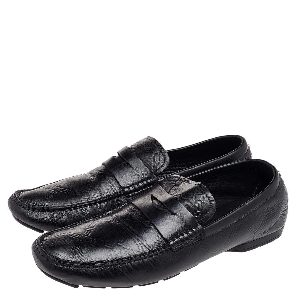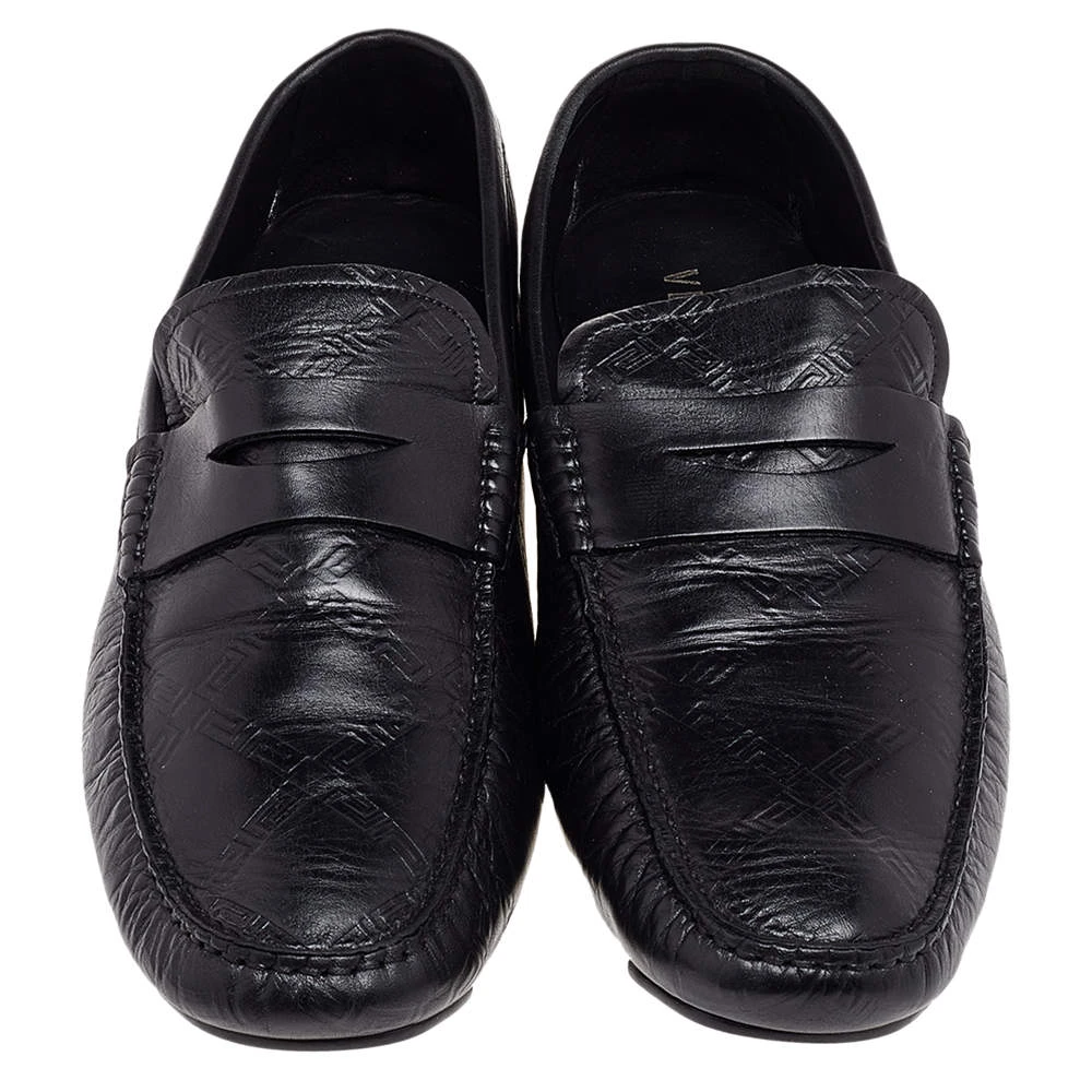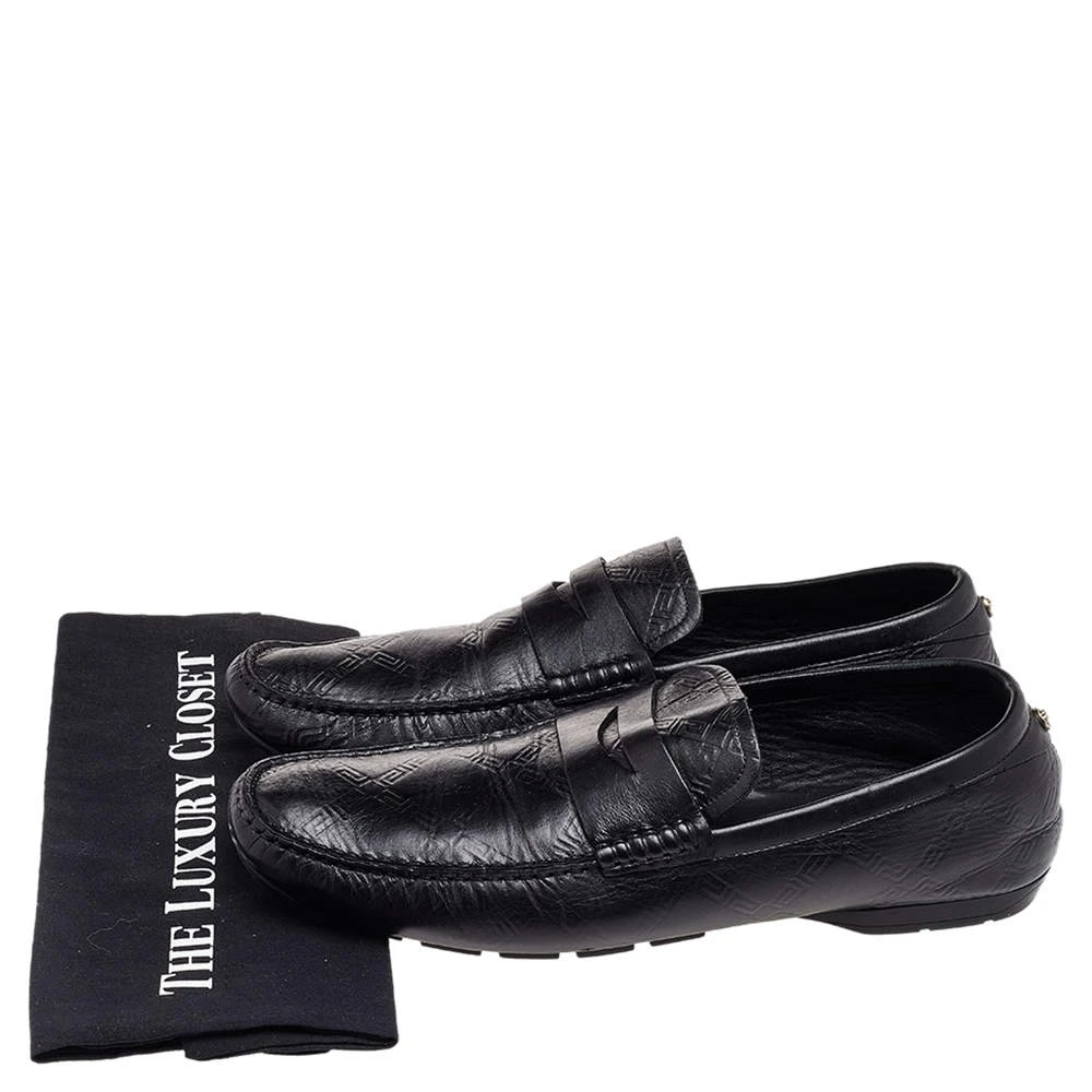 This comfortable pair of loafers by Versace will make a great addition to your shoe collection. They have been crafted from black leather and styled with penny keeper straps and low heels. Snug leather insoles seamlessly complete the classic loafers.