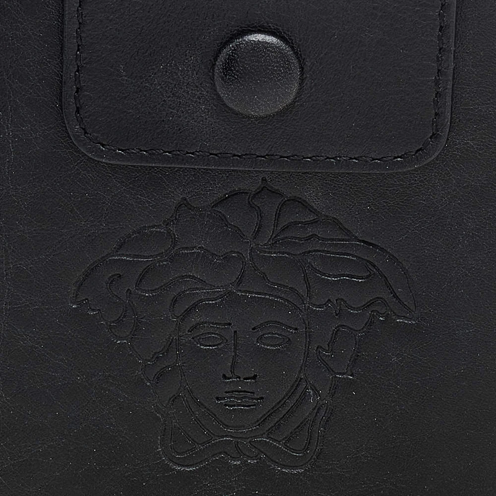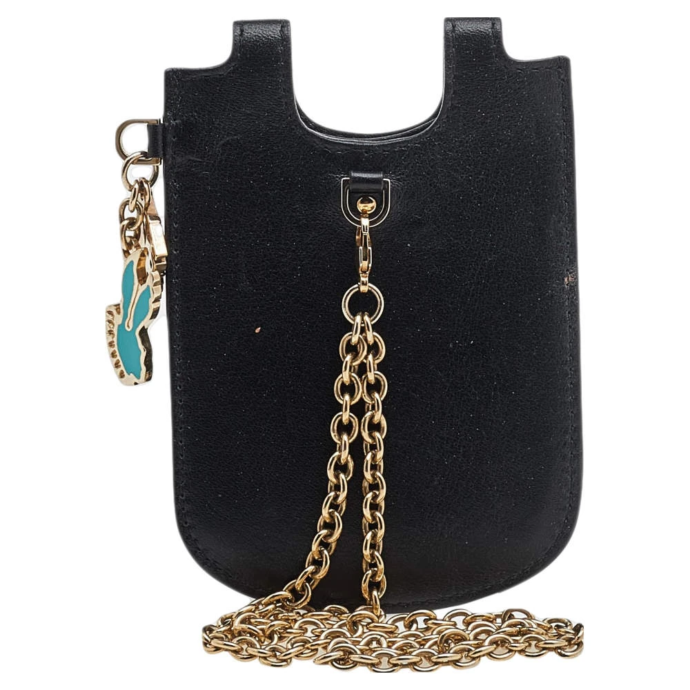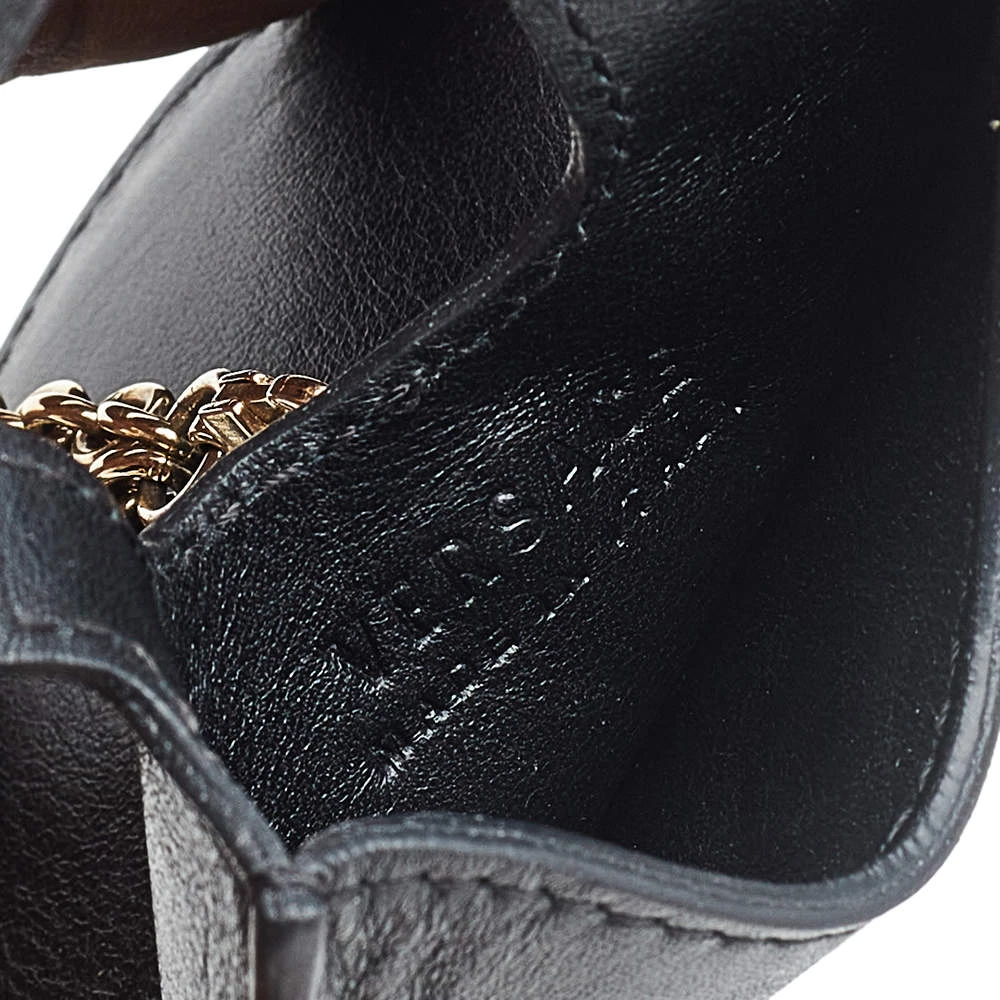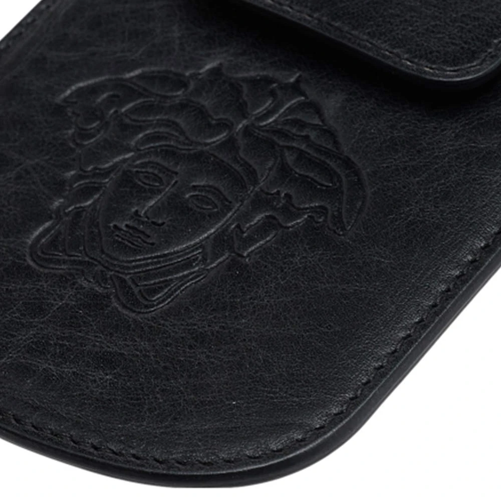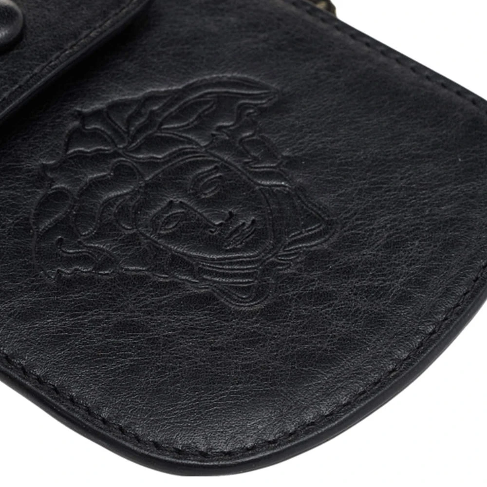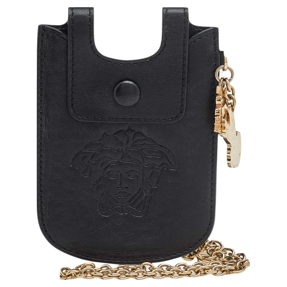This phone holder from Versace is a functional style accessory. Crafted from durable leather, it comes with a lined interior to store your phone and other essentials like cards and cash. It is complete with a chain.