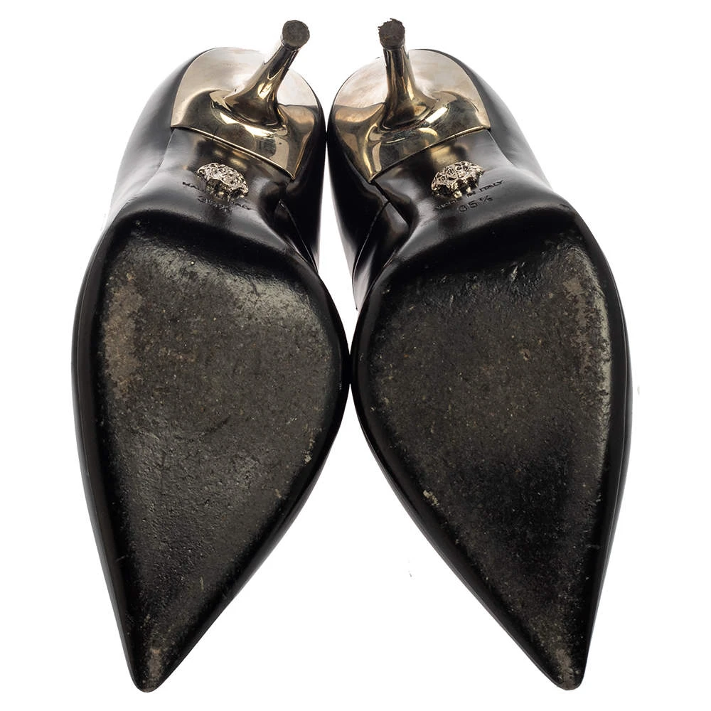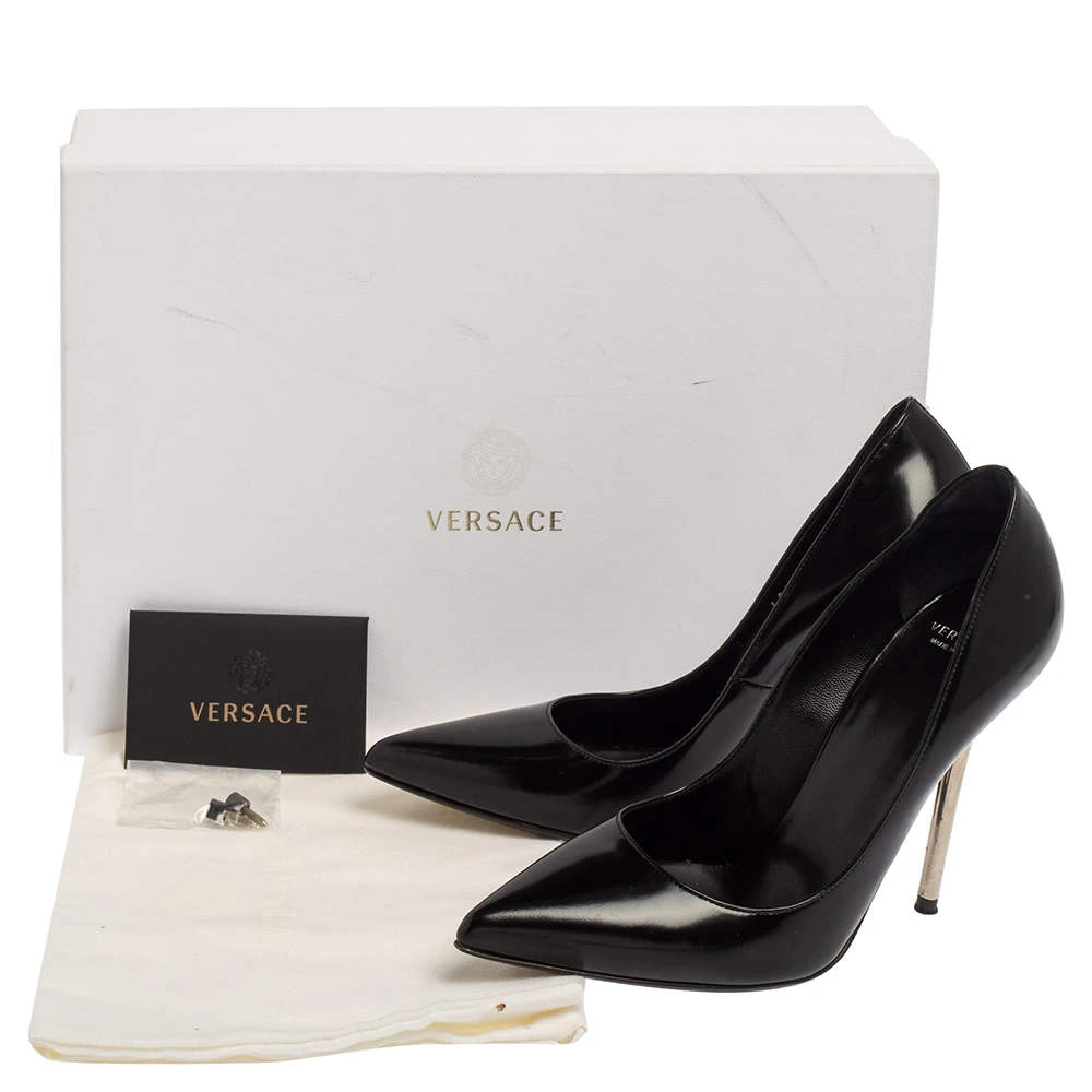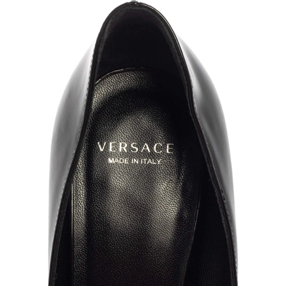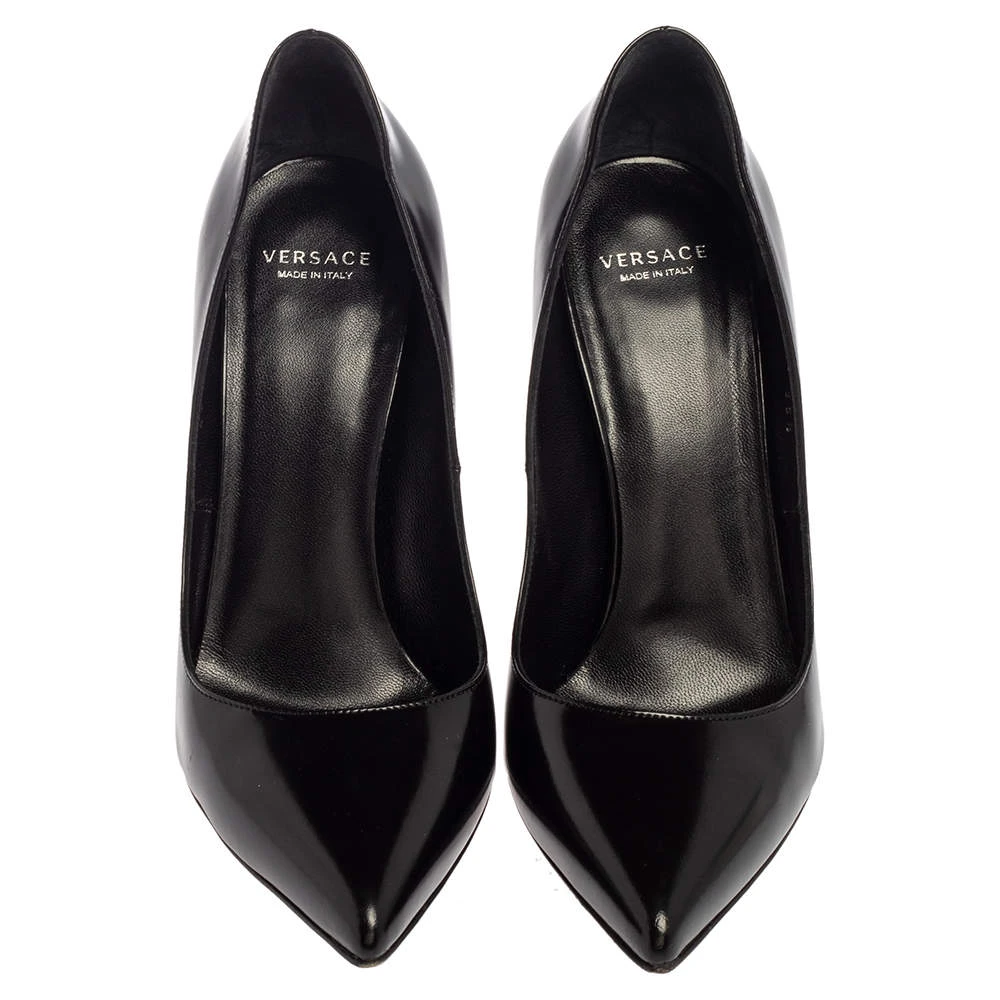 Classy and stylish, these pumps from Versace are truly worth the buy. They are crafted from black leather, styled with pointed toes, and endowed with comfortable leather insoles. They stand tall on 11 cm pencil heels.