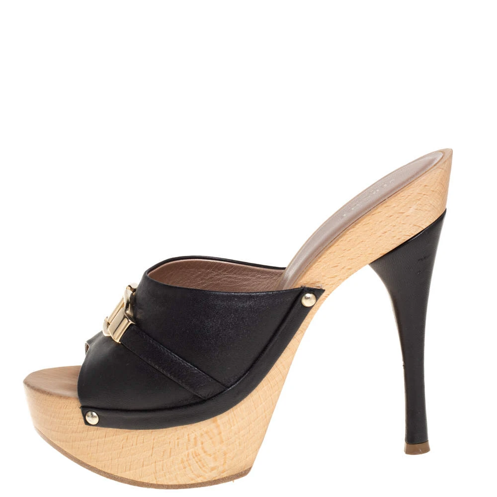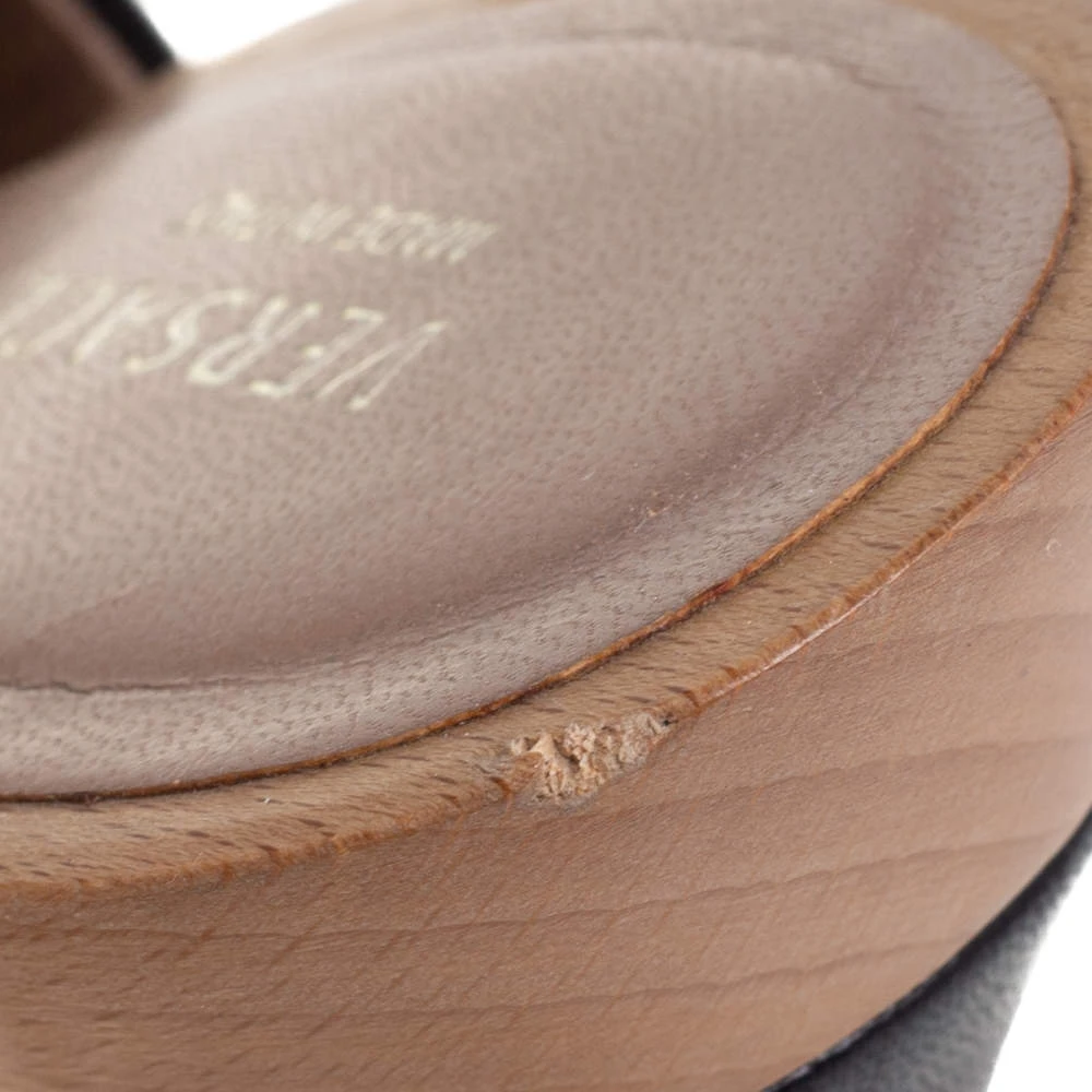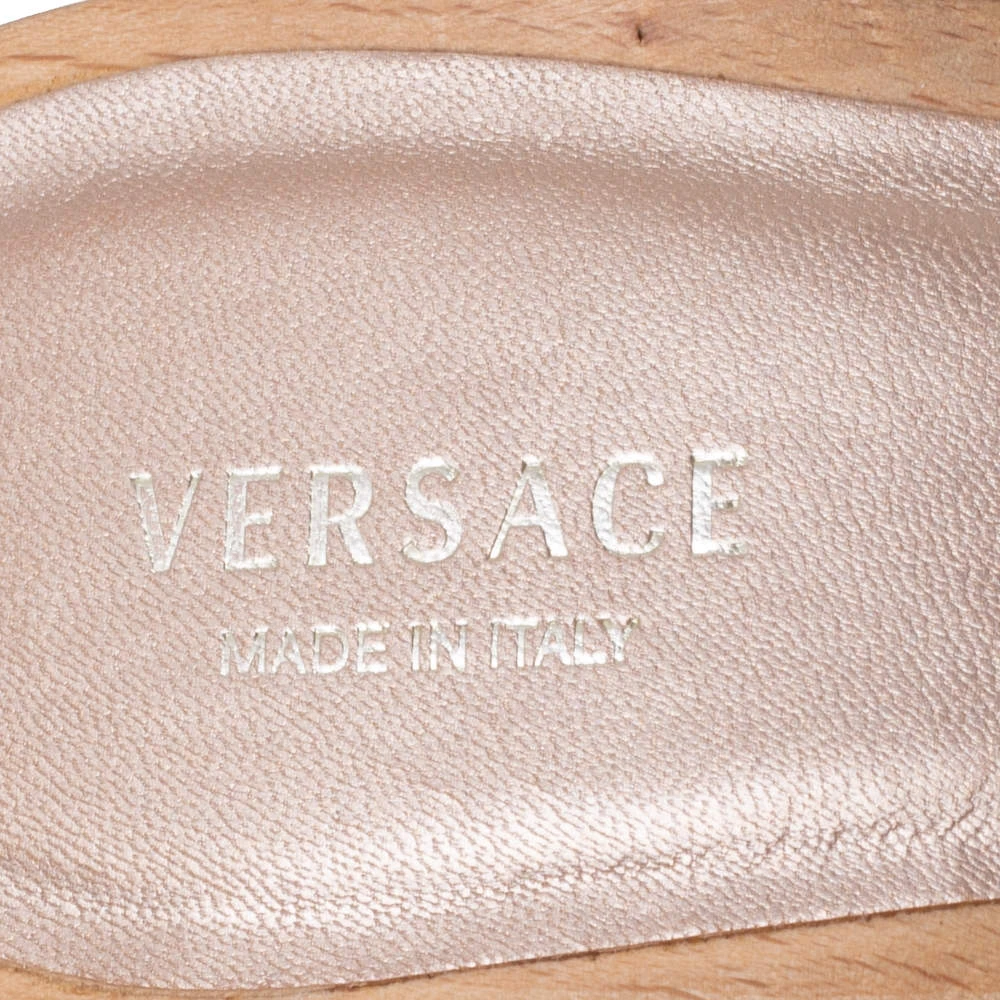 Comfort and style come together to define this pair of slide sandals from Versace. Crafted from leather, the open-toe platform slides have been designed with 11 cm heels and gold-tone signature accents on the vamps.