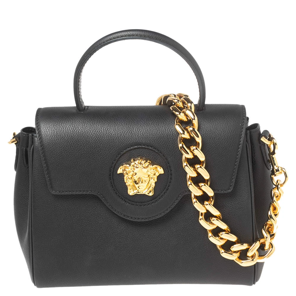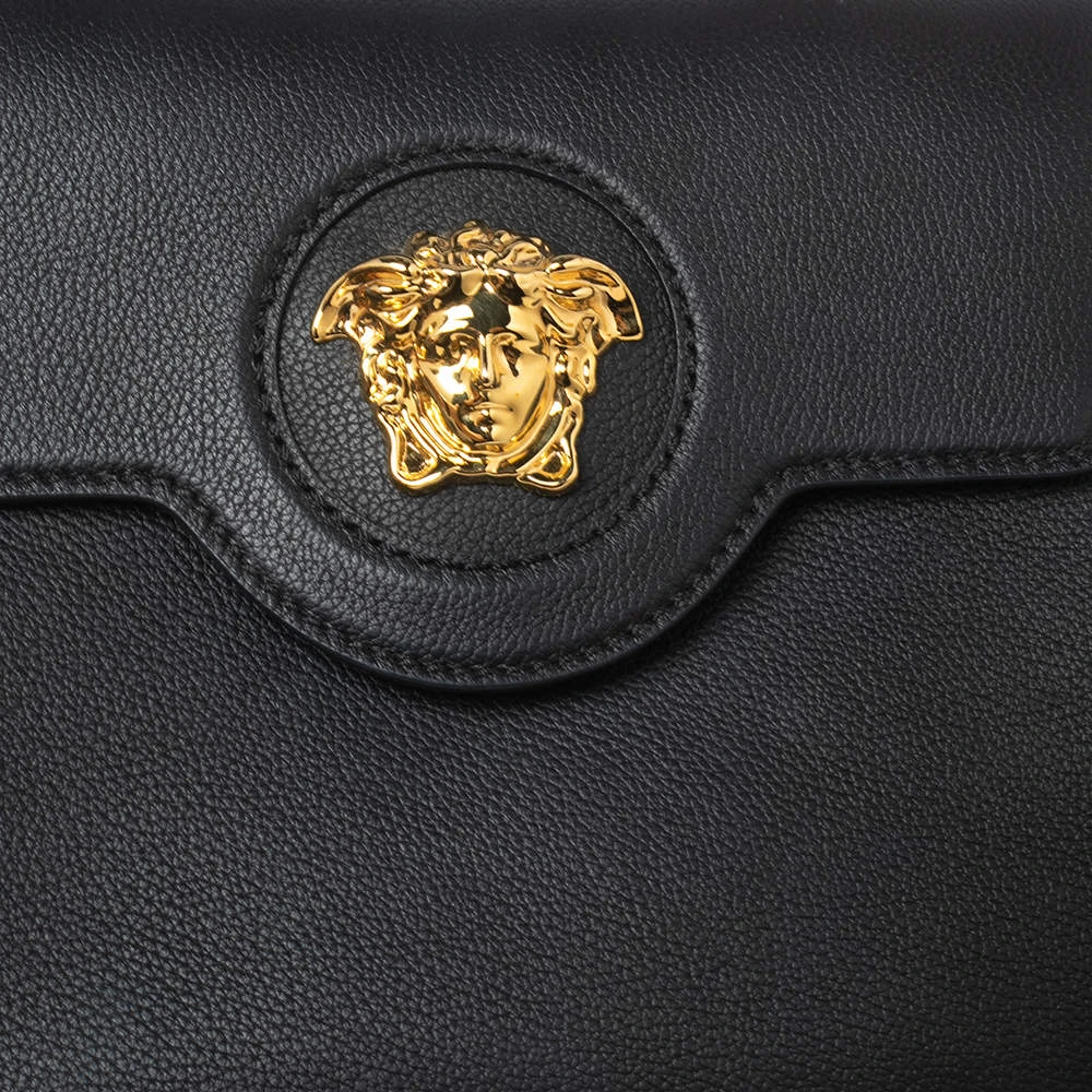 With this stunning bag, the House of Versace introduces a stylish piece of accessory, perfect for every woman. On the exterior, the tote features black leather, a top handle, and a gold-tone Medusa motif. It equips a spacious leather-lined interior, which can house your belongings safely.