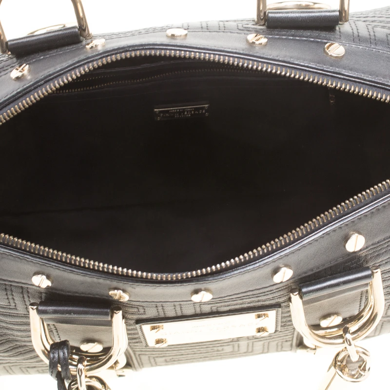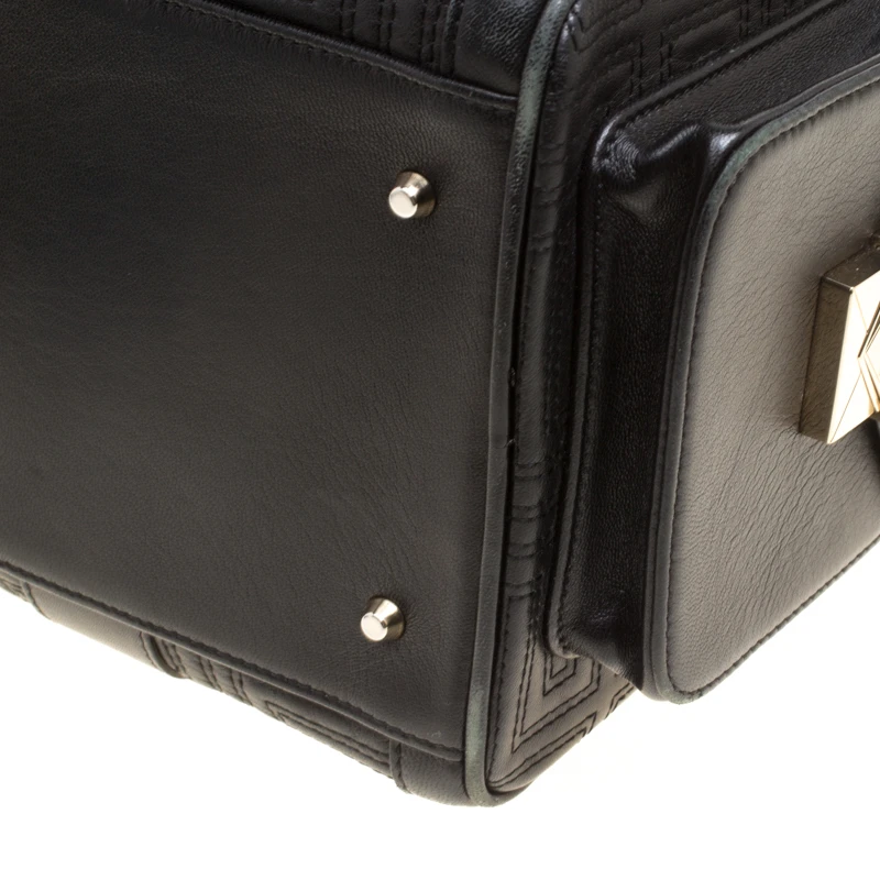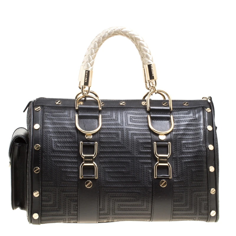 How gorgeous is this satchel from Versace! It carries an outstanding design and a fabulous interplay of leather and gold-tone hardware. It has a top leading to a satin interior while being held by two top handles. The quilts and the brand logo on the front just uplift its beauty and makes it a buy you will not regret.