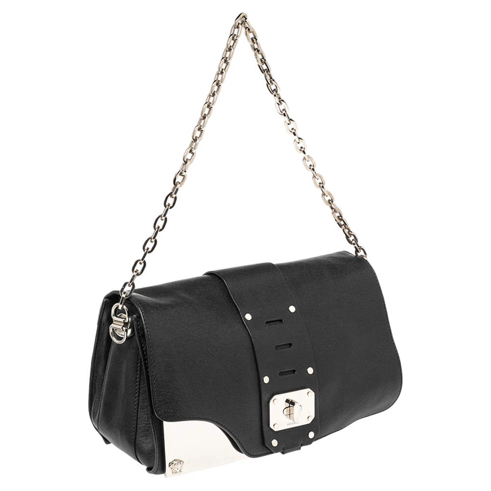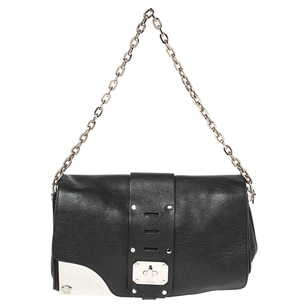 Every woman needs a bag that is pretty and functional, just like this Stardust shoulder bag from Versace. Crafted from leather, it features silver-tone metal accents and the Medusa detail on the exterior. It has a chain-link strap and a leather shoulder strap and a spacious interior. This is definitely one handy bag that deserves to be yours.
