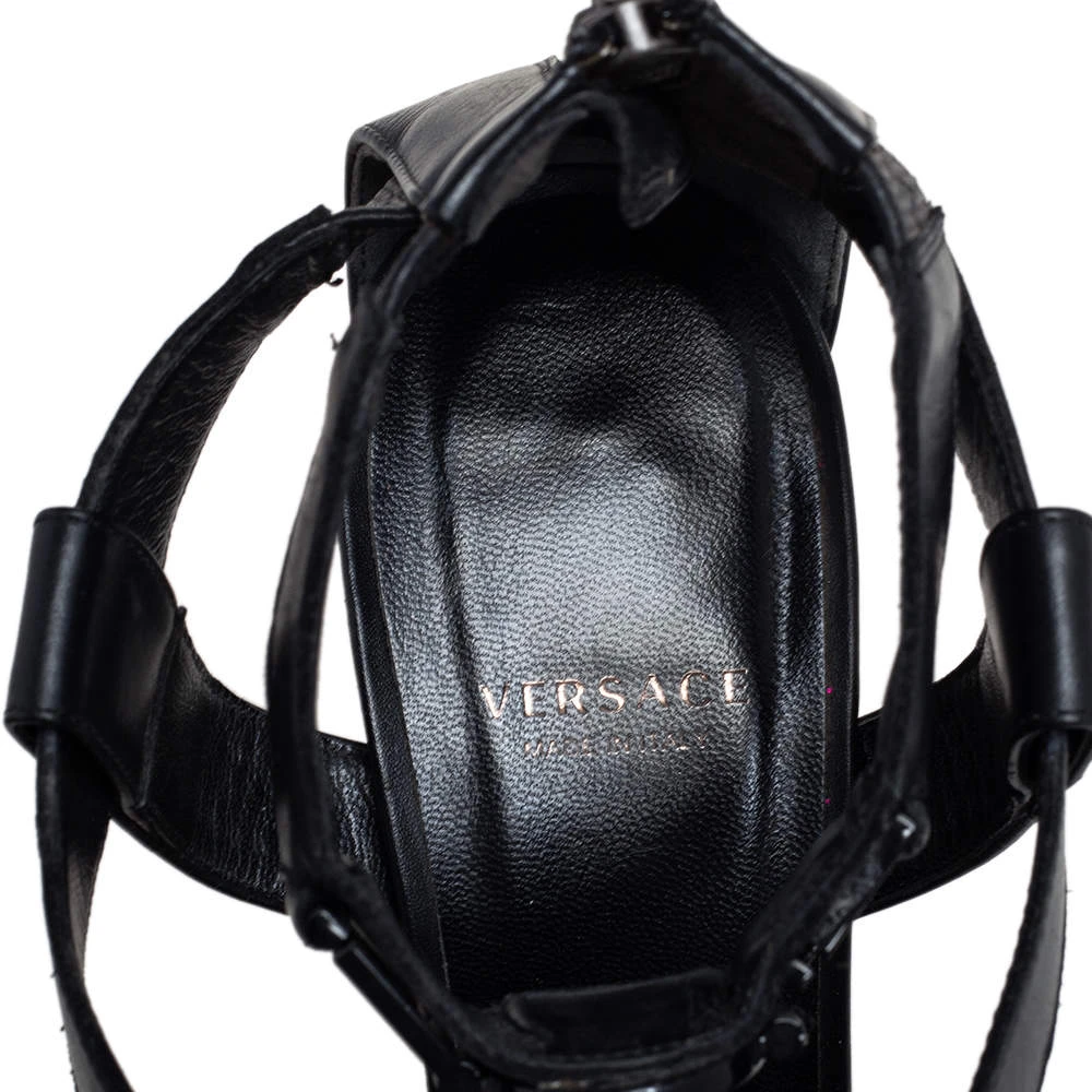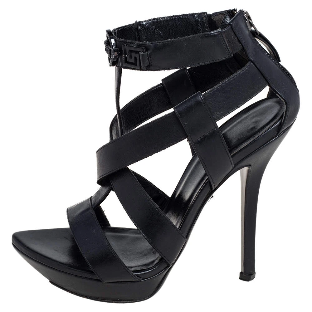 These Versace sandals are crafted from leather and feature a lovely silhouette accented with strappy uppers, a zipper fastening on the counters, platforms, and high heels. They flaunt a tonal Medusa motif on the ankles. Pair them with shift dresses for your fashionable outings.