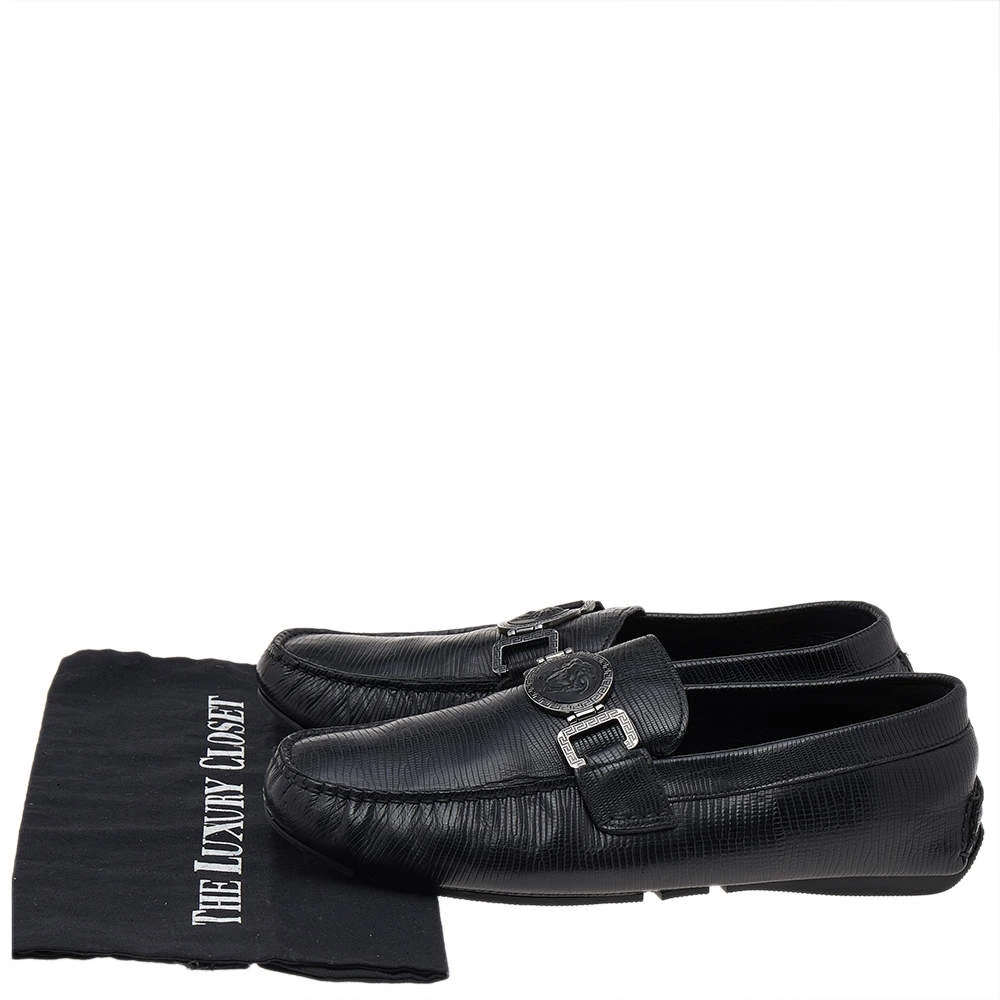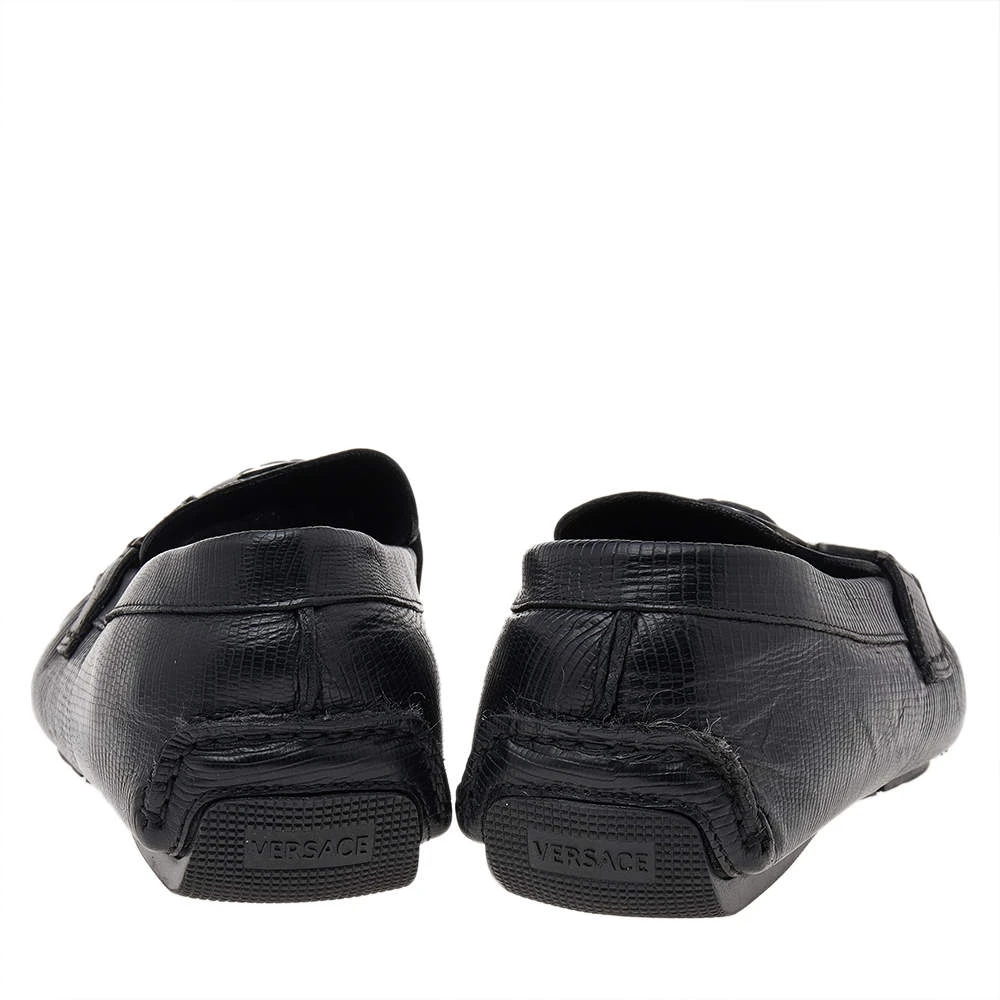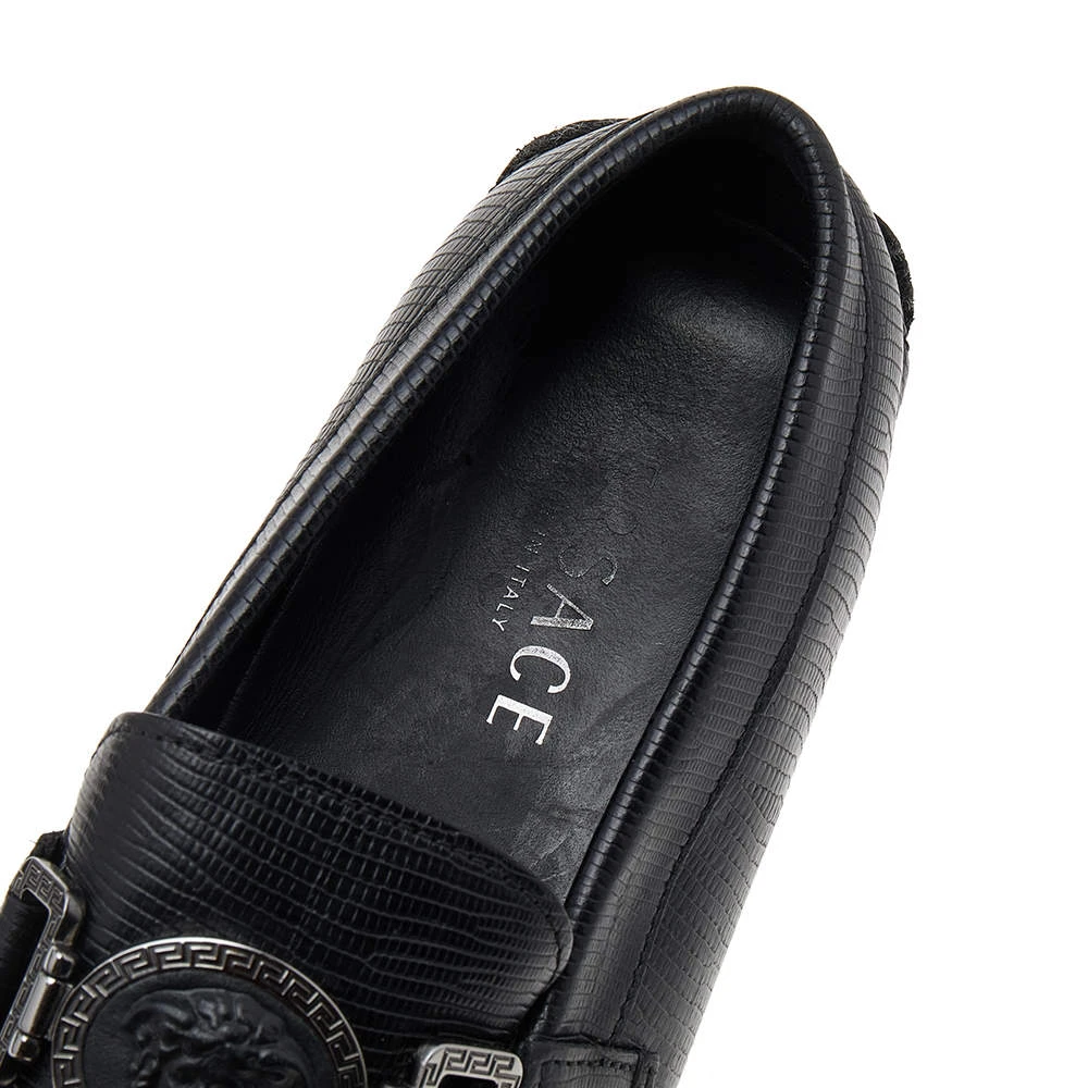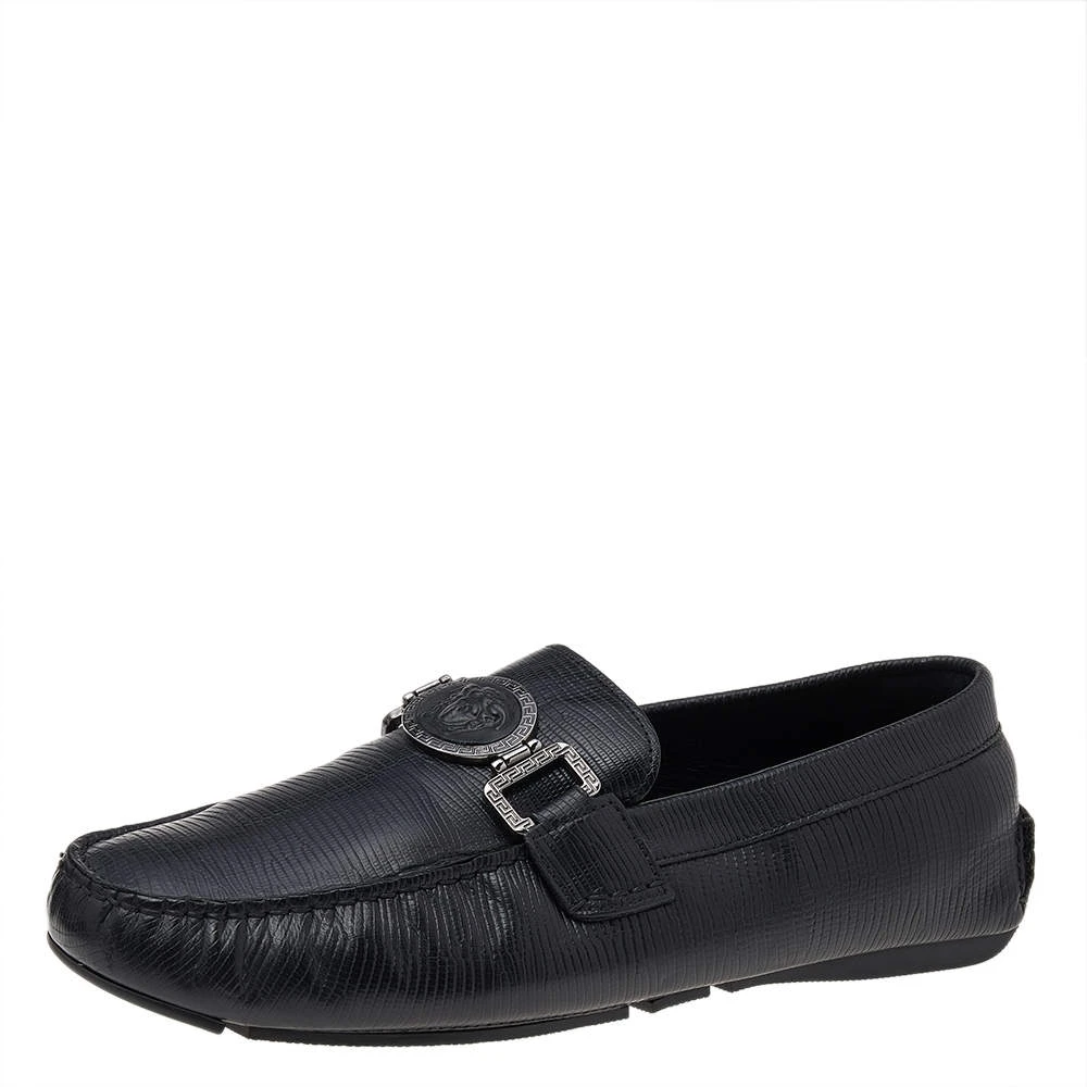 Functional and stylish, Versace’s collections capture the effortless, nonchalant finesse of the modern man. Crafted from lizard leather in a black shade, these loafers are so comfortable you’ll never want to take them off. They are topped with medusa motifs for a signature finish.
