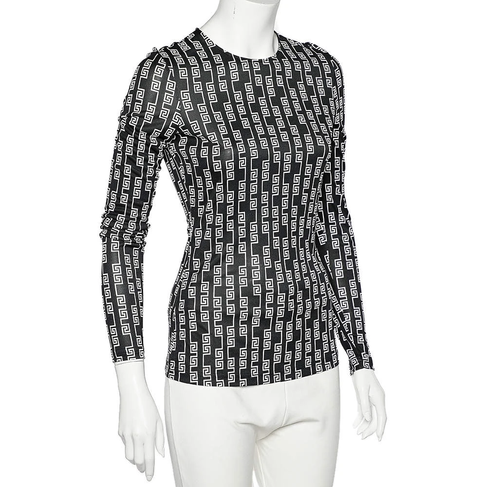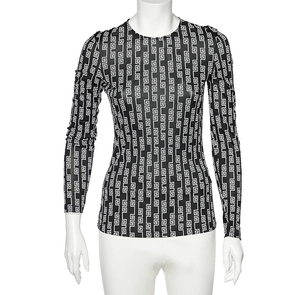 Add signature style and beauty to your closet with this trendy T-shirt from Versace. This finely-crafted piece from Versace is made from a black logo printed jersey and shows long sleeves. Complement this T-shirt by wearing it with black trousers and heels.