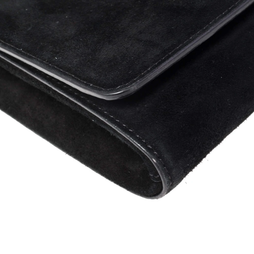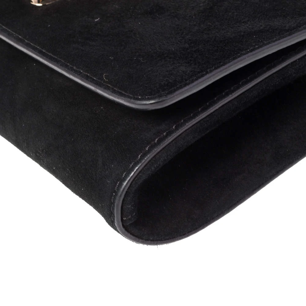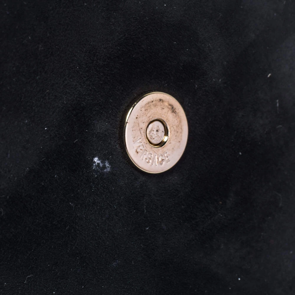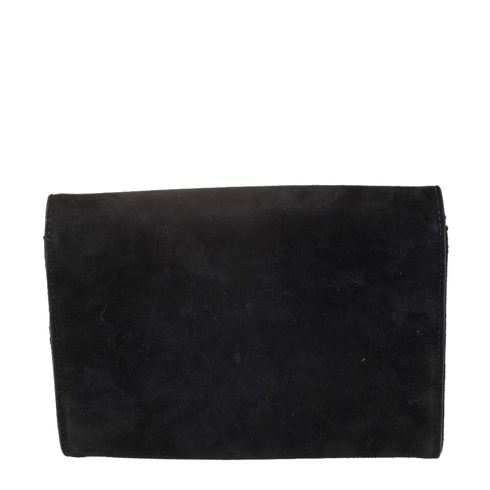 This clutch from Versace is designed in black suede. It brings a Medusa-adorned flap to secure the interior which is lined with satin and leather. It comes held by a gold-tone chain and is perfect for evenings.