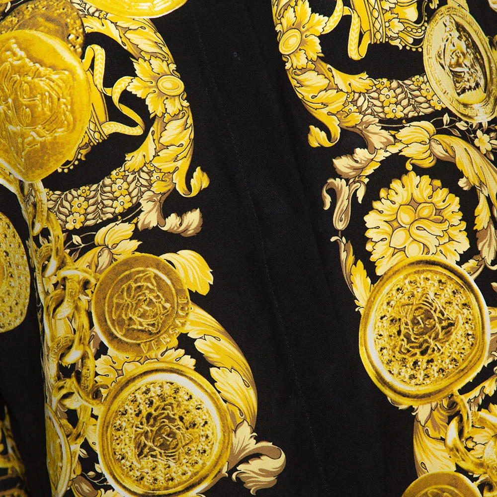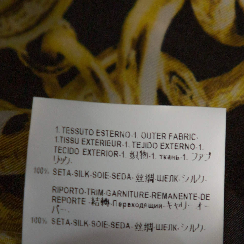 Crafted in silk, this shirt exemplifies Versace’s signature elements in a bold yet luxe way. The shirt feature button closure, long sleeves and Barocco prints in gold over black.
