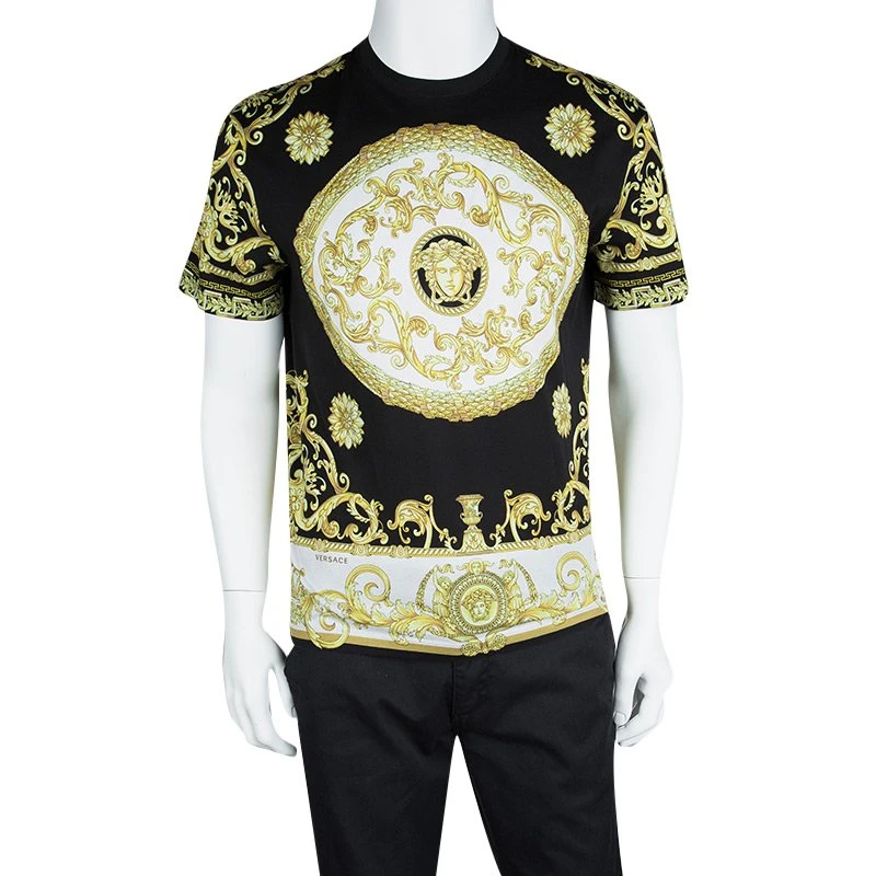 To make you look smart and on point with style, Versace brings you this black T-shirt that comes with a crew neck, short sleeves, and signature prints all over. You can team it with a pair of jeans and leather loafers.