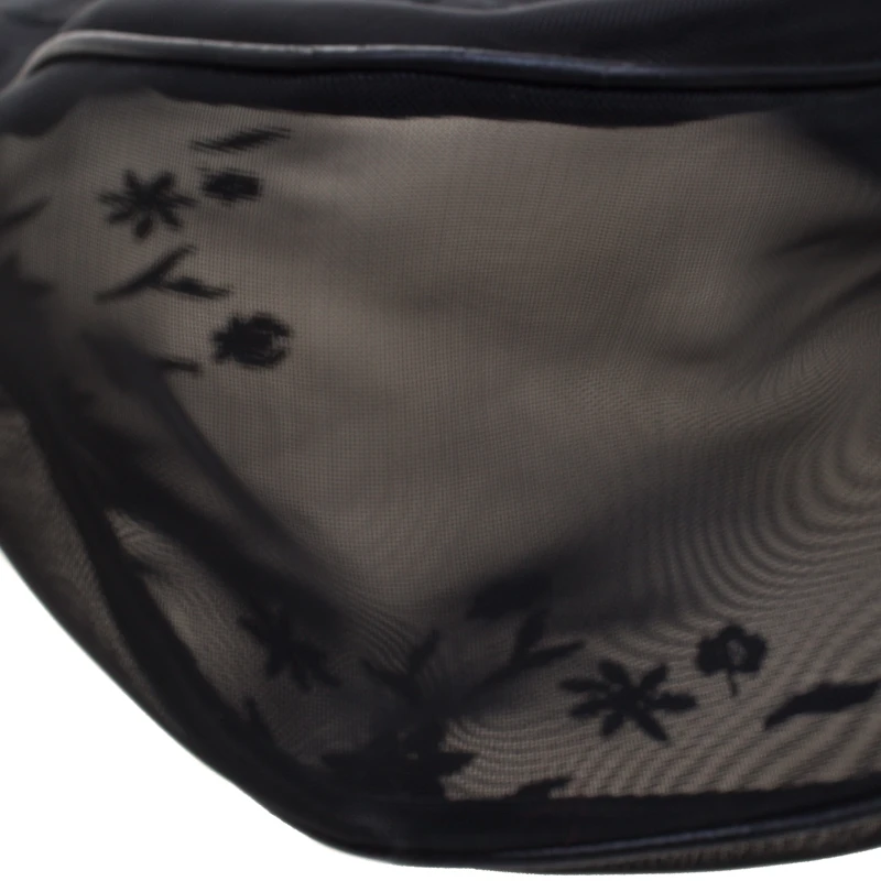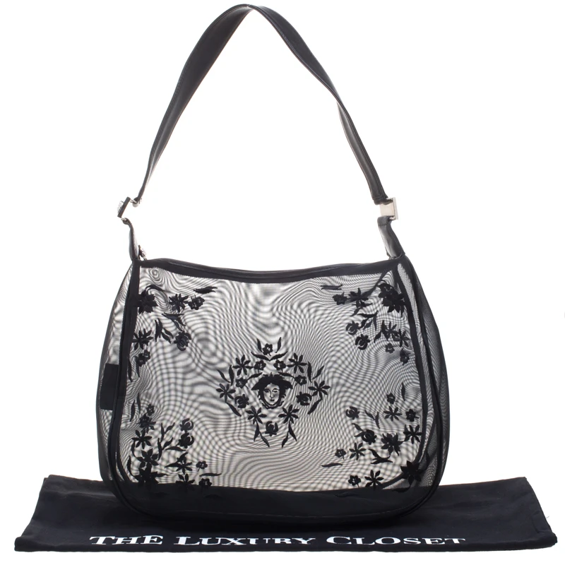 This Versace bag definitely is a stunner in terms of its appeal and craftsmanship. Created from mesh, the exterior of the bag has pretty floral details all over its see-through spread with their brand logo on the front. The bag is well-sized for sufficient carriage and it is complete with a shoulder strap.