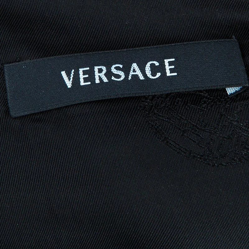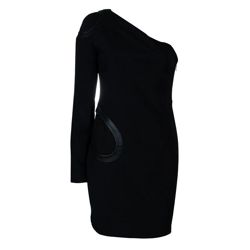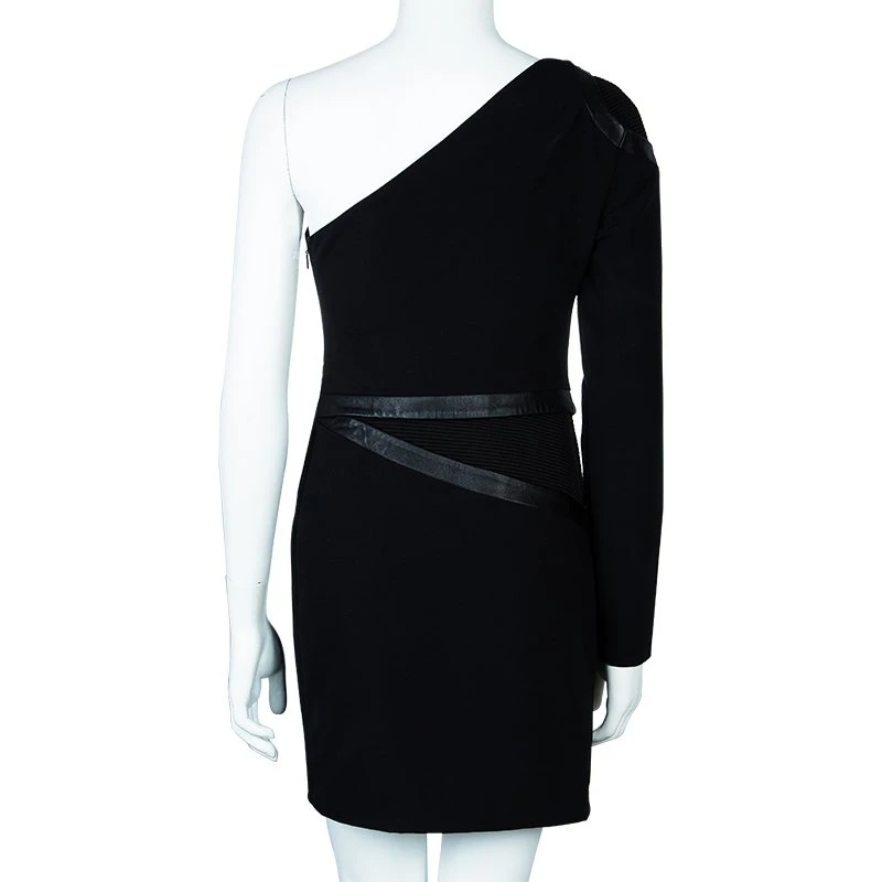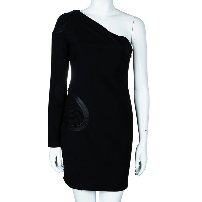 Step in that cocktail party like a celebrity of brilliant style as you dress up in this one shoulder dress by Versace. It comes crafted in polyamide, silk and elastane and features one sided full sleeve. The glossy wavy belt detailing looks a la mode!