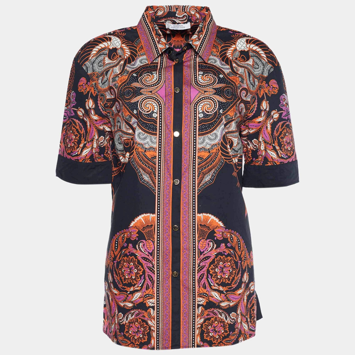 Versace shirts are designed with a focus on both comfort and luxury so that you can wear them for a long time. This stylish creation is tailored from quality materials and comes in a black shade. Short sleeves and a buttoned front design make the shirt complete.