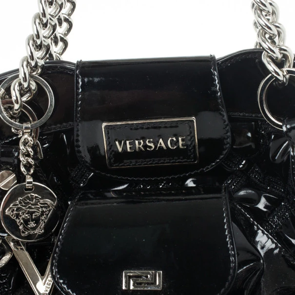 Be the first to review “Versace Black Patent Chain Link Handle Satchel For Women” Cancel reply