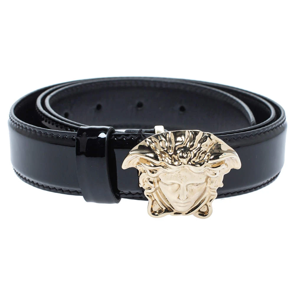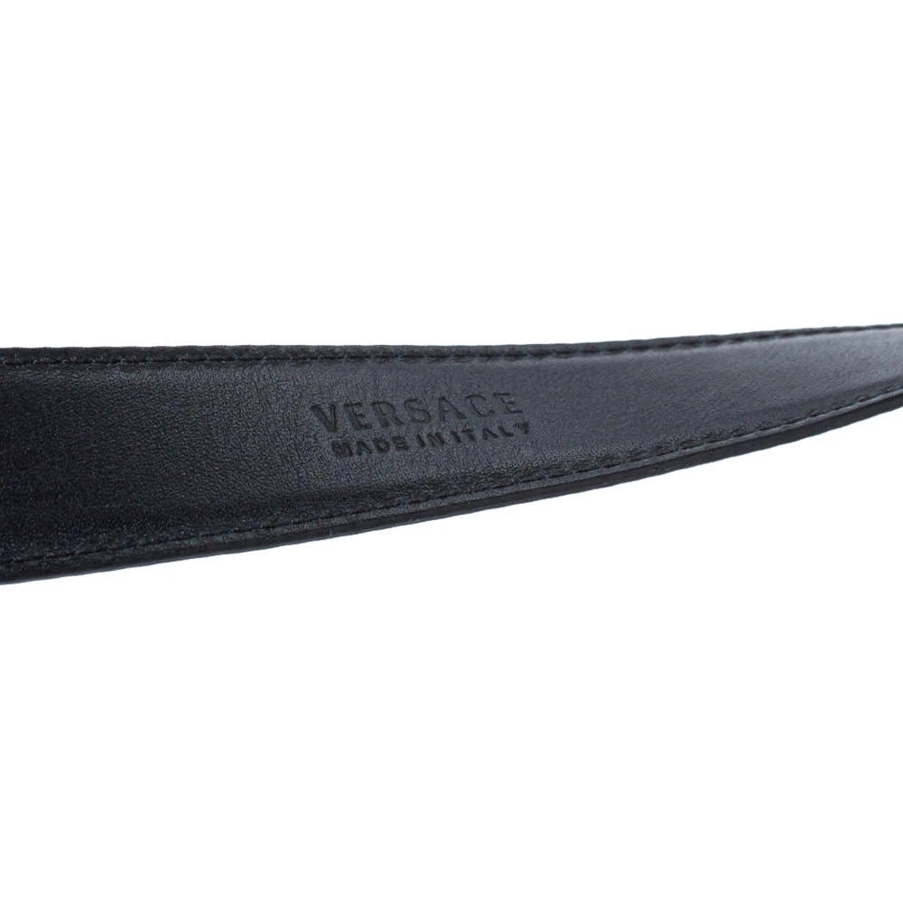 Every wardrobe deserves a statement belt and what better than this Versace one! The black leather body is complemented by a gold-tone Medusa logo buckle. The belt has a single loop and will be an amazing accessory to pair with dresses and pants.