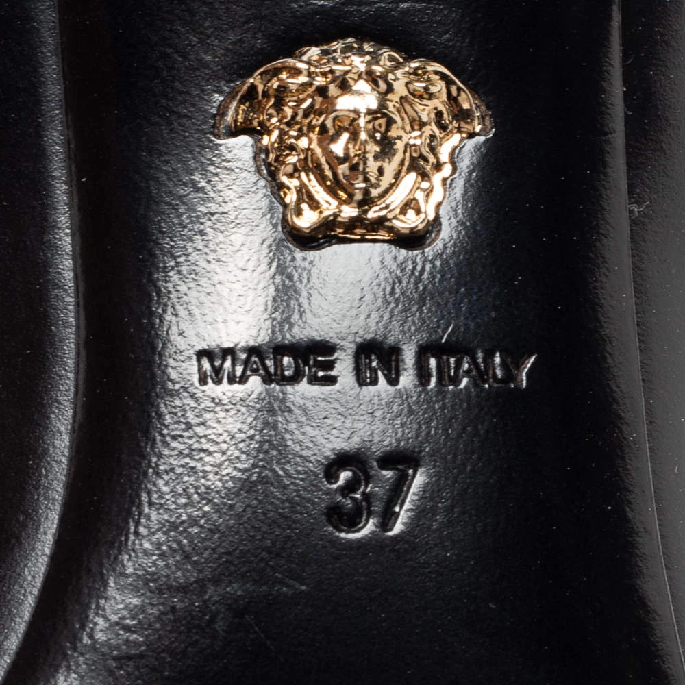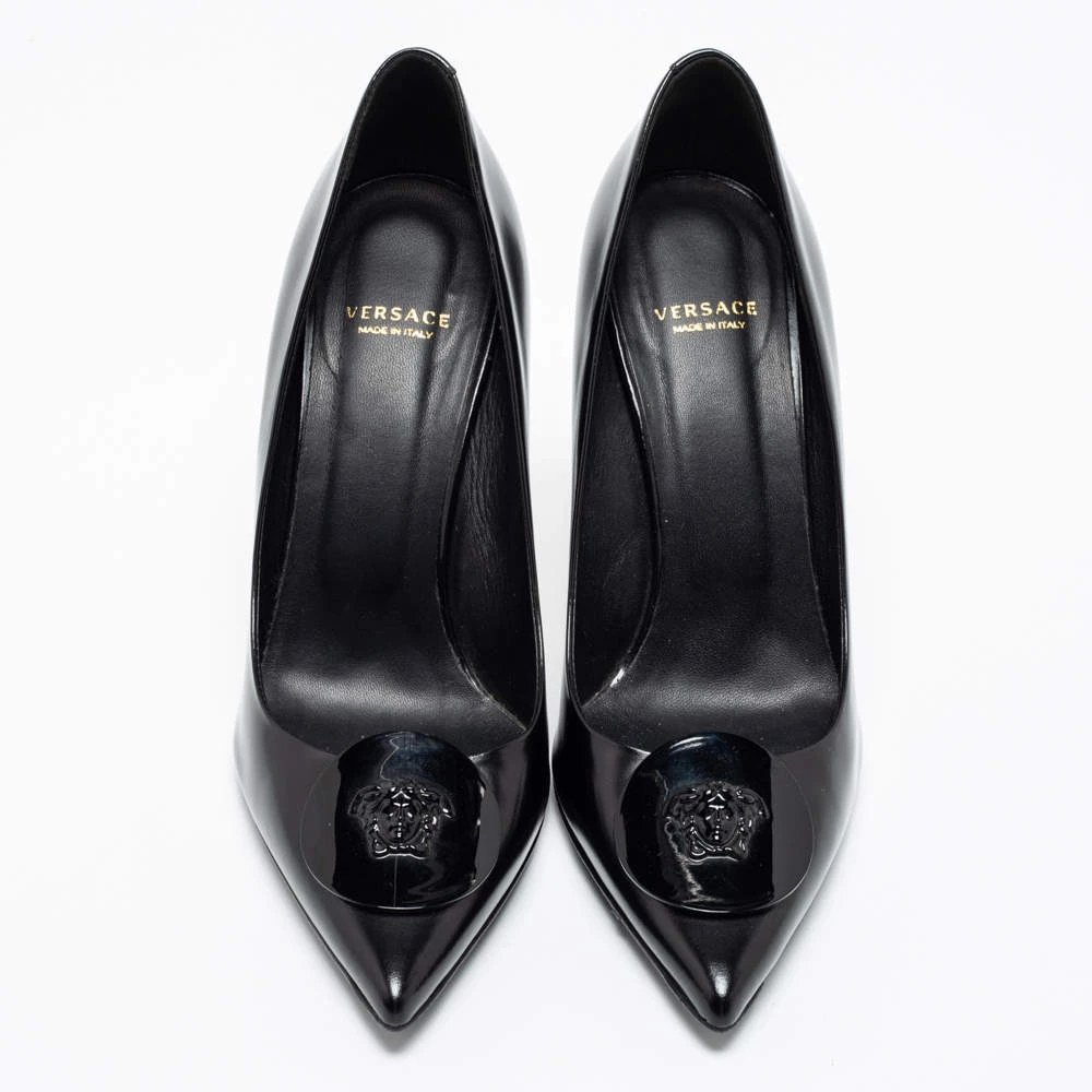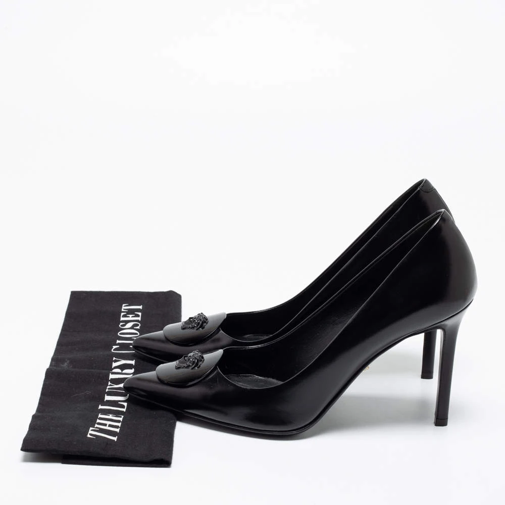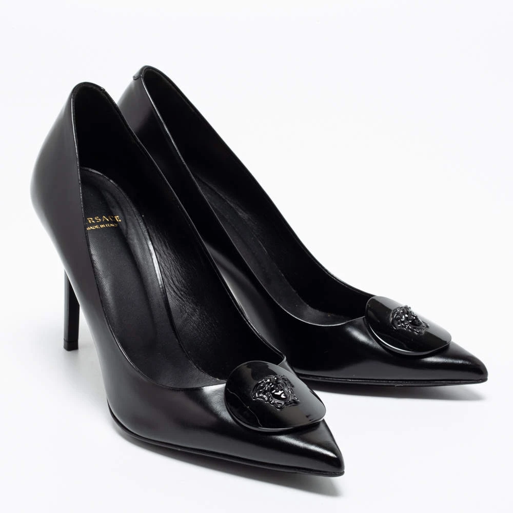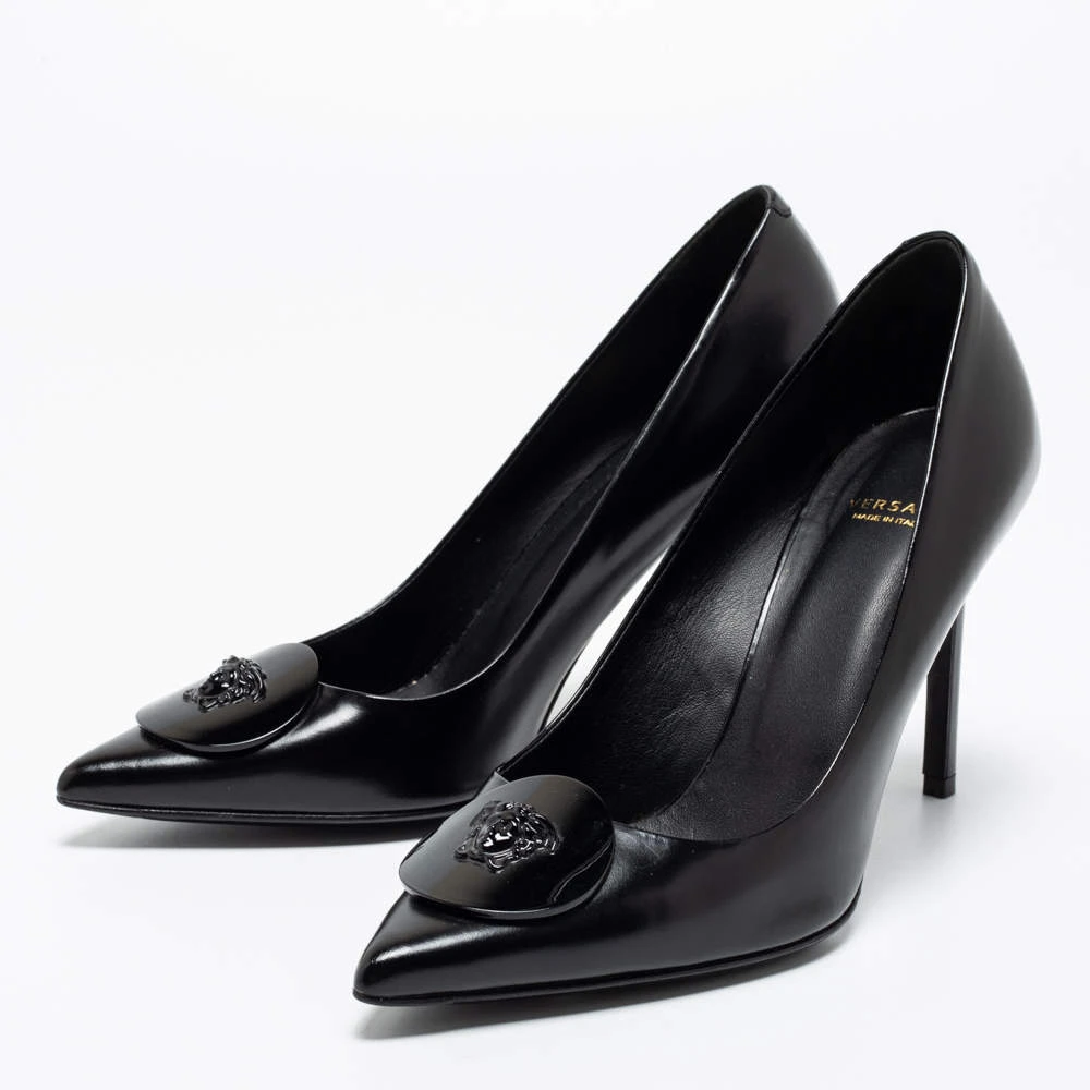 The perfect combination of timeless elegance and contemporary shape makes this pair of Versace pumps a true investment accessory. Updated with the Medusa motif on the front, the pair symbolizes the rich heritage of the brand. It comes created from leather and is elegantly raised on 9 cm heels.