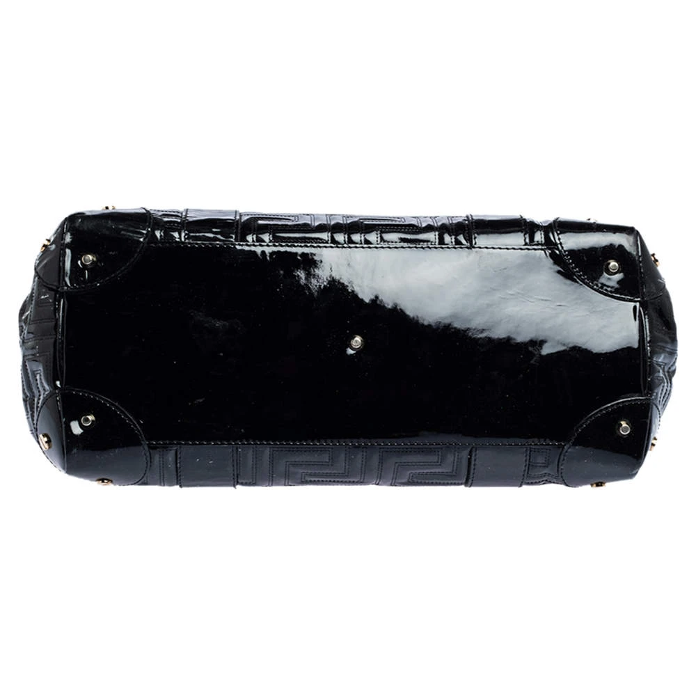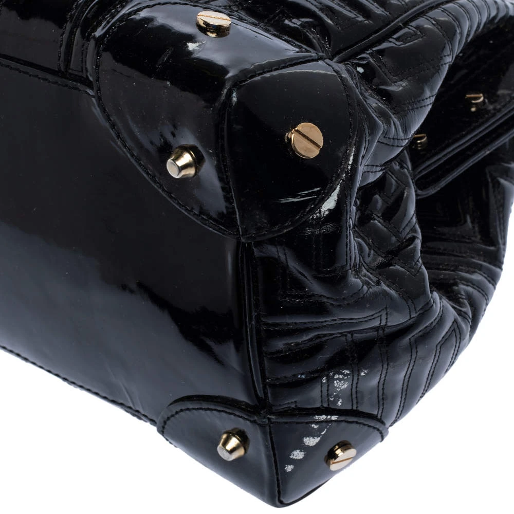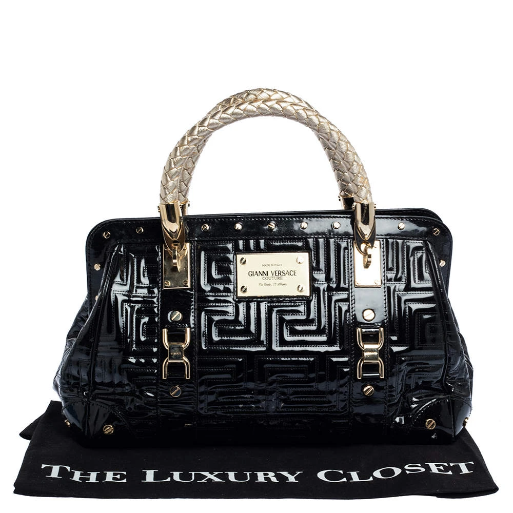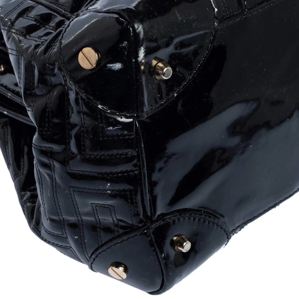 How gorgeous is this satchel from Versace! It carries an outstanding design and a fabulous interplay of patent leather and gold-tone hardware. It has a top leading to a satin interior while being held by two top handles. The shape and the brand logo on the front just uplift its beauty and makes it a buy you will not regret.