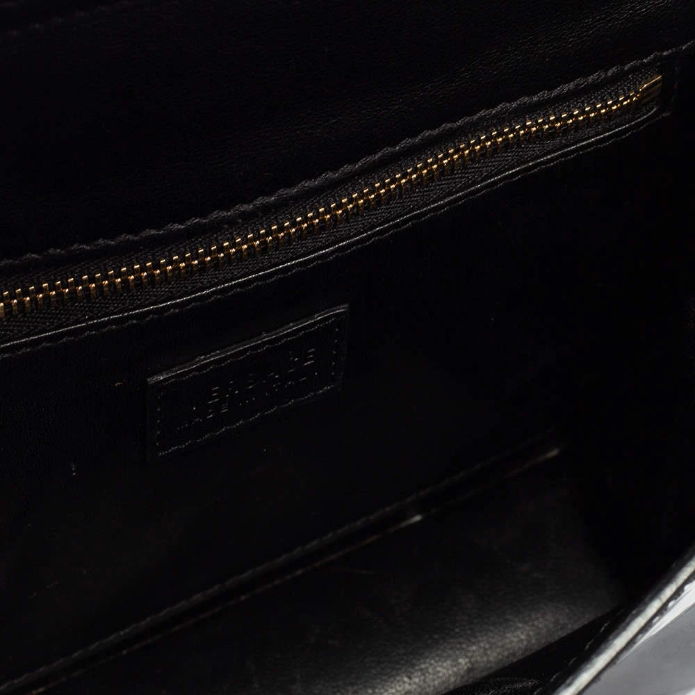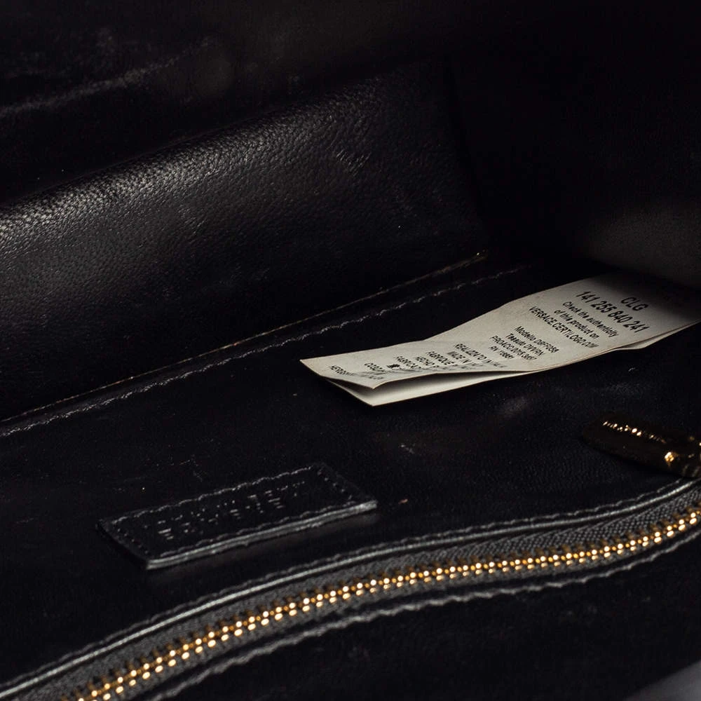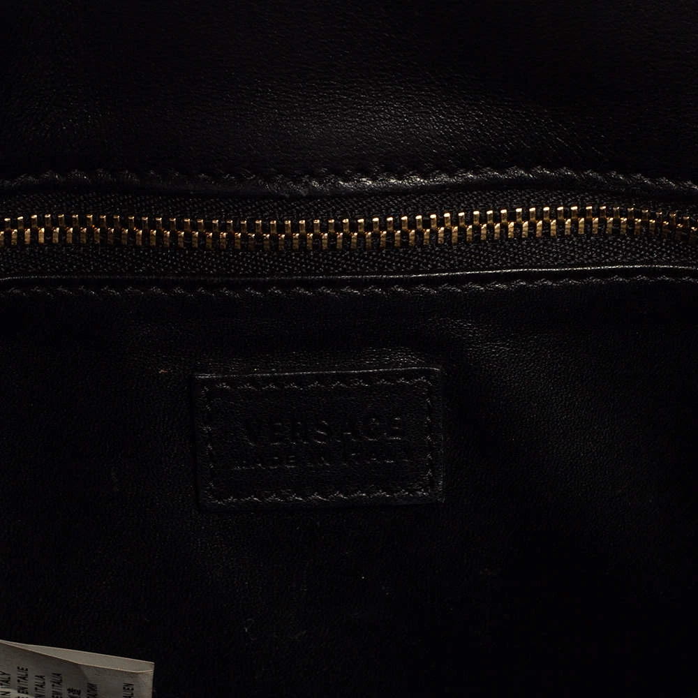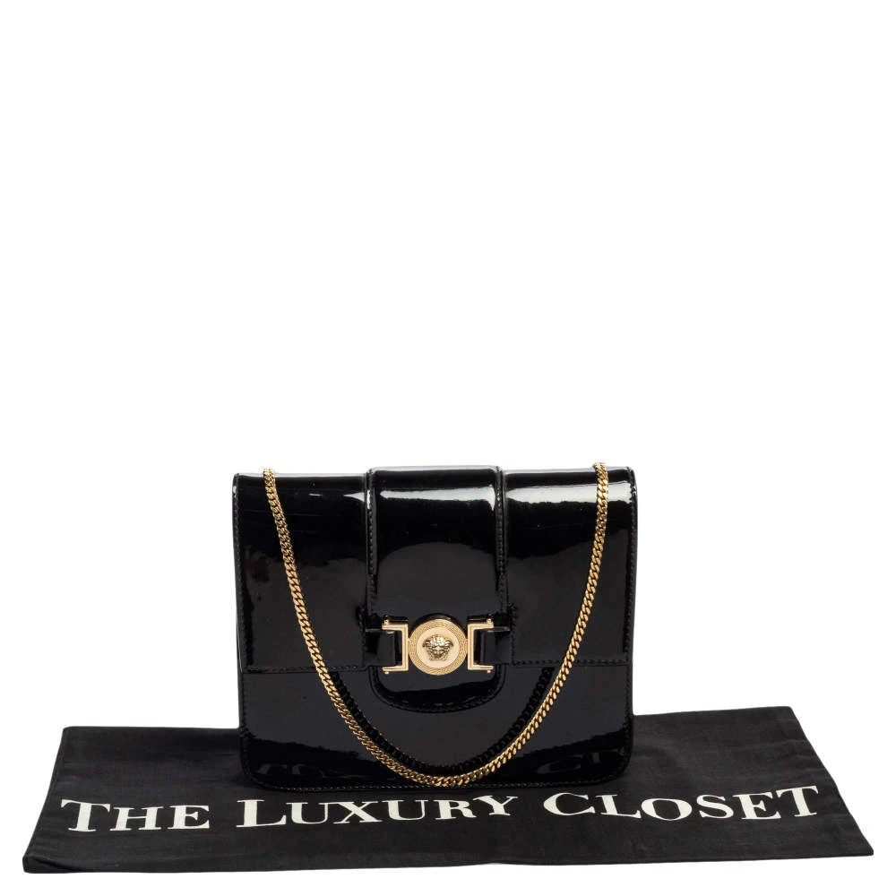 This bag from Versace definitely needs to be on your wishlist. The bag is crafted from patent leather in a lovely black shade. It flaunts a long shoulder strap and the famous Medusa logo at the front. The leather interior houses a zip pocket.