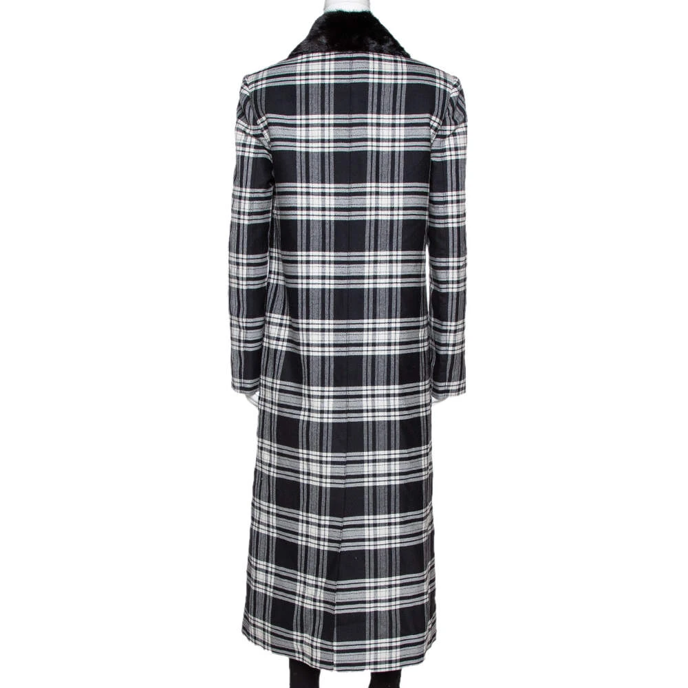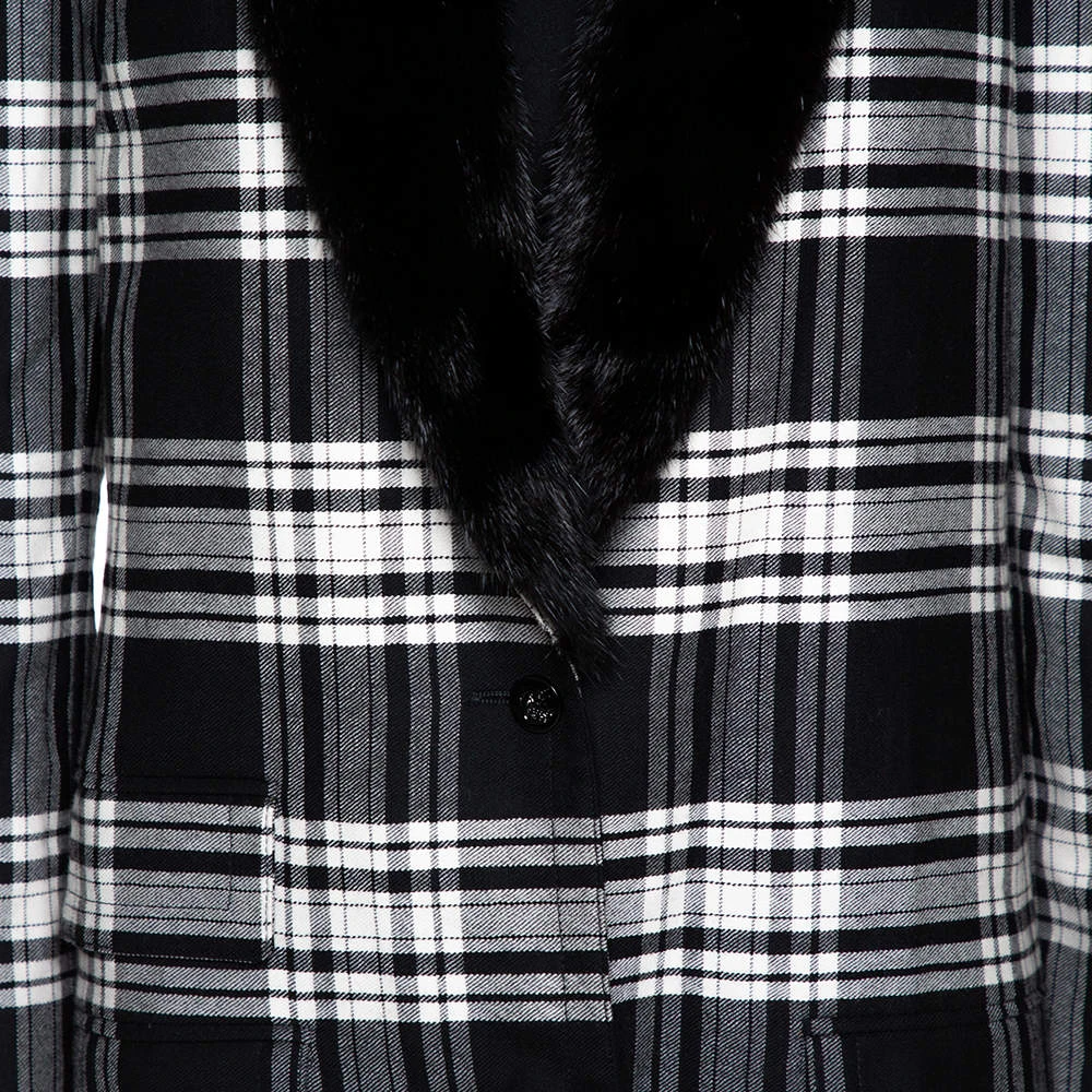 This graceful long coat from Versace is all about luxury and style. This creation is designed from a plaid wool blend and features a shawl collar made from mink fur. It offers full-length sleeves and the signature Medusa logo buttons. Chase away the winter chill wearing this coat.