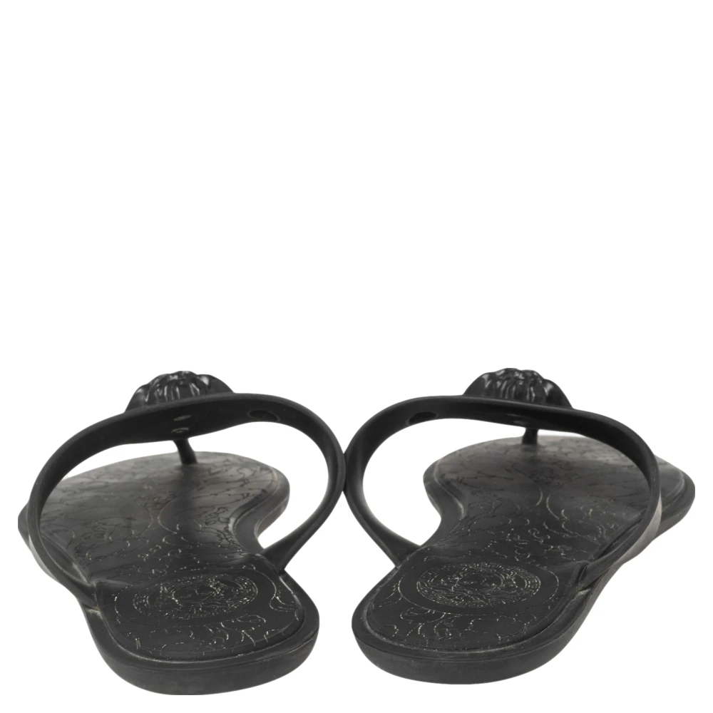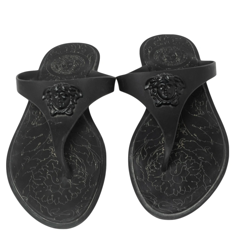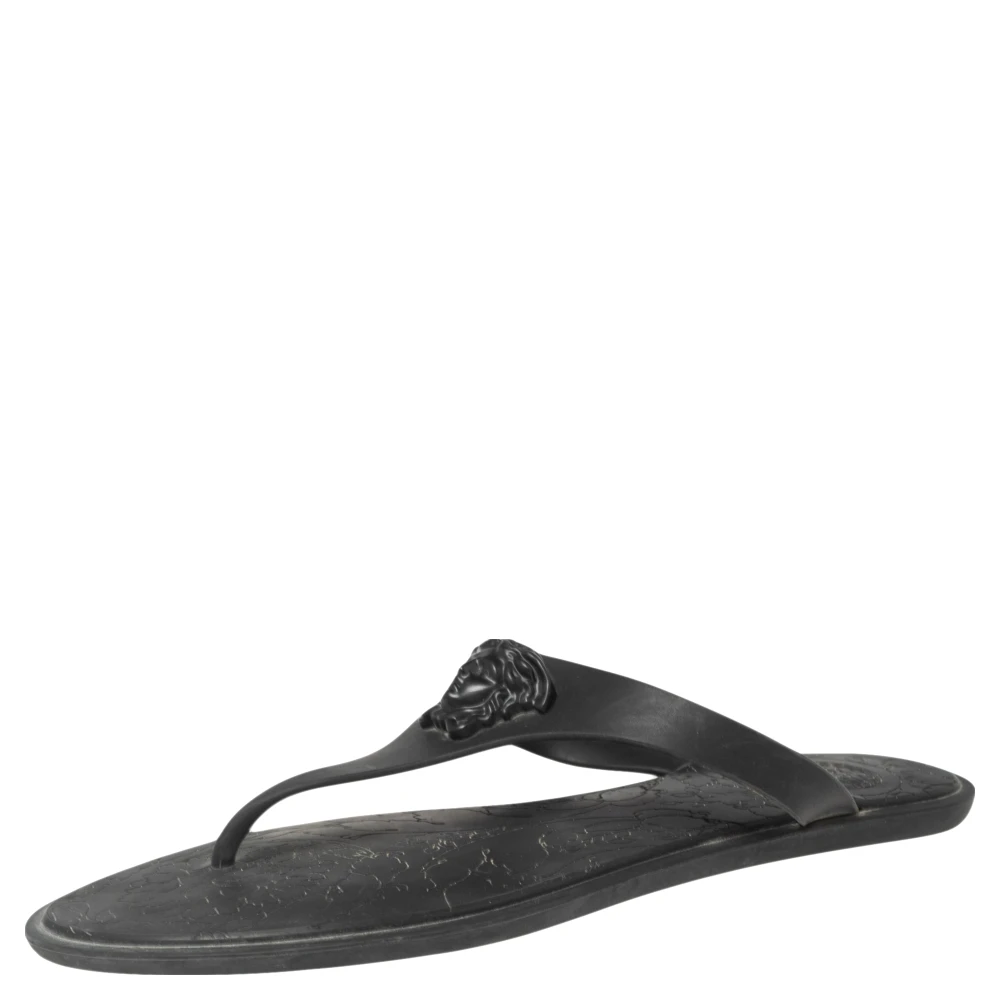 These Versace thong flats are made from rubber just so you can wear them at pools, beaches, or lounge around in them. They come in a black shade and feature the label’s Medusa logo on the vamps for a signature finish.