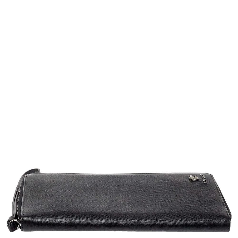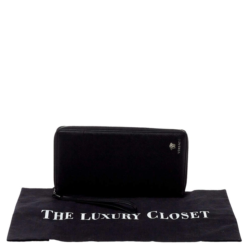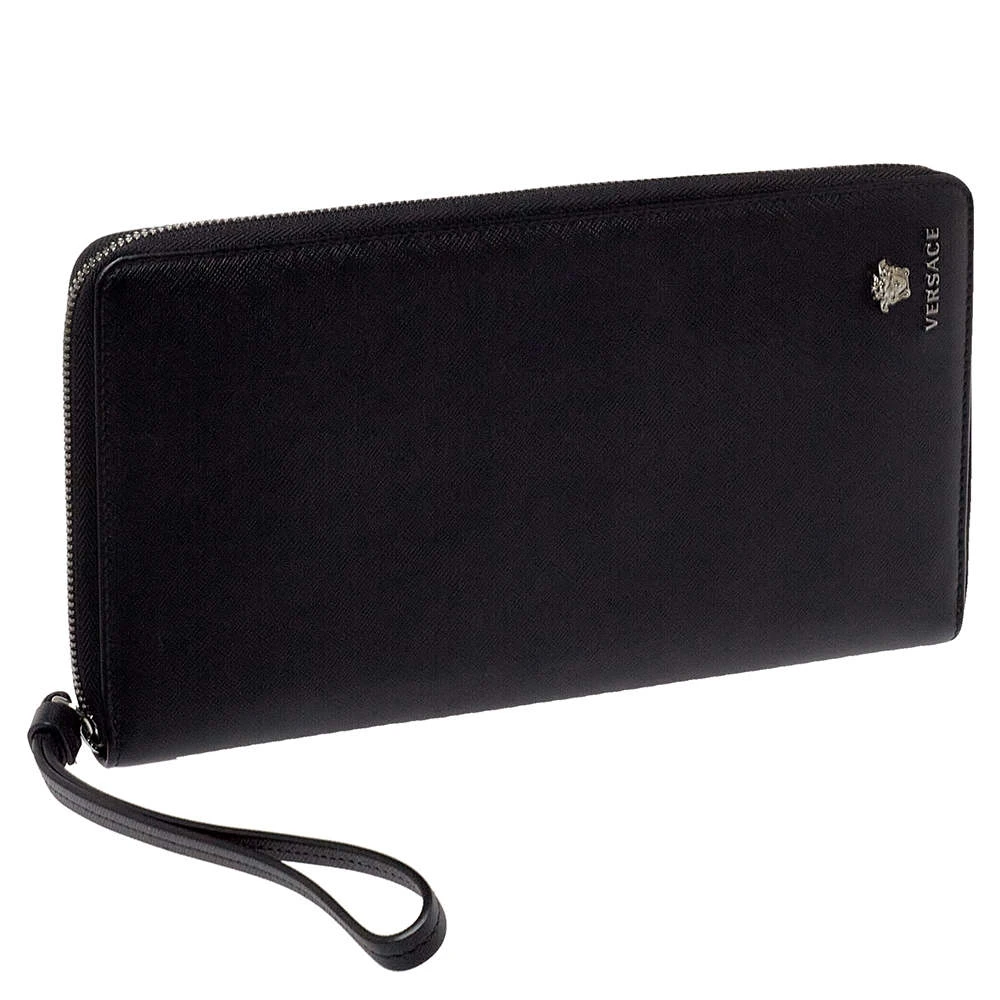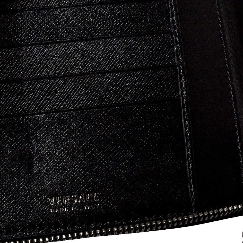 Sewn beautifully using Saffiano leather, this Versace wallet stands for resistance and durability. Durable and compact, the wallet features a well-lined interior and the medusa detail in gunmetal-tone hardware. It is surely going to accompany your days with ease.