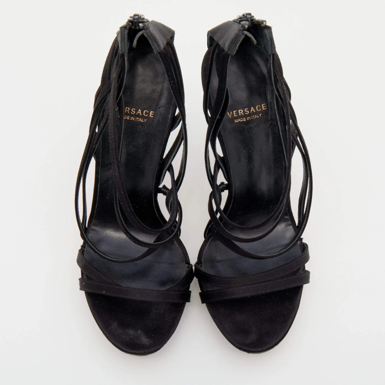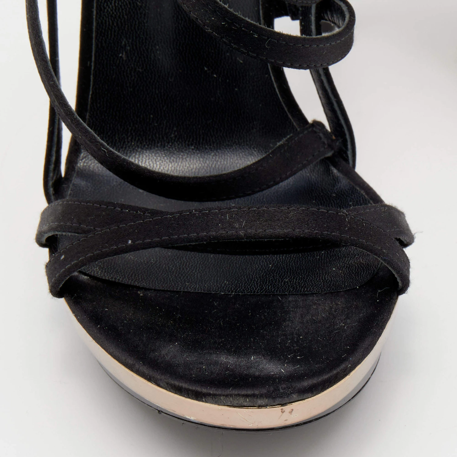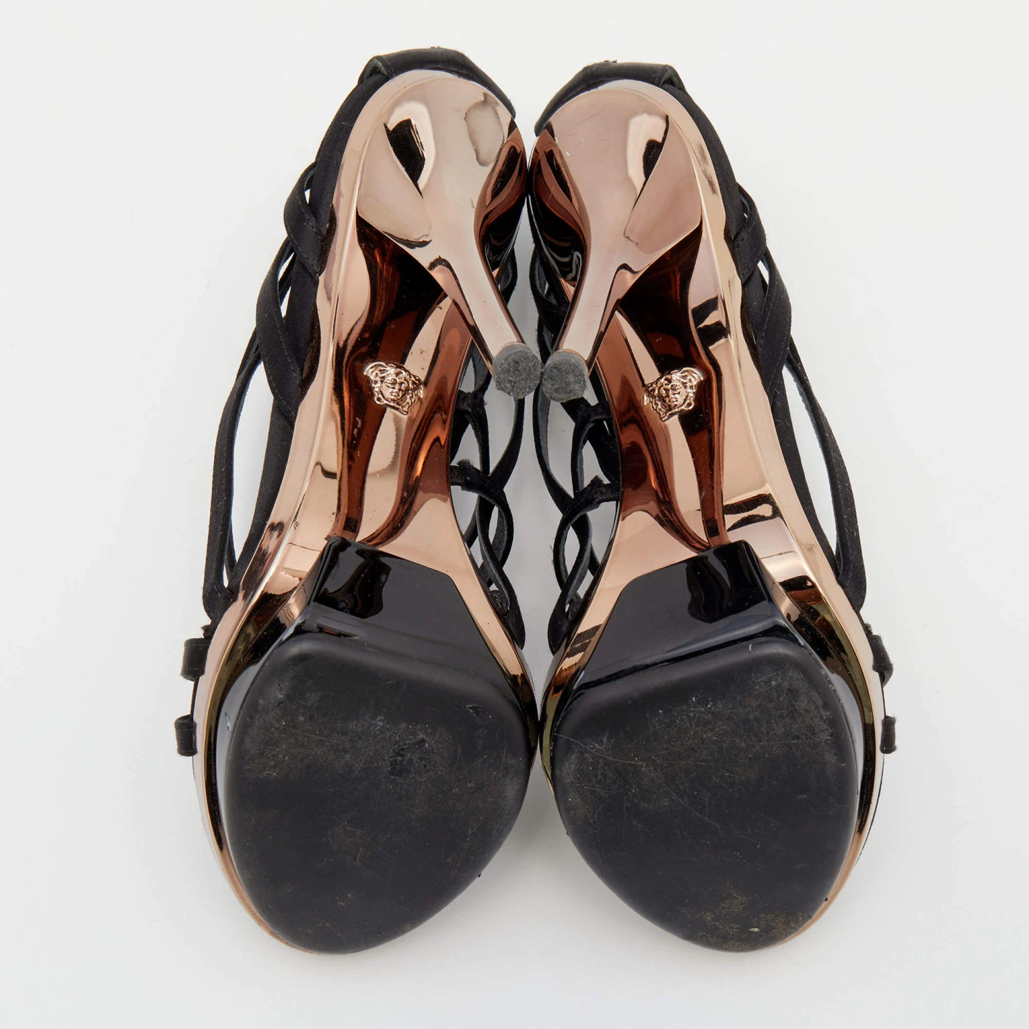 One of the most celebrated fashion House, this label is known for its brilliant craftsmanship in shoemaking. Crafted from satin in a black shade, the strappy style will adorn your feet in the most beautiful way. Style these Versace platform sandals with evening gowns for a stylish look.