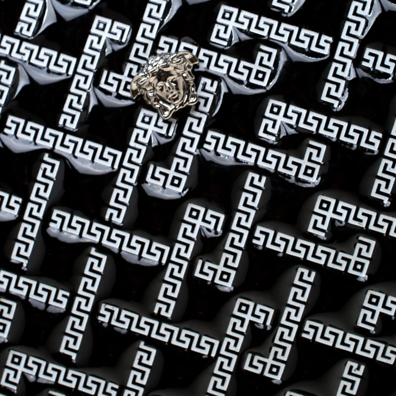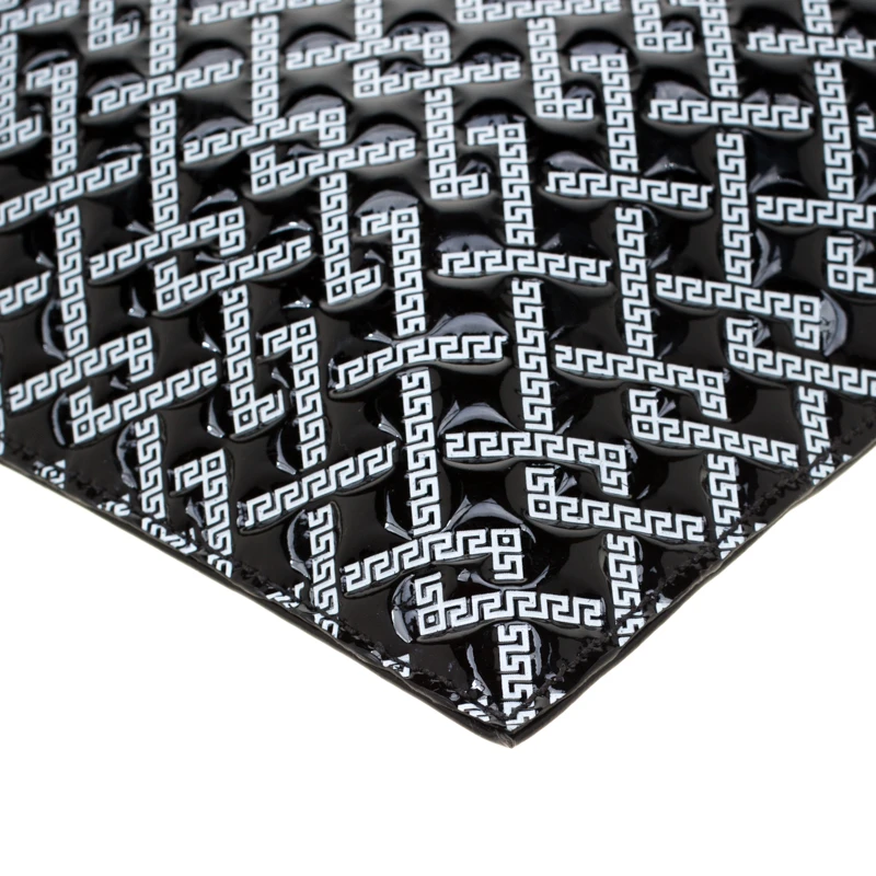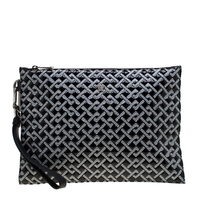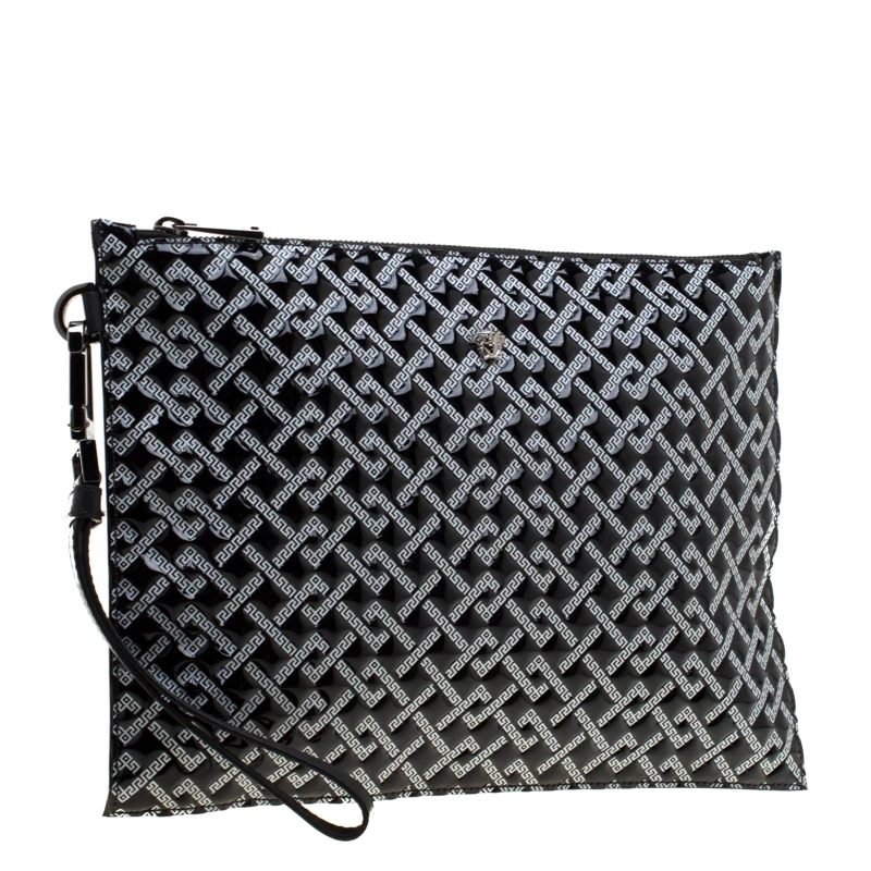 Made from black signature embossed patent leather, this pouch from Versace is a creation worthy of being yours. It has a simple structure with a top zipper that leads to a nylon interior for your little essentials. The pouch is well-made and handy.