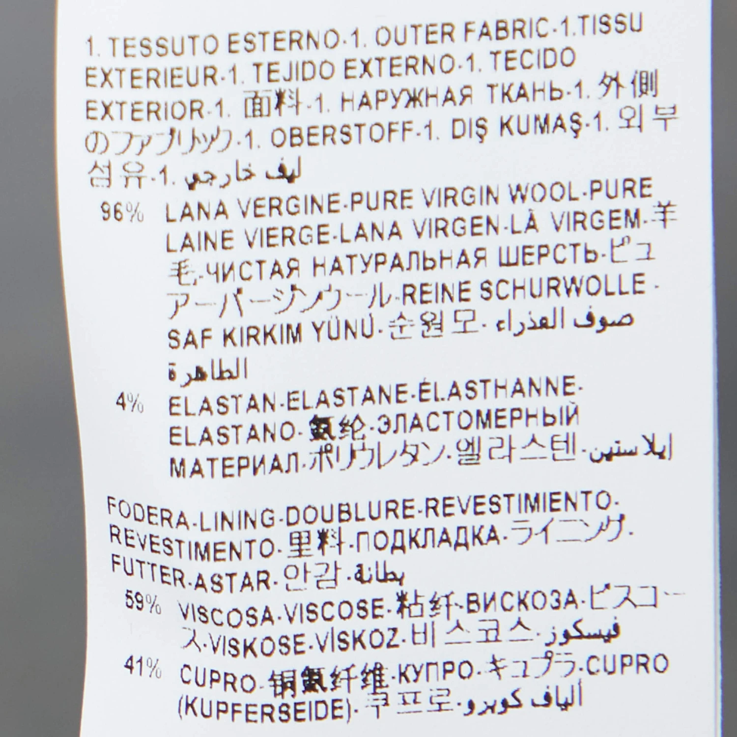 - Composition: Shell: 96% Virgin Wool ; Lining: 59% Viscose, 41% Cupro