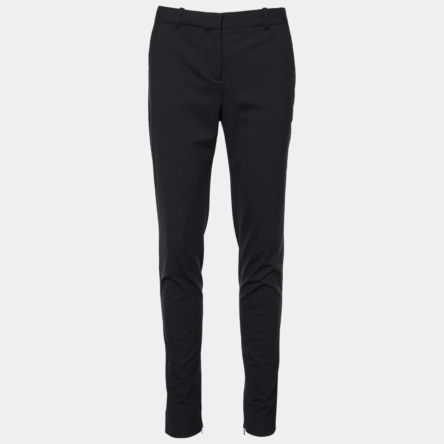 Classy, comfortable, and sartorially smart, these trousers from the House of Versace are definitely closet-essential. Featuring a tailored fit, they are stitched using black stretch wool fabric and are equipped with a zip-type closure and two functional pockets. Flaunt a stylish formal look by wearing these Versace trousers.