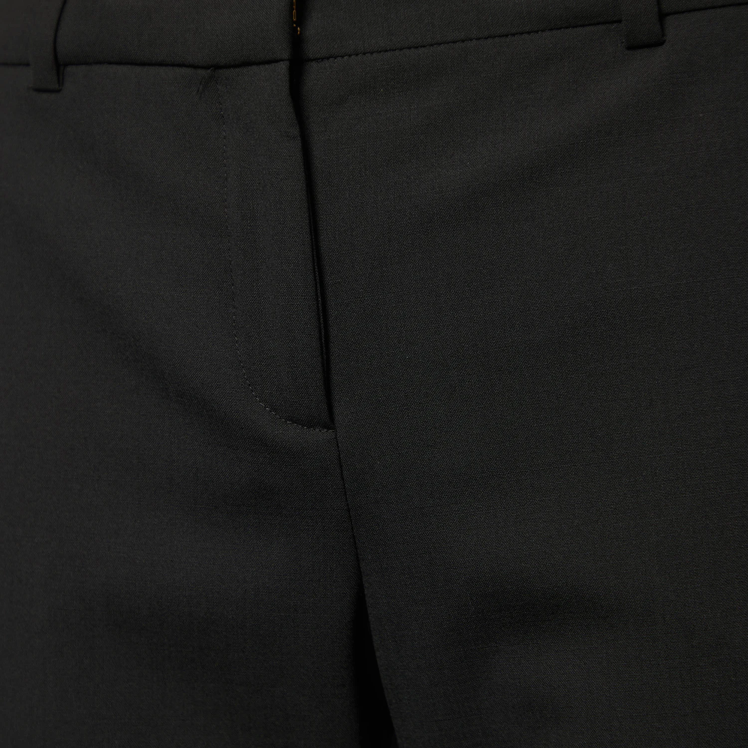 Classy, comfortable, and sartorially smart, these trousers from the House of Versace are definitely closet-essential. Featuring a tailored fit, they are stitched using black stretch wool fabric and are equipped with a zip-type closure and two functional pockets. Flaunt a stylish formal look by wearing these Versace trousers.