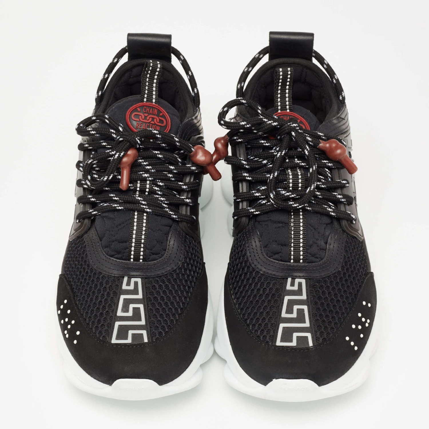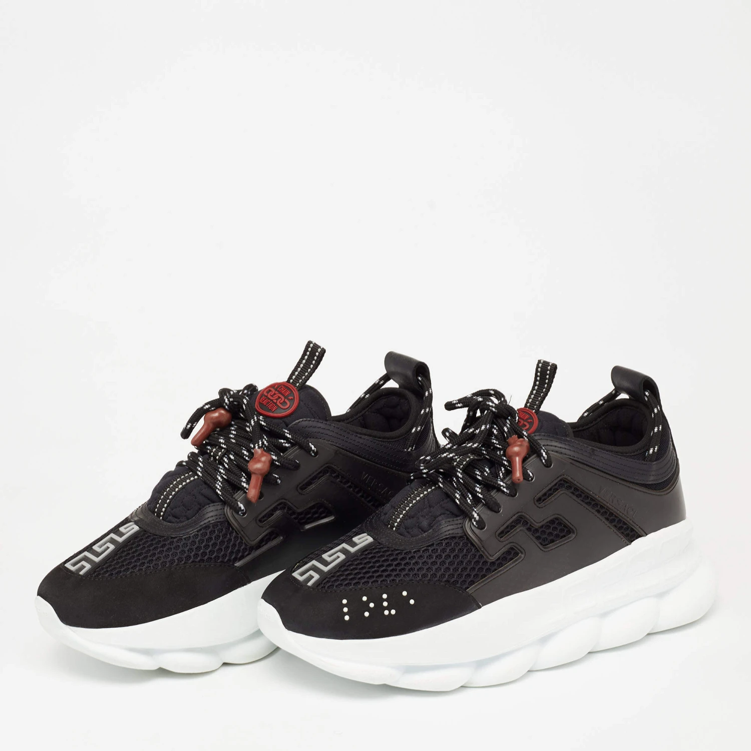 Versace’s Chain Reaction sneakers are for fashionable people like you and a stylish take on the chunky sneaker trend. These ones are crafted from high-grade materials in black. They feature laces, signature detailing, high platforms, and outsoles featuring a chain-like design.