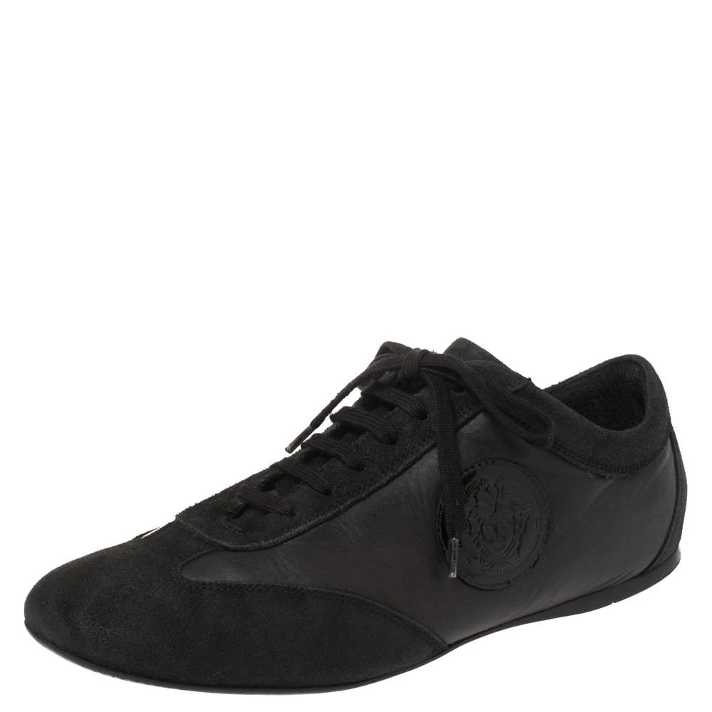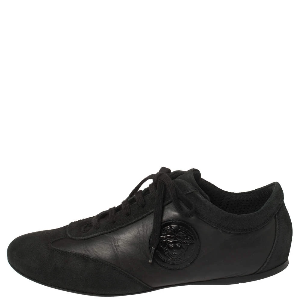 Make these stylish sneakers, made from suede and leather, yours this season. The trendy and chic sneakers from Versace will lift up your style in an effortless way. They come in black, featuring lace-up vamps, the Medusa motif on the sides, and durable rubber soles.