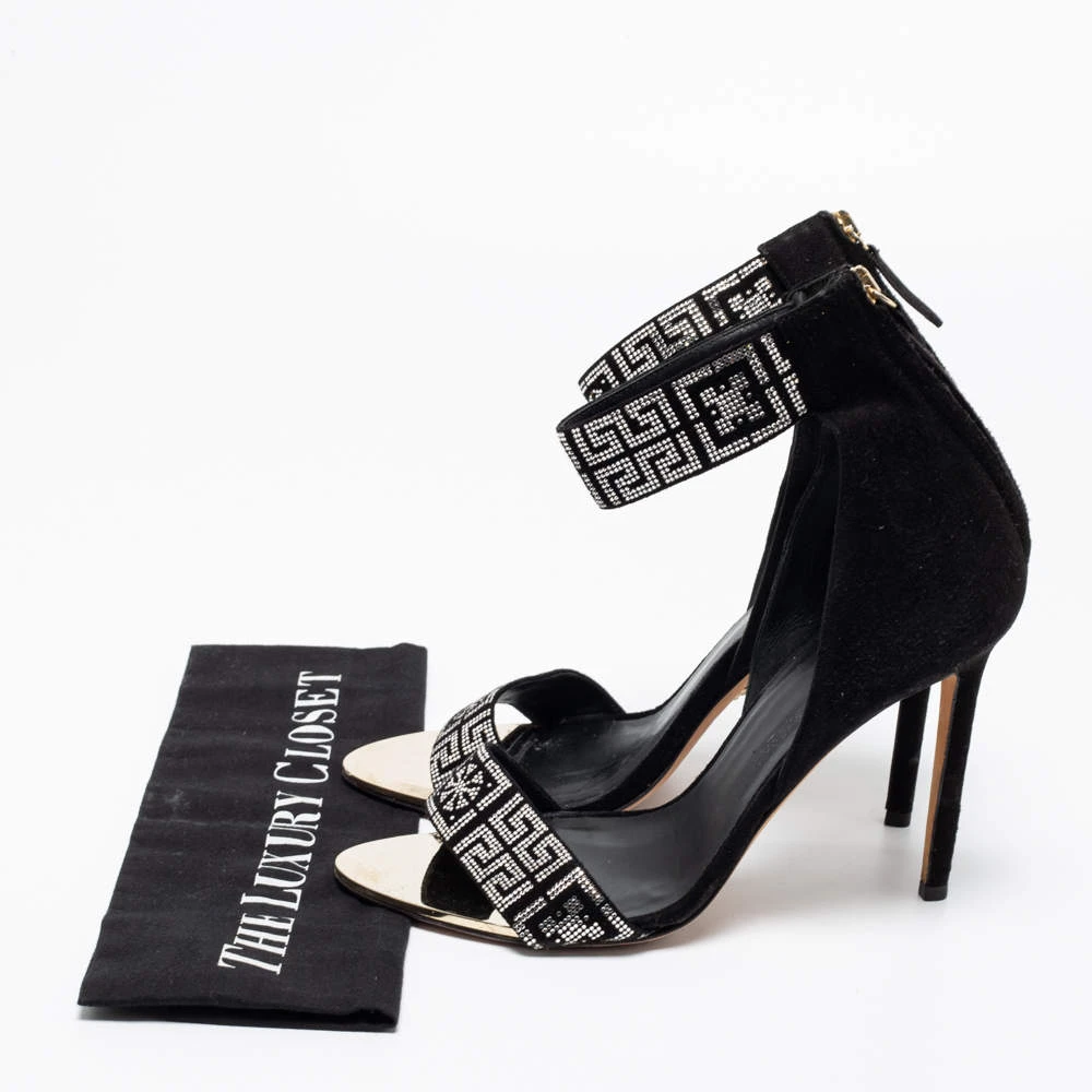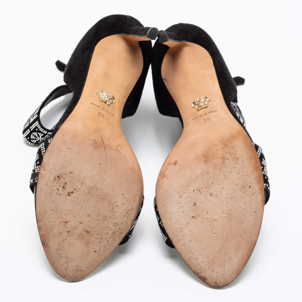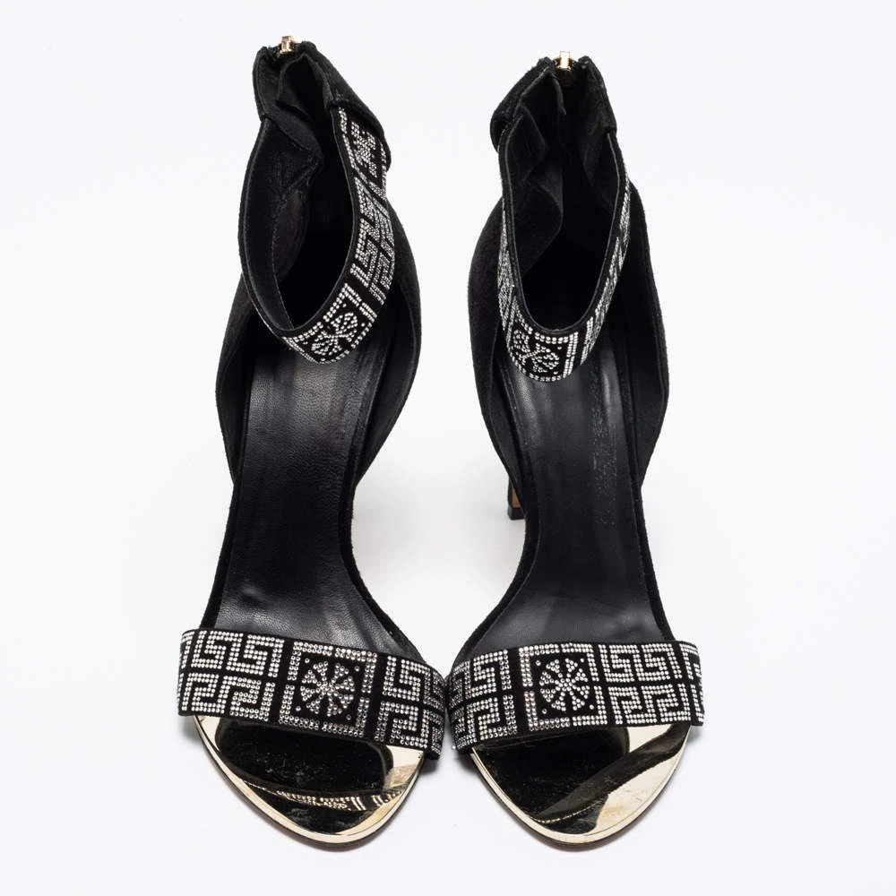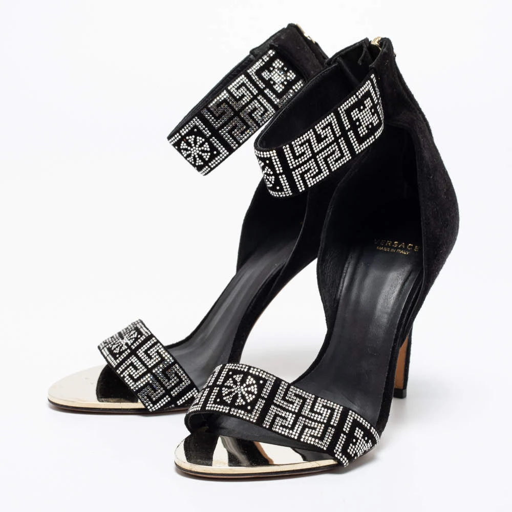 To compliment your unique style, Versace brings you these gorgeous sandals that come with a statement look. They’ve been crafted from suede and crystal embellishments and designed with open toes, back zippers, 11 cm heels, and shimmering ankle cuffs. The ideal party pair indeed!