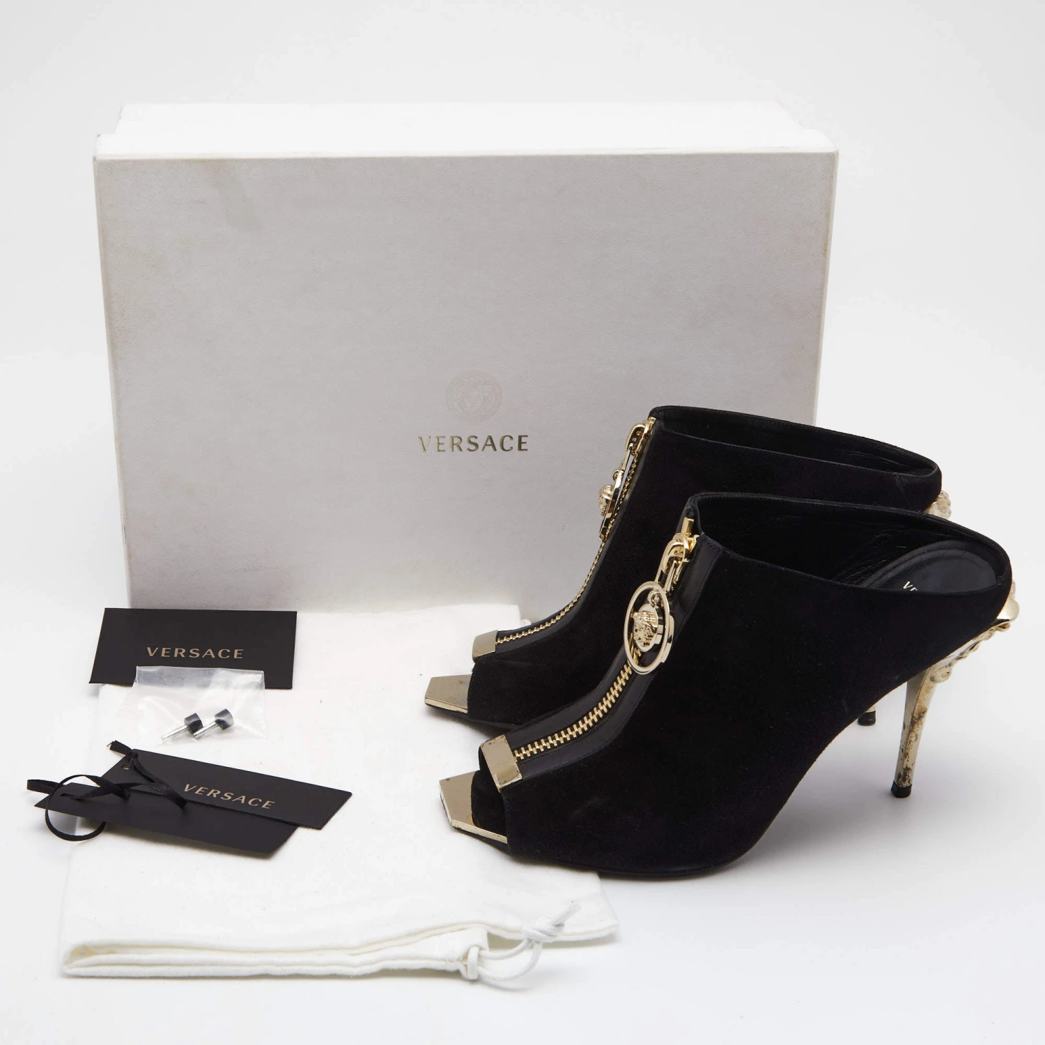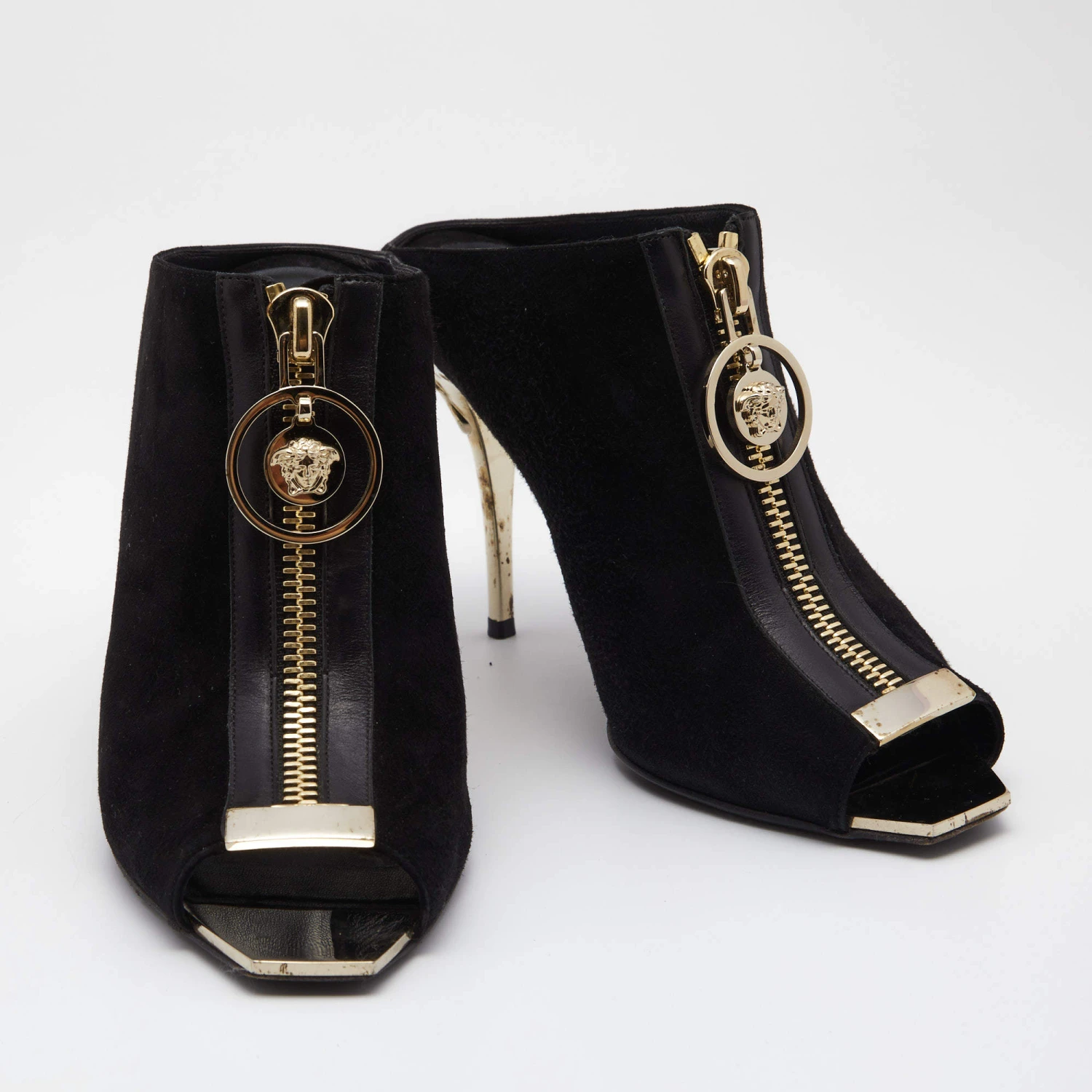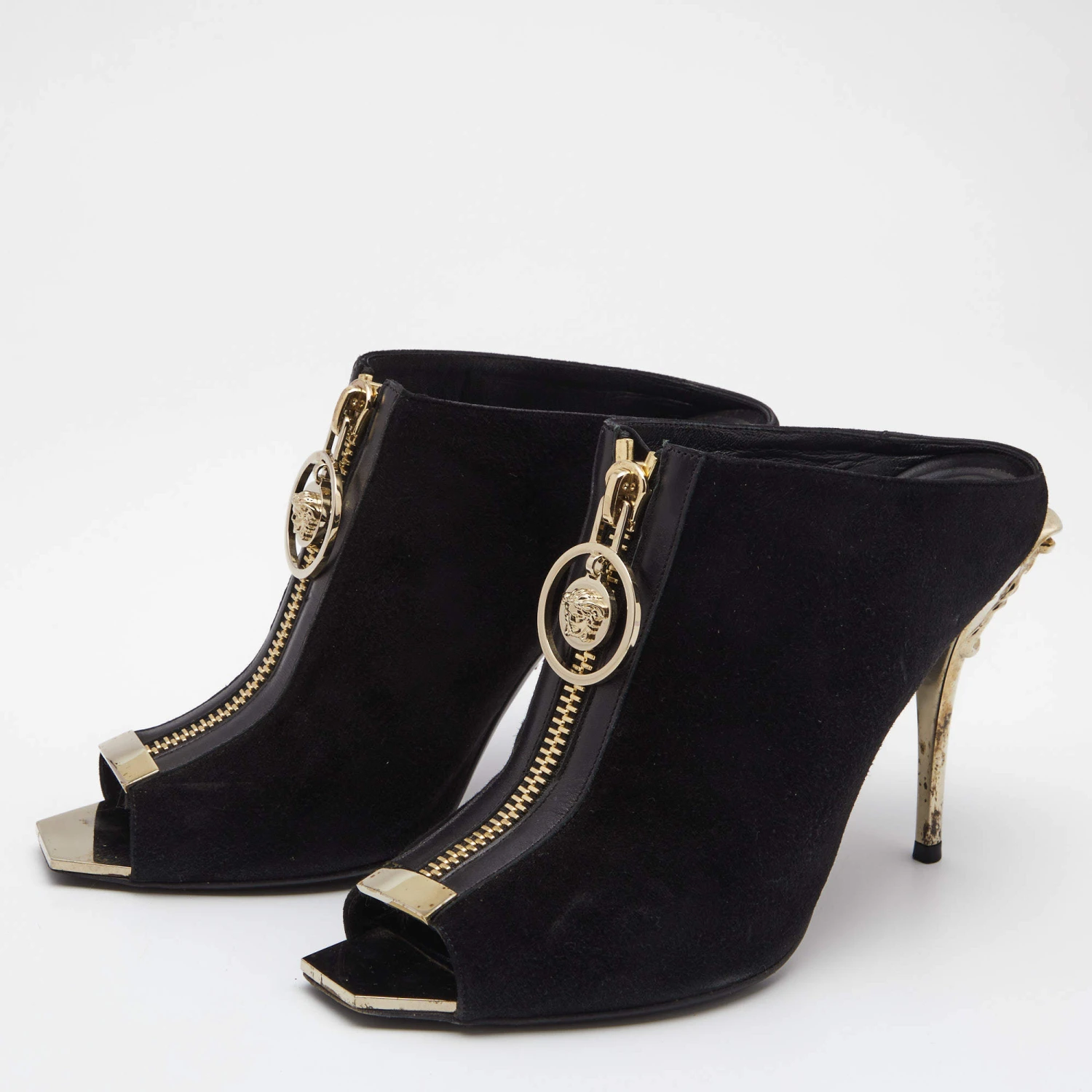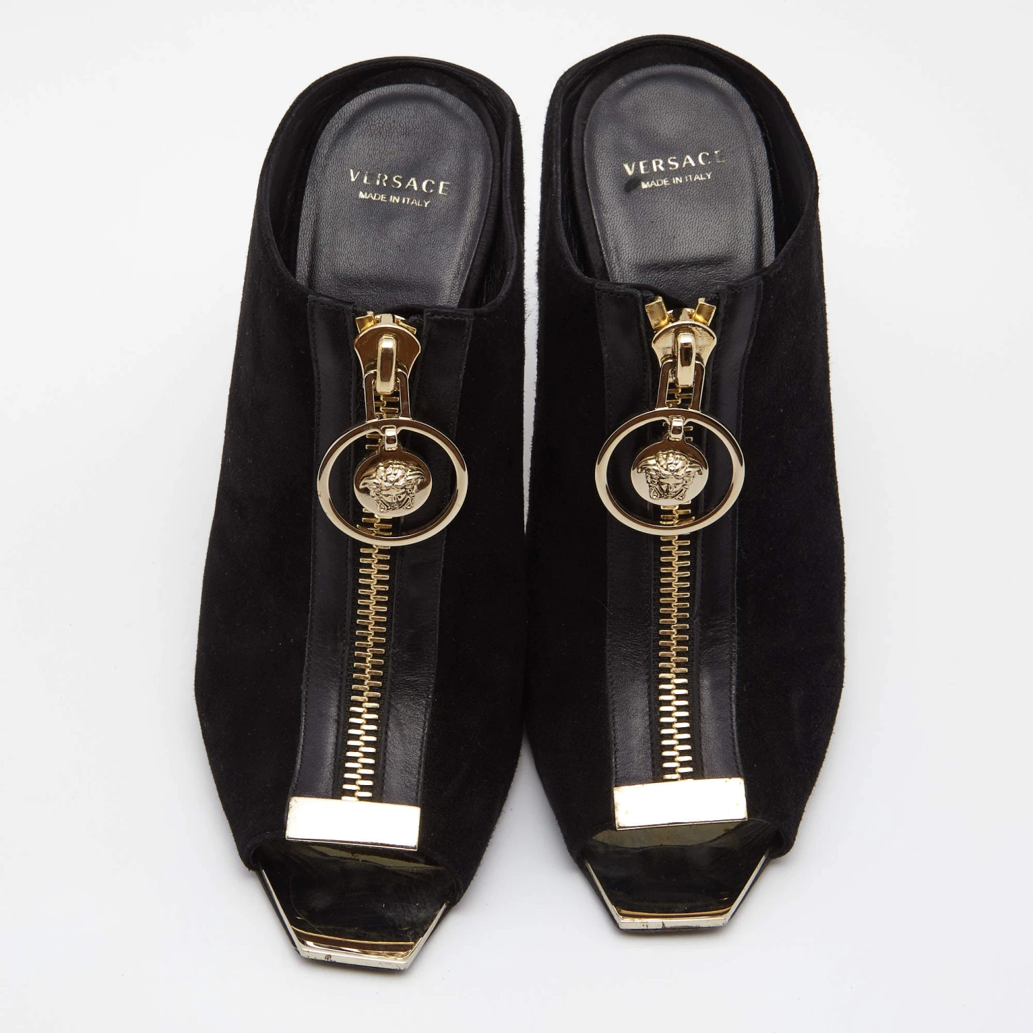 These Versace sandals will infuse luxury and sophistication into your outfit. Detailed with Medusa sliders of the front zipper closure and heels, this pair reminds you of the label’s bold and empowering designs. It is crafted from suede and is beautified with gold-tone accents.