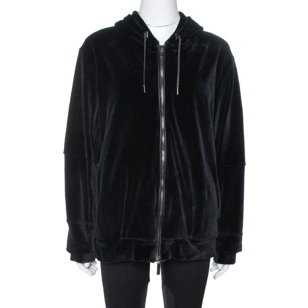 This hoodie by Versace is a closet staple. Crafted from velvet, it comes in a shade of black. This creation features a zipped front, pockets and Medusa embroidery. It has been cut to deliver a comfortable fit.