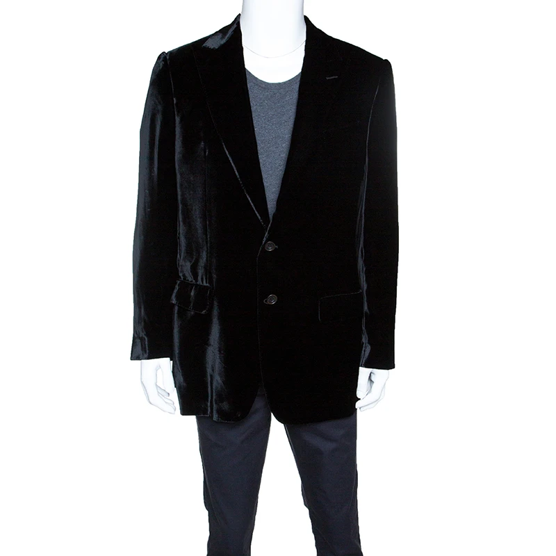 Craft your impeccable formal style in this Versace blazer. Featuring a well-tailored silhouette, this elegant creation flaunts notched lapels with a buttoned closure and long sleeves. The perfect fitting of this blazer promises a striking corporate look.