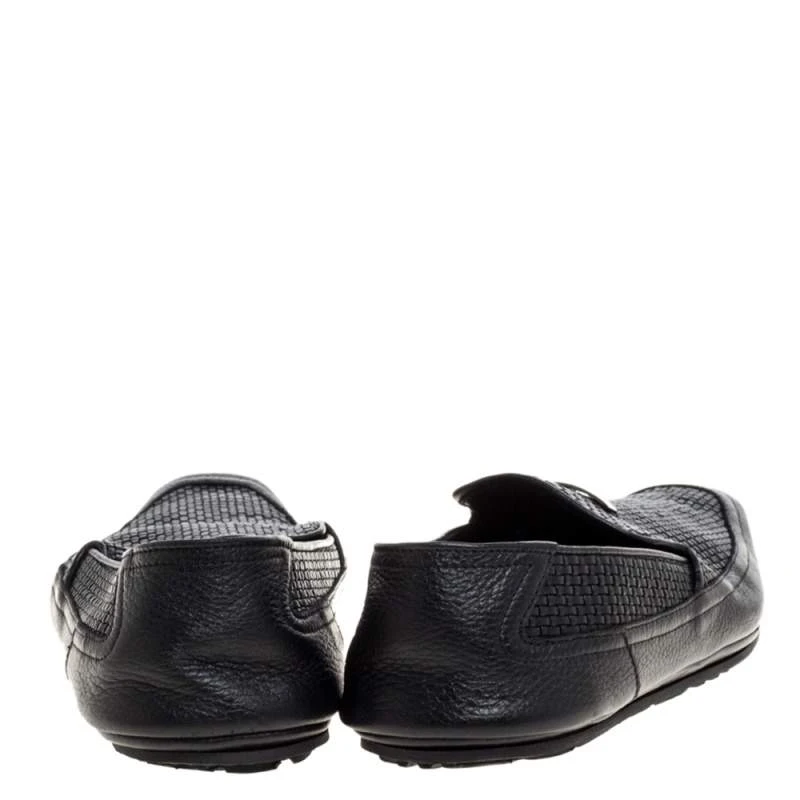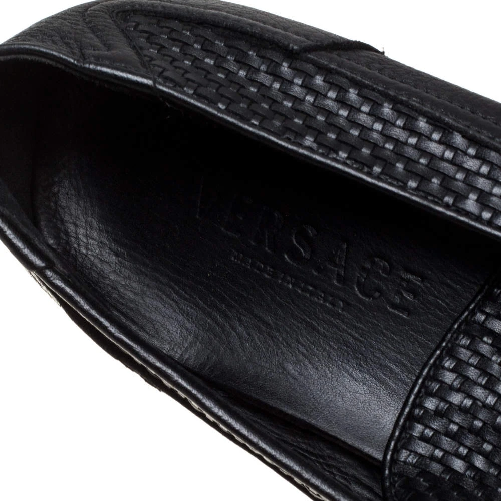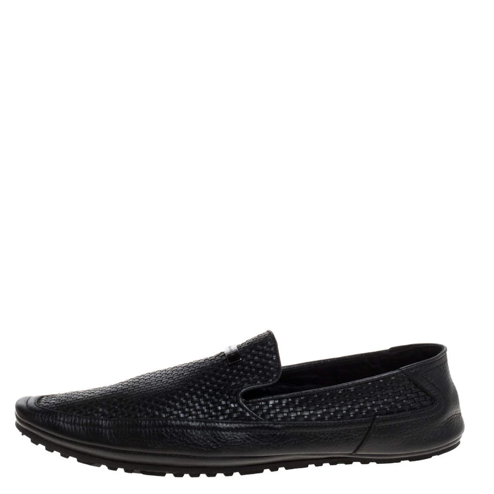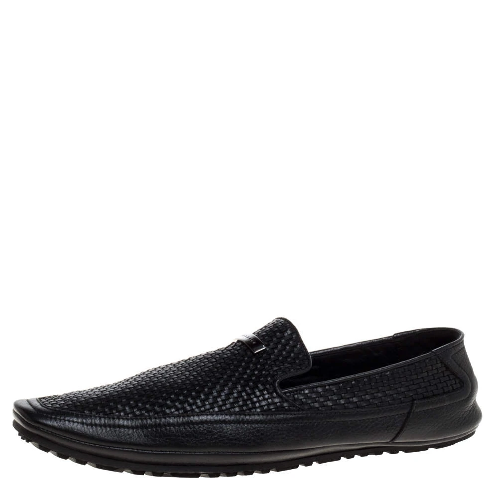 Exquisite and well-crafted, these Versace loafers are worth owning. They have been crafted from woven leather and they come flaunting a black shade with logo plaque on the uppers. The loafers are ideal to wear all day.
