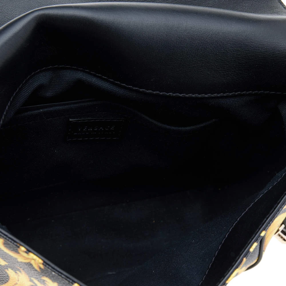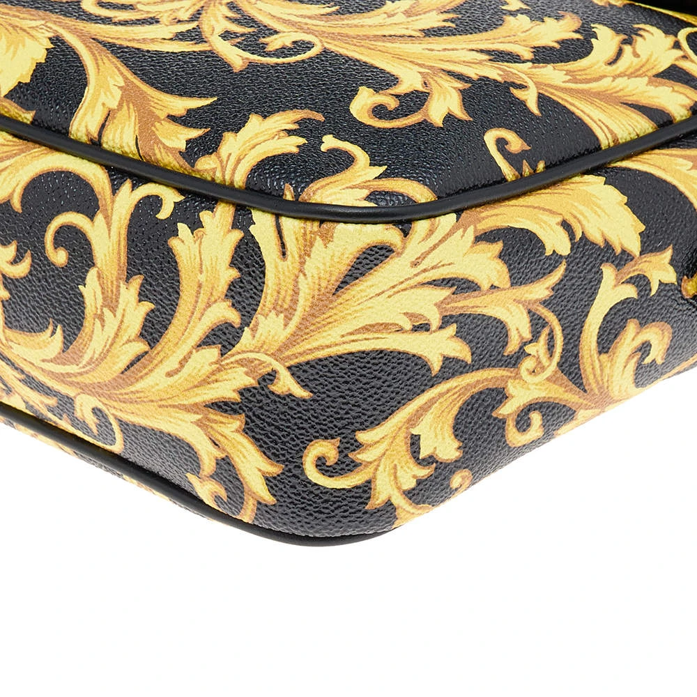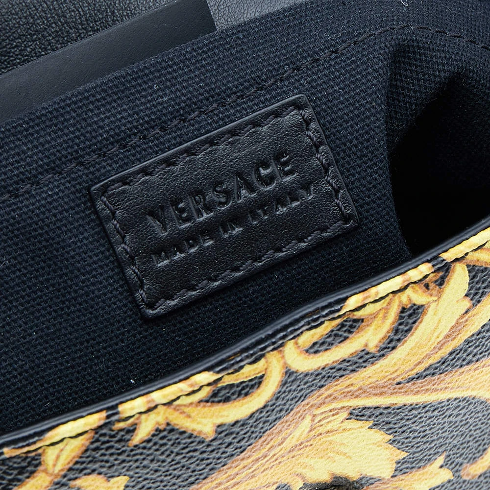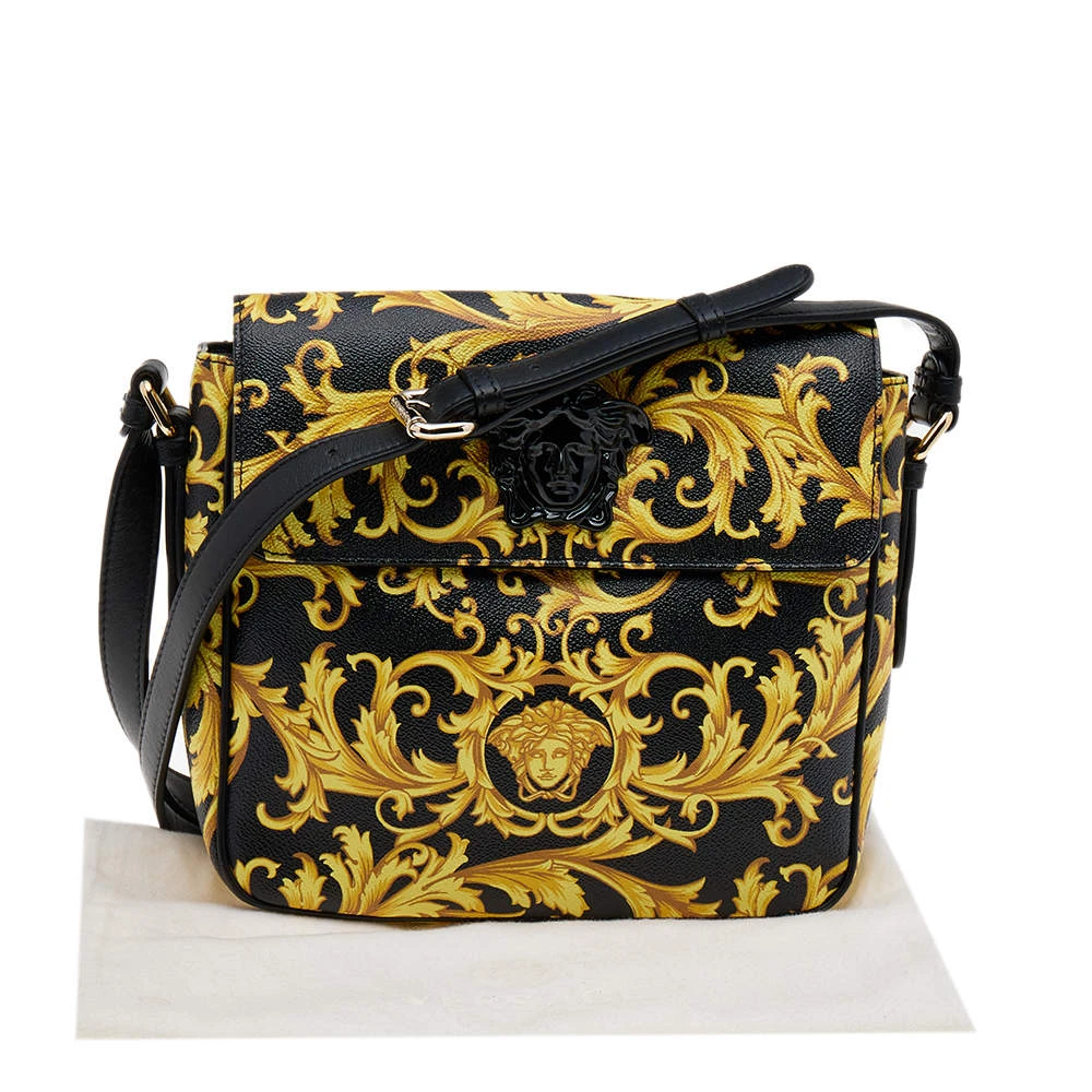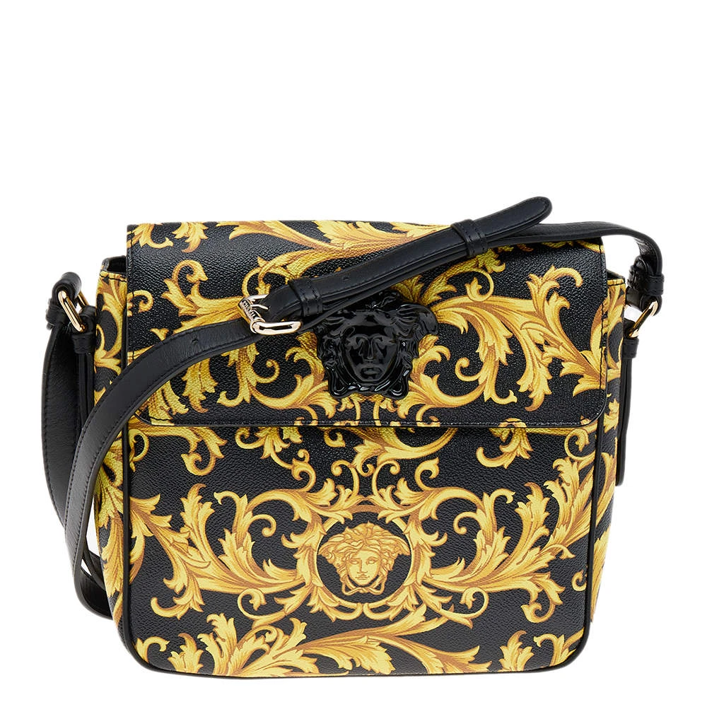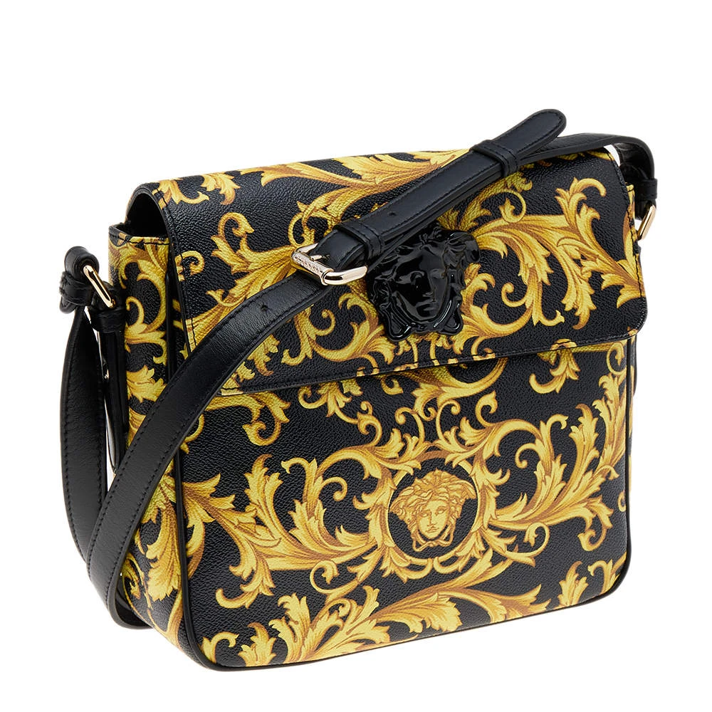 Make a statement with this bag from Versace. The bag is crafted from leather and the compact silhouette is covered in Barocco prints. It flaunts a long shoulder strap and the famous Medusa logo on the flap.