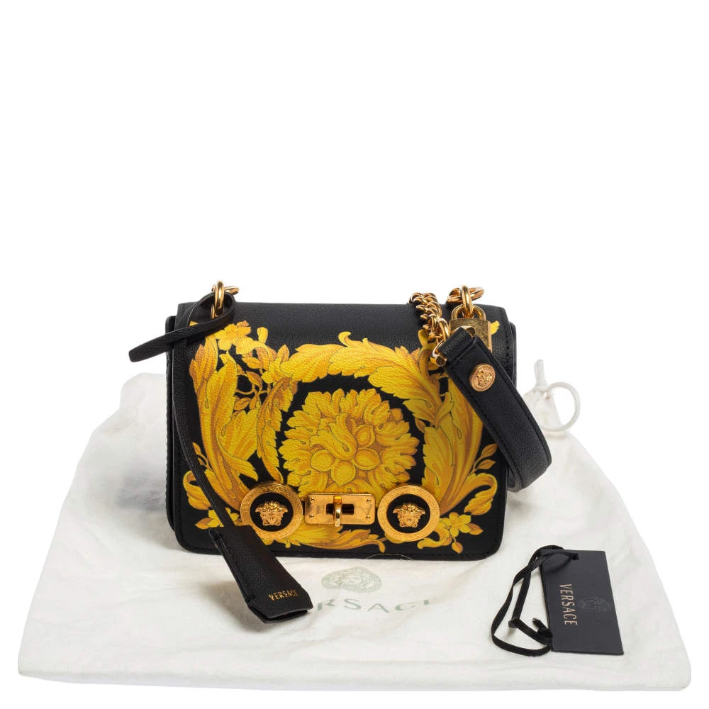 Every woman needs a bag that is pretty and functional, just like this shoulder bag from Versace. Crafted from leather, it features the Baroque print all over with the gold-tone Medusa detail and the turn-lock on the front flap. It has a chain-link strap and a leather shoulder strap and a spacious interior. This is definitely one handy bag that deserves to be yours.